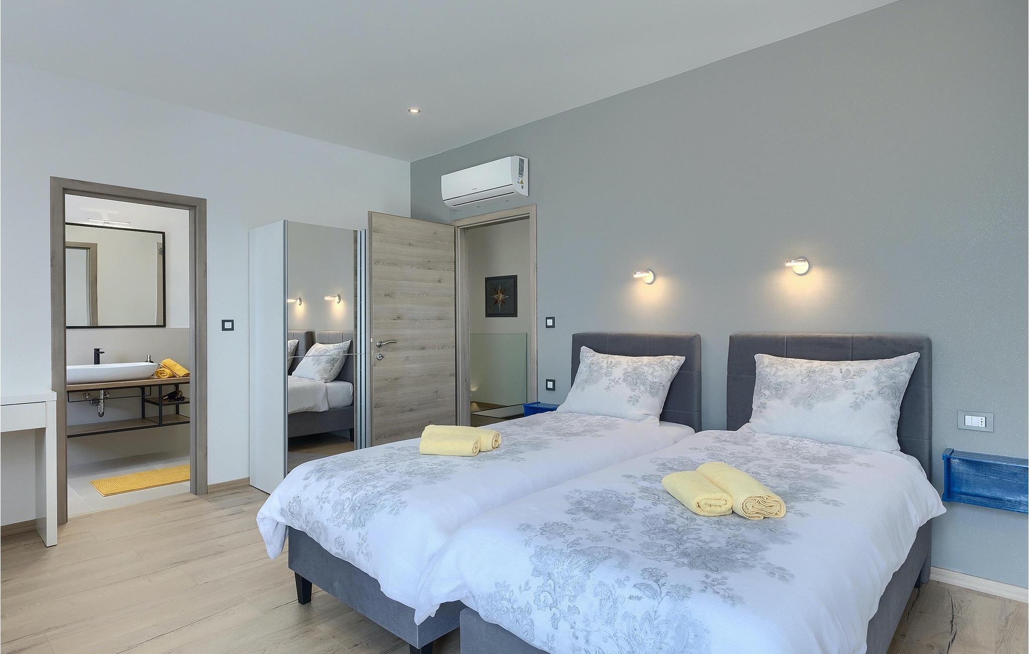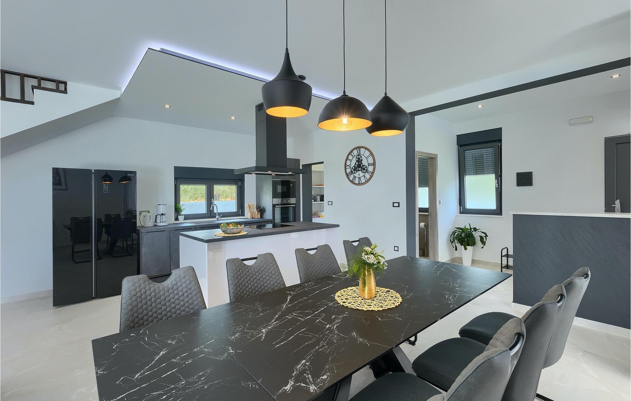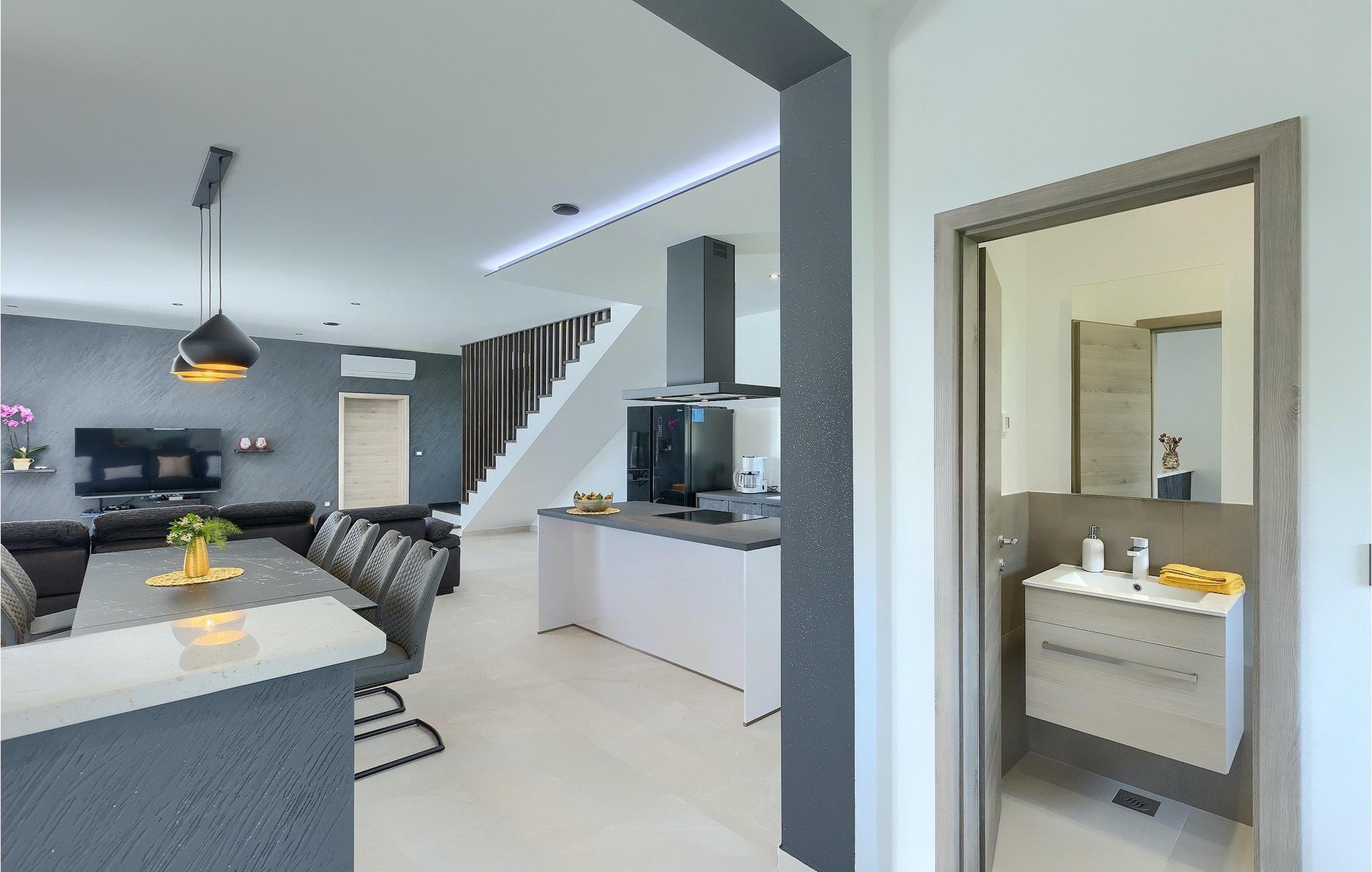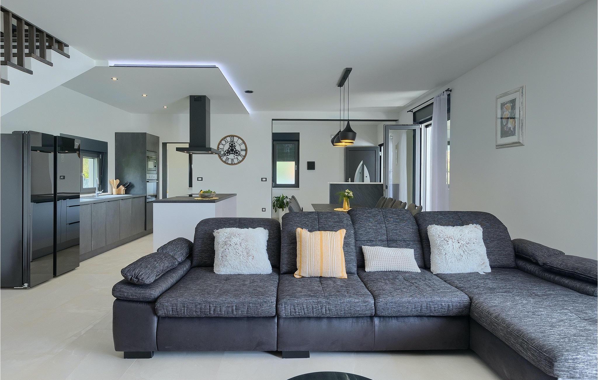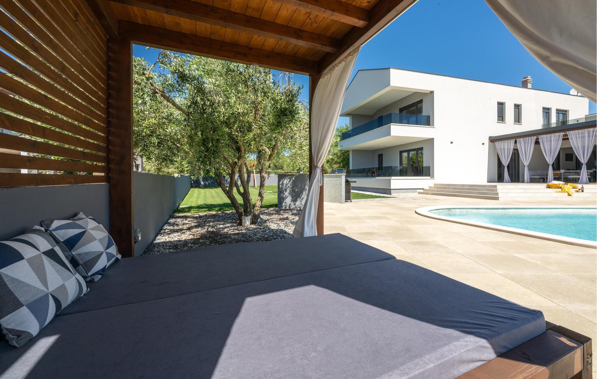 Villa Posidonia er det perfekte sted at tilbringe en uforglemmelig ferie! Det er beliggende i en lille by i Istrien er en fremragende beliggenhed tæt på havet - ideel til at opdage de smukke strande i Istrien. Villaen kan rumme op til ni personer og byder på alt hvad du behøver til en afslappende ferie med dine kære. Der er en privat pool og en udendørs bruser til forfriskning på varme sommerdage, samt liggestole, hvor du kan slappe af. En udendørs grill og spiseplads står til din rådighed. Udenfor er der mål for fodbold, badminton og en legeplads. Ejendommen er fuldt indhegnet og har privat parkering for op til fem biler. Villaens indretning er stilfuldt og smagfuldt indrettet ned til mindste detalje. I stueetagen er der fuldt udstyret køkken med spiseplads, opholdsstue, separat toilet, soveværelse med dobbeltseng, balkon med havudsigt og pooludsigt, tv og eget badeværelse samt vaskerum og spillehal. med billard, bordfodbold og dart. På første sal er der tre mere komfortable soveværelser. To med dobbeltseng og et med to enkeltsenge, balkon med havudsigt, tv og eget badeværelse. Villaen er fuldt airconditioneret og tilbyder internetadgang.Villa Posidonia er beliggende nær Pula. Pula er turistcentrum i Istrien, hvad angår kultur, tradition og smuk natur. Den havde sin storhedstid i romertiden. Romerne efterlod sig mange spor, især det smukke amfiteater. Udforsk byens gader og nyd Istriens specialiteter, der tilbydes i restauranterne. Kun en kort køretur væk ligger Cape Kamenjak, et vidunderligt eksempel på uberørt natur. Krystalklart hav og strande med naturlig skygge vil tage pusten fra selv de mest kræsne gæster. Mange attraktive faciliteter er kun få minutters kørsel væk. Nogle af dem er Brijuni Islands National Park med en unik golfbane og en safaripark og mange andre kulturelle og turistattraktioner. For sportselskere tilbydes forskellige aktiviteter, såsom fodbold, ridning, tennis, sejlads, minigolf, flyvning, bowling, volleyball på sandet, dykning gennem stilheden i undervandsverdenen og flere andre sportsgrene og vandsport.