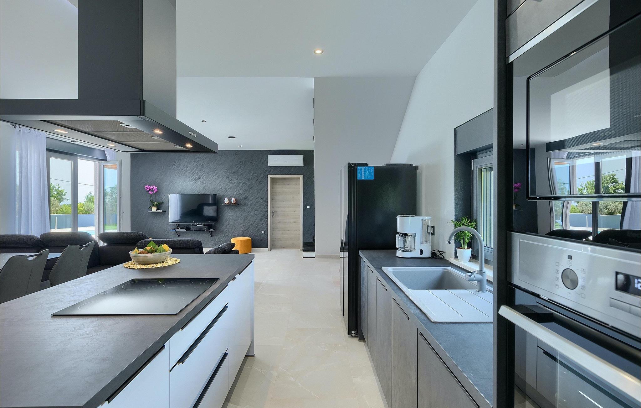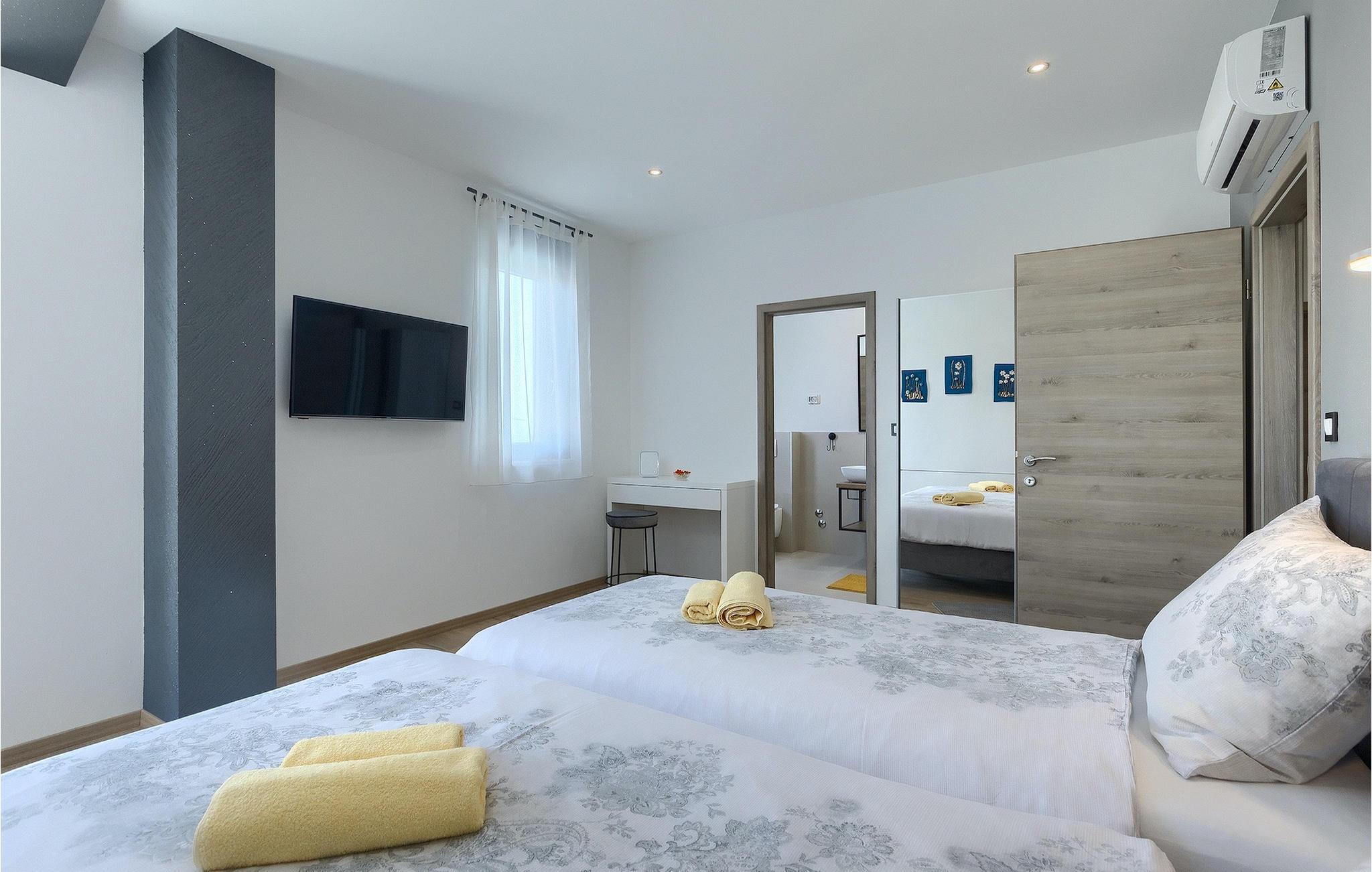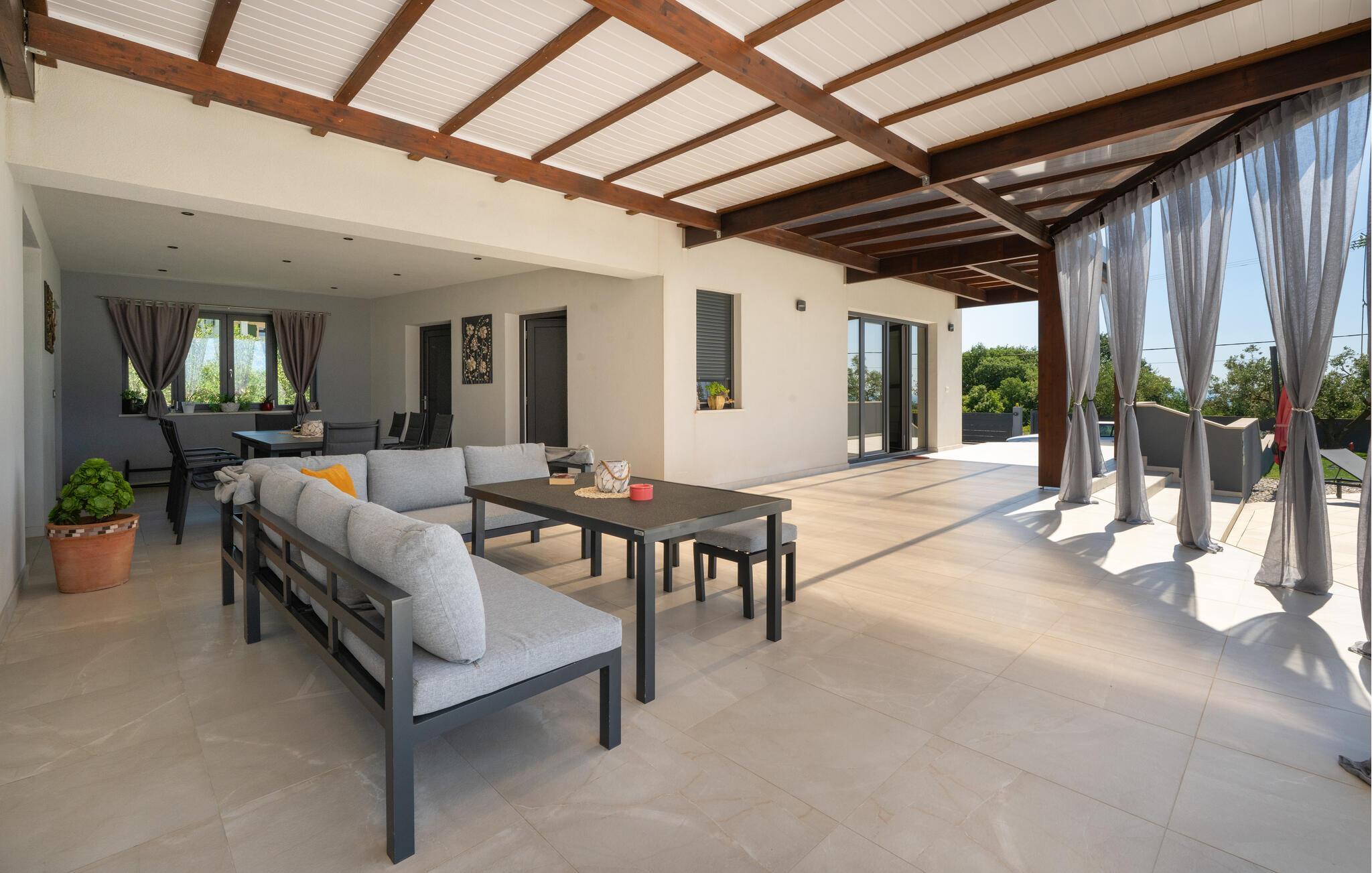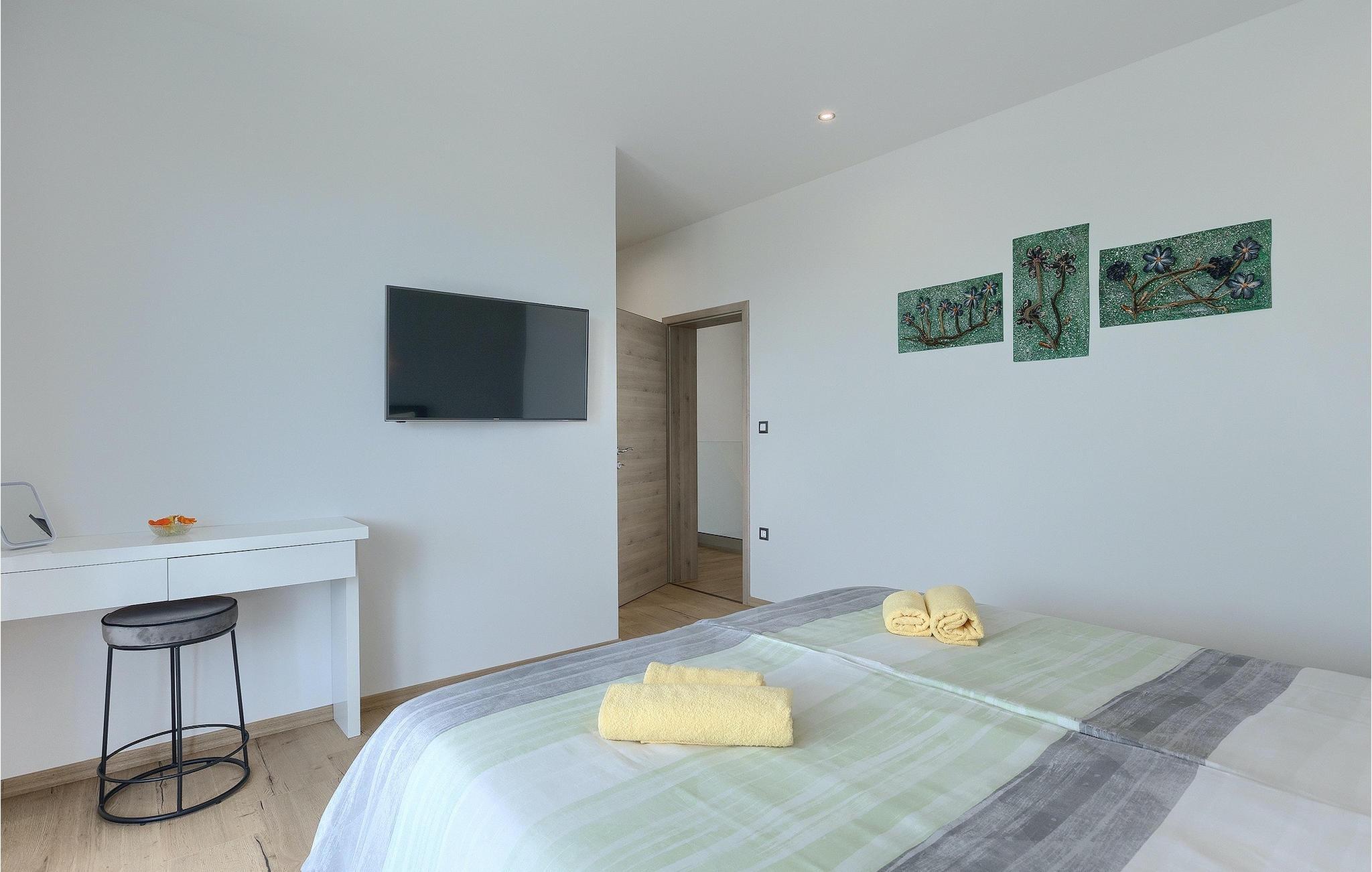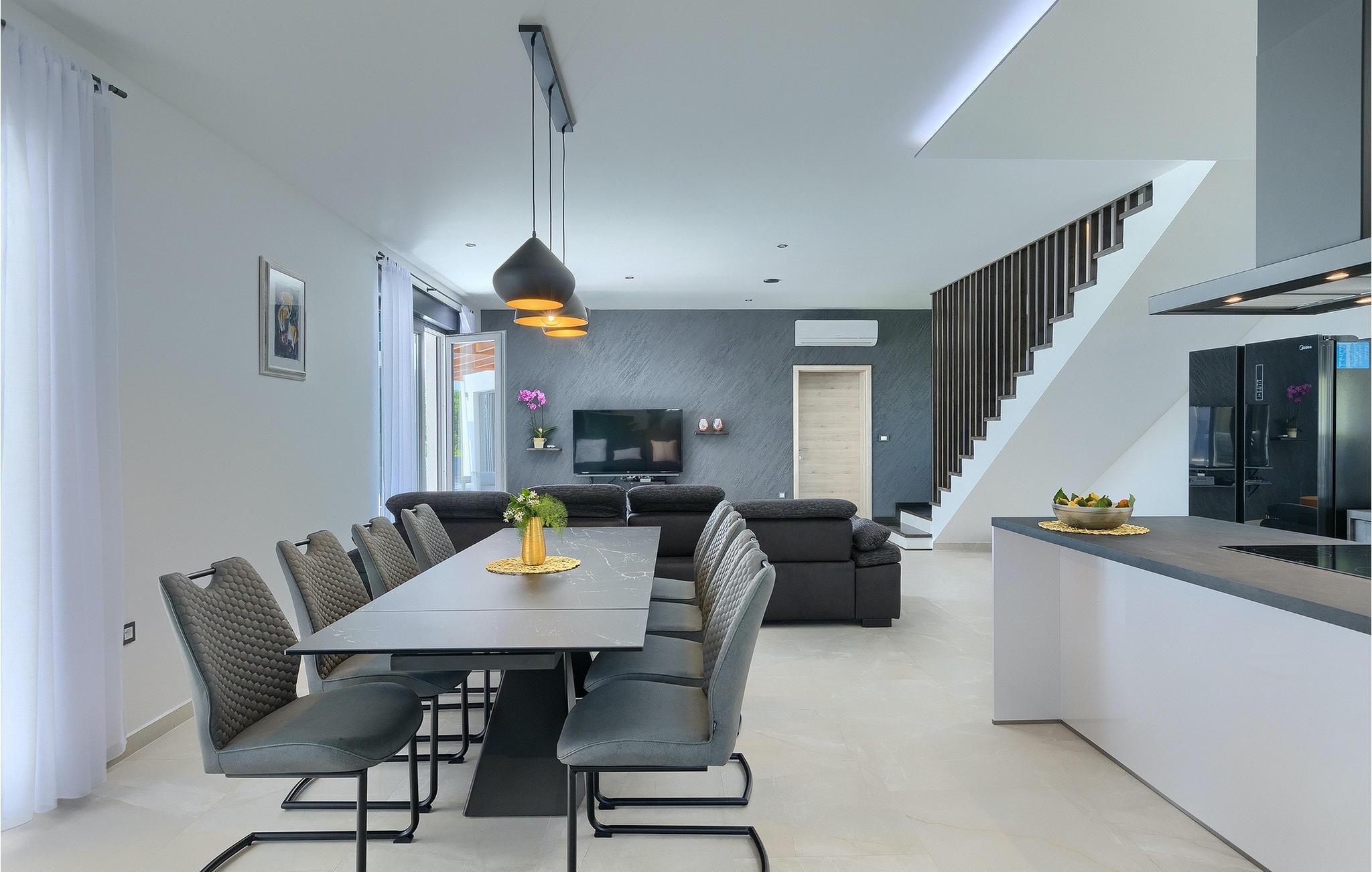 Villa Posidonia er det perfekte sted at tilbringe en uforglemmelig ferie! Det er beliggende i en lille by i Istrien er en fremragende beliggenhed tæt på havet - ideel til at opdage de smukke strande i Istrien. Villaen kan rumme op til ni personer og byder på alt hvad du behøver til en afslappende ferie med dine kære. Der er en privat pool og en udendørs bruser til forfriskning på varme sommerdage, samt liggestole, hvor du kan slappe af. En udendørs grill og spiseplads står til din rådighed. Udenfor er der mål for fodbold, badminton og en legeplads. Ejendommen er fuldt indhegnet og har privat parkering for op til fem biler. Villaens indretning er stilfuldt og smagfuldt indrettet ned til mindste detalje. I stueetagen er der fuldt udstyret køkken med spiseplads, opholdsstue, separat toilet, soveværelse med dobbeltseng, balkon med havudsigt og pooludsigt, tv og eget badeværelse samt vaskerum og spillehal. med billard, bordfodbold og dart. På første sal er der tre mere komfortable soveværelser. To med dobbeltseng og et med to enkeltsenge, balkon med havudsigt, tv og eget badeværelse. Villaen er fuldt airconditioneret og tilbyder internetadgang.Villa Posidonia er beliggende nær Pula. Pula er turistcentrum i Istrien, hvad angår kultur, tradition og smuk natur. Den havde sin storhedstid i romertiden. Romerne efterlod sig mange spor, især det smukke amfiteater. Udforsk byens gader og nyd Istriens specialiteter, der tilbydes i restauranterne. Kun en kort køretur væk ligger Cape Kamenjak, et vidunderligt eksempel på uberørt natur. Krystalklart hav og strande med naturlig skygge vil tage pusten fra selv de mest kræsne gæster. Mange attraktive faciliteter er kun få minutters kørsel væk. Nogle af dem er Brijuni Islands National Park med en unik golfbane og en safaripark og mange andre kulturelle og turistattraktioner. For sportselskere tilbydes forskellige aktiviteter, såsom fodbold, ridning, tennis, sejlads, minigolf, flyvning, bowling, volleyball på sandet, dykning gennem stilheden i undervandsverdenen og flere andre sportsgrene og vandsport.