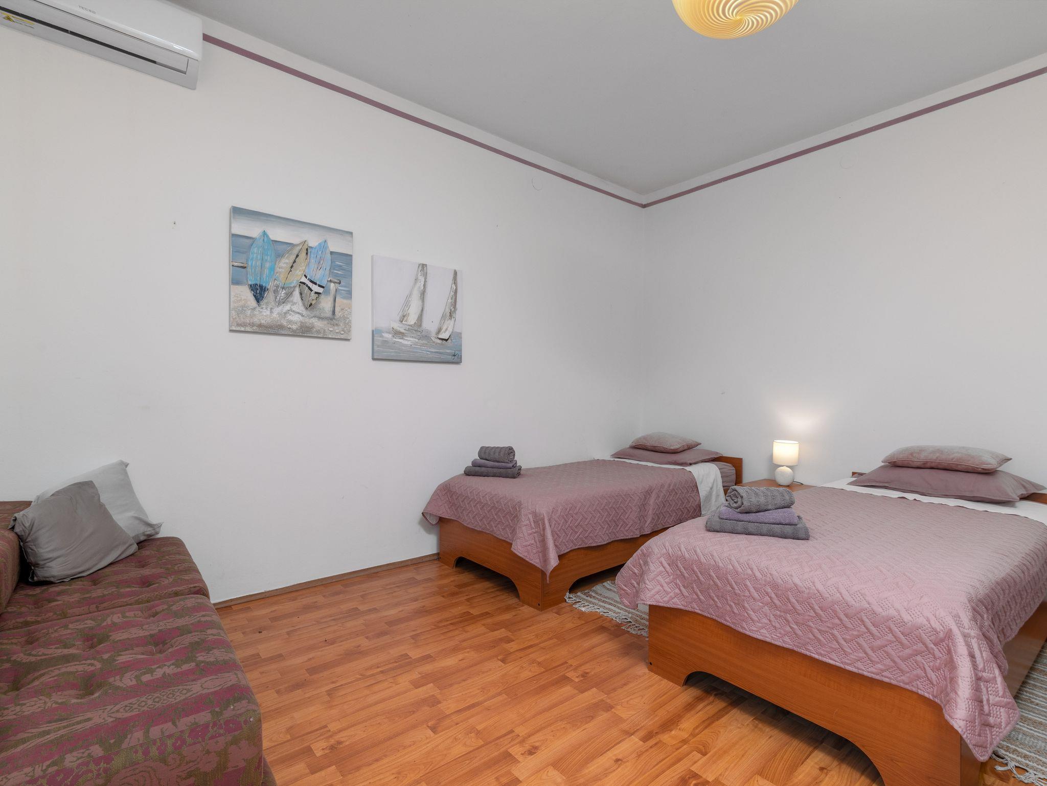 Haus bietet Platz für 10 Gäste. Die Betten sind in Schlafzimmern, die es 4 gibt, und in Wohnzimmer, innerhalb einer Gesamtfläche von 135m2, angeordnet. Die Gäste haben eine eigene Terrasse zur Verfügung, auf der sie in warmen Sommernächten genießen können. Für vollen Genuss und Entspannung gibt es einen privaten Grill für Gäste dieser Unterkunft. Während ihres Aufenthalts können sich Gäste im privaten Schwimmbad entspannen. IM PREIS INBEGRIFFEN: Kurtaxe, Endreinigung, Klimatisierung, Zentralheizung, Pool, Parkplatz, Internet, Kinderbett, Bügeleisen, Bügelbrett, Föhn. Die Verfügbarkeit zusätzlicher Dienstleistungen in Ihrem reservierten Termin und die Preise derselben (falls nicht aufgeführt) müssen im Voraus überprüft werden. Zusätzliche Dienstleistungen die in der Zahlungsaufforderung nicht aufgeführt sind werden direkt beim Vermieter bezahlt, angenommen der Gast nutzt auch diese.