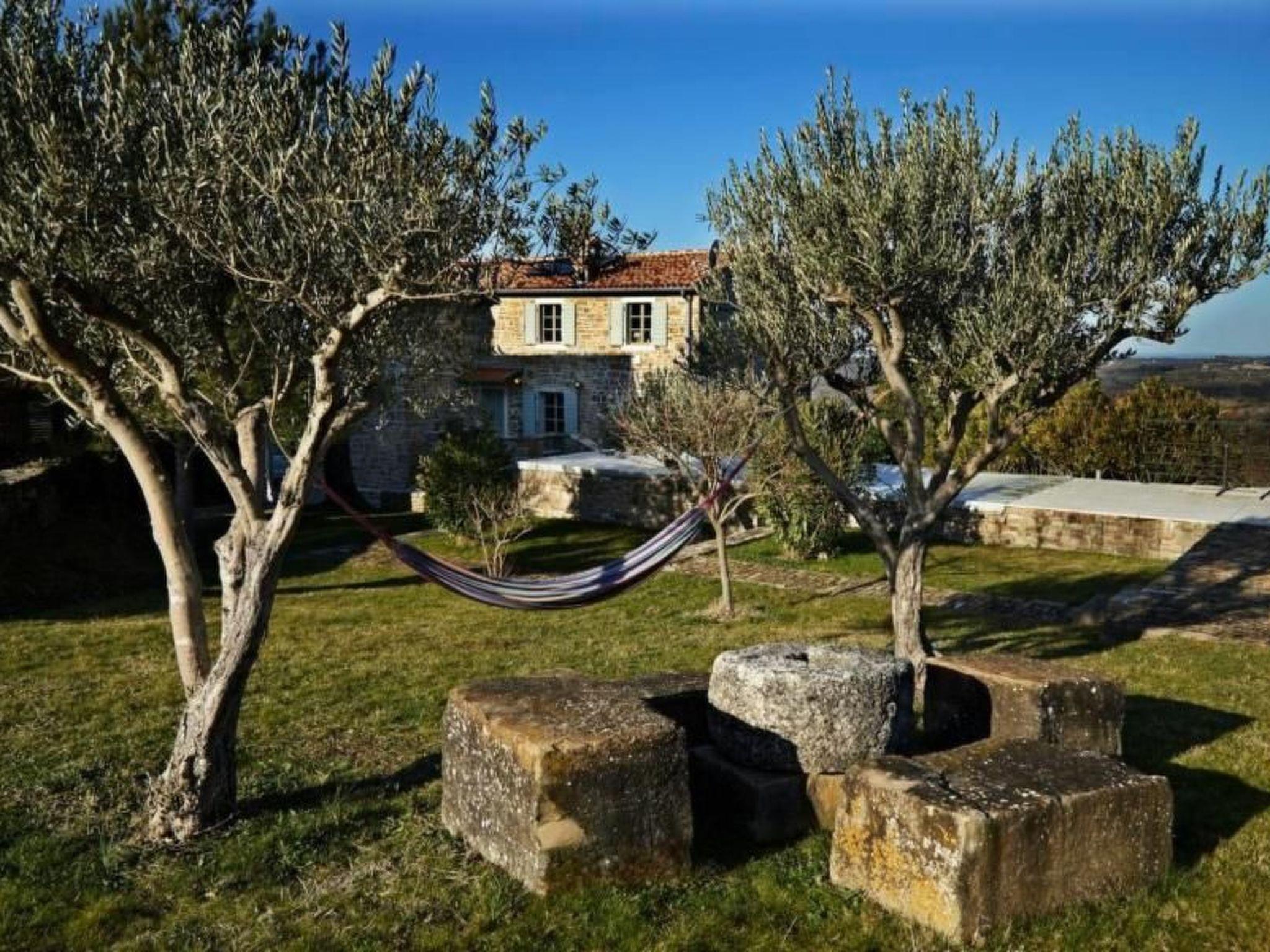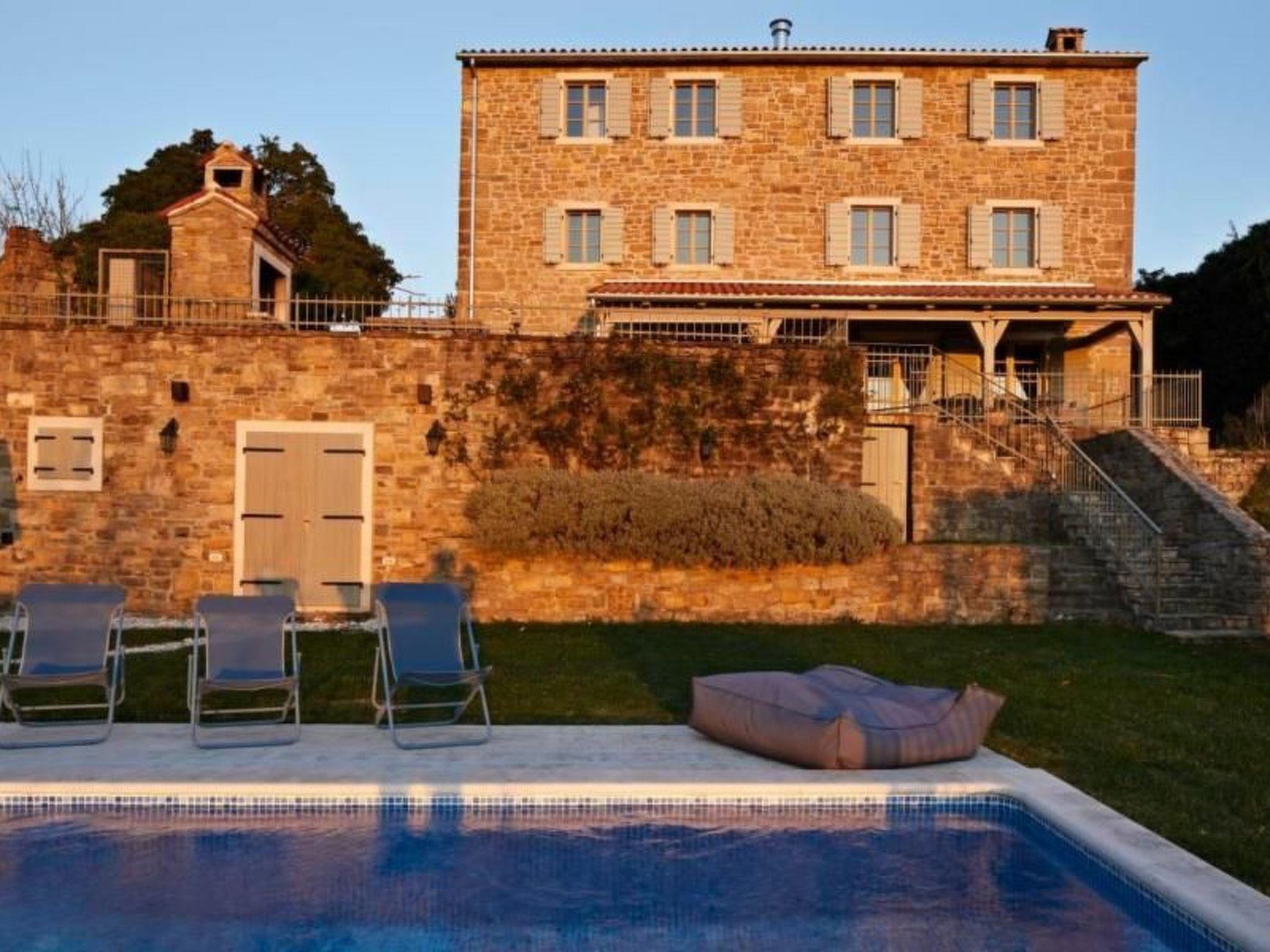 Set amidst Croatia's best wine makers and situated between two medieval towns (Grožnjan and Motovun) famed for their truffle based cuisine and cultural events, Melegran In The Hills is a hilltop family owned villa offering breathtaking views over vineyards, olive groves and a sparkling backdrop of the Adriatic Sea. Only 20 min drive from the coastline, the young owners love using the villa for both getting away from it all and hosting family and friends wanting to combine the rural and seaside in a vacation. The owners have stayed true to traditional Istrian architecture and used their extensive travels to create a luxurious, eclectic interior combined with a very homely feel, all designed to the highest standards. The villa is located in the village of Biloslavi, 5km from Groznjan. The property boasts in excess of 270m2 and is set over 3 floors. It comprises 4 luxury bedrooms with individual bathrooms, as well as a living room with fireplace, dining room / kitchen with fire place, wine cellar, and separate TV/library gallery. The master bedroom stretches over 60m2 and also includes a fireplace. All fixtures and fittings throughout the house are state of the art. We are a young Croatian/Australian family, living in Notting Hill, London, and are very passionate about travel! We enjoy staying in unique and beautiful places around the world and love accommodation that embraces stylish comfort. We hope that our villa will attract like-minded guests and offer them a memorable holiday in Croatia.Short descriptionOther : Non-smoking houseShort description 1Number of kitchens : 1SurroundingNearby sports facilities : Bike tours, Mountainbiking, Riding possibilitiesRental Facilities : Bicycle rental serviceGarden and outdoorGarden facilities : Garden furniture provided, GrillOn-site leisure facilities : Outdoor swimming pool exclusive use, Swimming poolService benefitsService facilities (may incur additional costs) : Transfer service (airport etc)