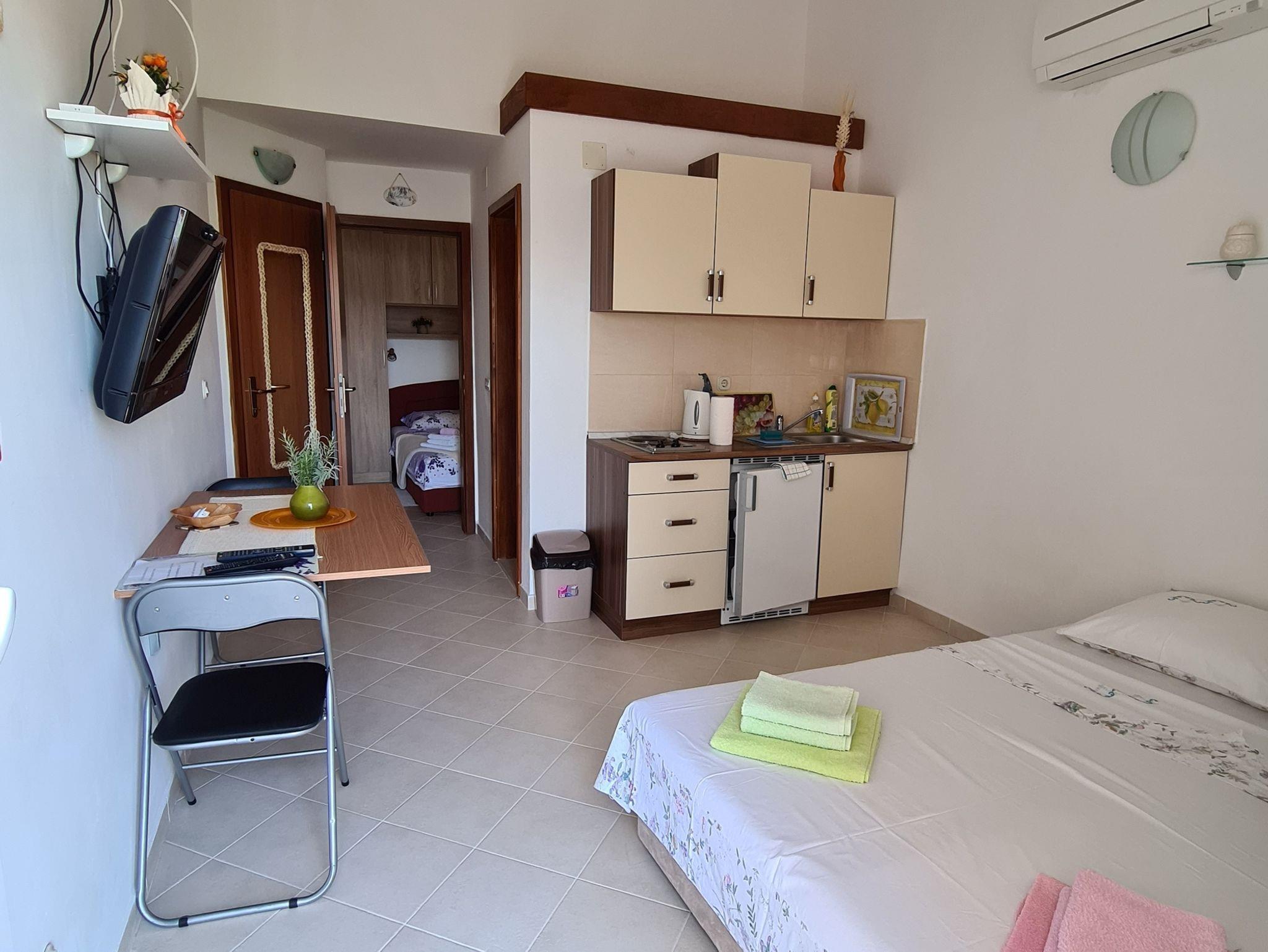 Ferienwohnung bietet Platz für 3 Gäste. Die Betten sind in Schlafzimmern, die es 1 gibt, und in Wohnzimmer, innerhalb einer Gesamtfläche von 30m2, angeordnet. Die Gäste haben eine eigene Terrasse zur Verfügung, auf der sie in warmen Sommernächten genießen können. Das Apartment bietet Meerblick. Es ist erlaubt, Speisen auf dem Gemeinschafts-Grill vorzubereiten. IM PREIS INBEGRIFFEN: Kurtaxe, Endreinigung, Klimatisierung, Parkplatz, Internet, Föhn. Die Verfügbarkeit zusätzlicher Dienstleistungen in Ihrem reservierten Termin und die Preise derselben (falls nicht aufgeführt) müssen im Voraus überprüft werden. Zusätzliche Dienstleistungen die in der Zahlungsaufforderung nicht aufgeführt sind werden direkt beim Vermieter bezahlt, angenommen der Gast nutzt auch diese.