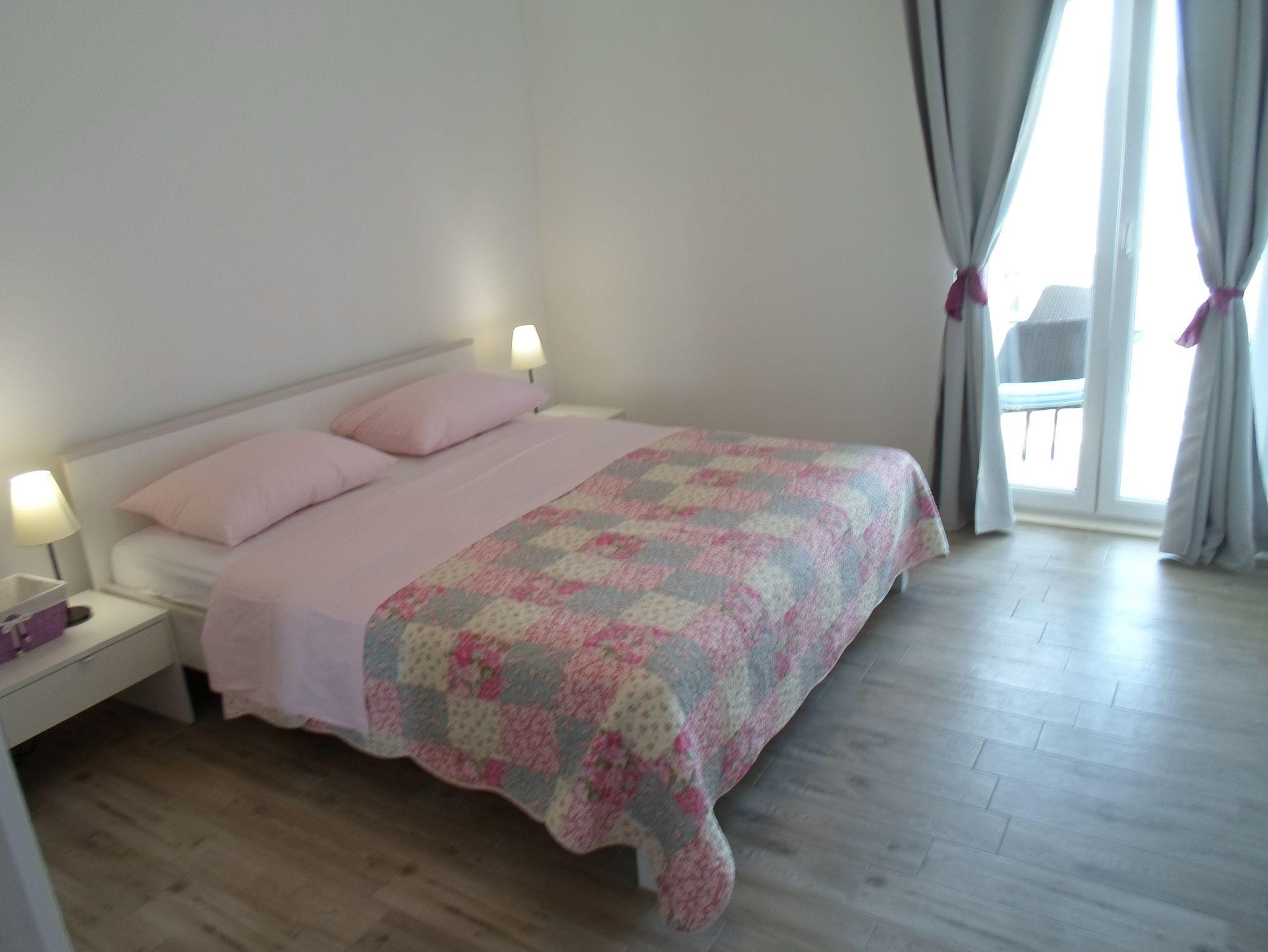 Ferienwohnung bietet Platz für 4 Gäste. Die Betten sind in Schlafzimmern, die es 1 gibt, und in Wohnzimmer, innerhalb einer Gesamtfläche von 40m2, angeordnet. Die Gäste haben einen eigenen Balkon zur Verfügung, auf der sie in warmen Sommernächten genießen können. Das Apartment bietet Meerblick. Es ist erlaubt, Speisen auf dem Gemeinschafts-Grill vorzubereiten. In der Unterkunftseinheit besteht die Möglichkeit des Mitbringens von Haustieren, und die Dienstleistung ist im Preis der Unterkunft enthalten. IM PREIS INBEGRIFFEN: Kurtaxe, Endreinigung, Klimatisierung, Parkplatz, Internet, Wäschewaschen, Haustiere, Kinderbett, Bügeleisen, Bügelbrett, Föhn, tragbarer Grill. Die Verfügbarkeit zusätzlicher Dienstleistungen in Ihrem reservierten Termin und die Preise derselben (falls nicht aufgeführt) müssen im Voraus überprüft werden. Zusätzliche Dienstleistungen die in der Zahlungsaufforderung nicht aufgeführt sind werden direkt beim Vermieter bezahlt, angenommen der Gast nutzt auch diese.
