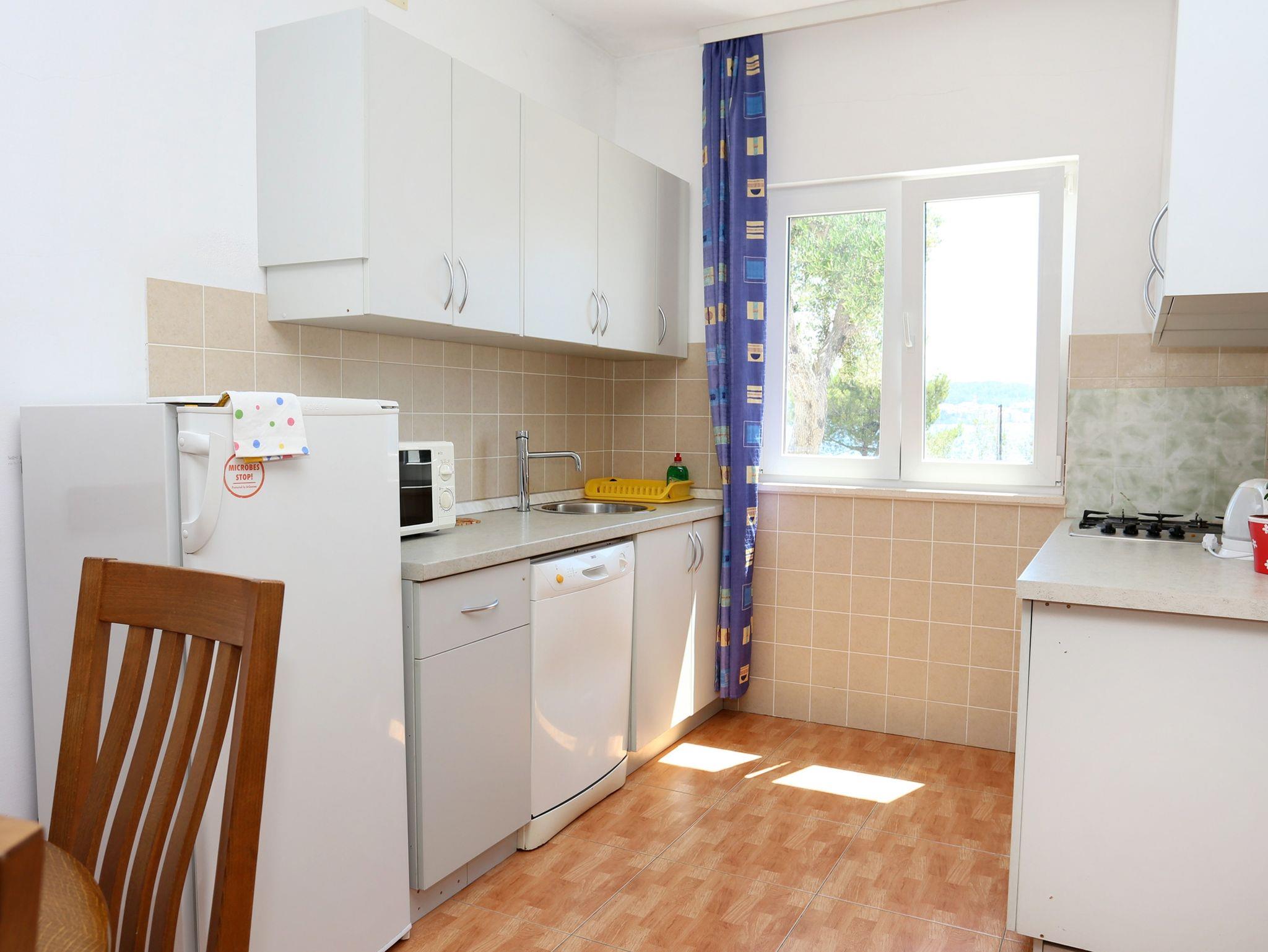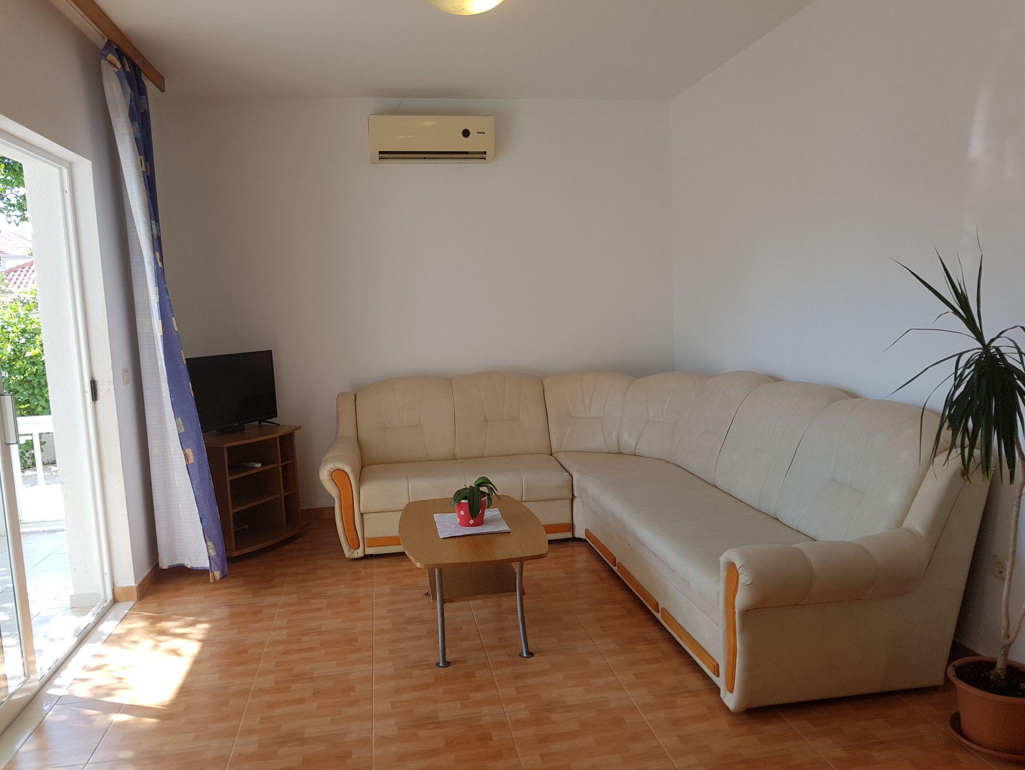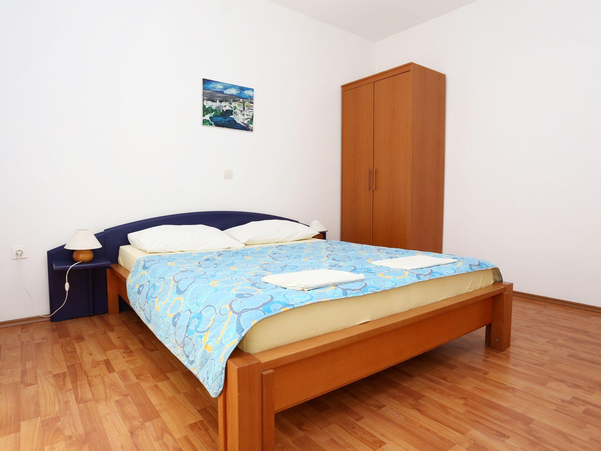 Ferienwohnung bietet Platz für 5 Gäste. Die Betten sind in Schlafzimmern, die es 2 gibt, und in Wohnzimmer, innerhalb einer Gesamtfläche von 67m2, angeordnet. Die Gäste haben eine eigene Terrasse zur Verfügung, auf der sie in warmen Sommernächten genießen können. Das Apartment bietet Meerblick. IM PREIS INBEGRIFFEN: Kurtaxe, Endreinigung, Klimatisierung, Parkplatz, Internet, Bootsanlegeplatz, Bügeleisen, Bügelbrett, Föhn. VERBINDLICHE ZUSÄTZLICHE KOSTEN: Aufzahlung für Kurzaufenthalte (prozentualer Zuschlag pro Nächtigungsanzahl: 30% - 1, 20% - 2, 10% - 3). Die Verfügbarkeit zusätzlicher Dienstleistungen in Ihrem reservierten Termin und die Preise derselben (falls nicht aufgeführt) müssen im Voraus überprüft werden. Zusätzliche Dienstleistungen die in der Zahlungsaufforderung nicht aufgeführt sind werden direkt beim Vermieter bezahlt, angenommen der Gast nutzt auch diese.