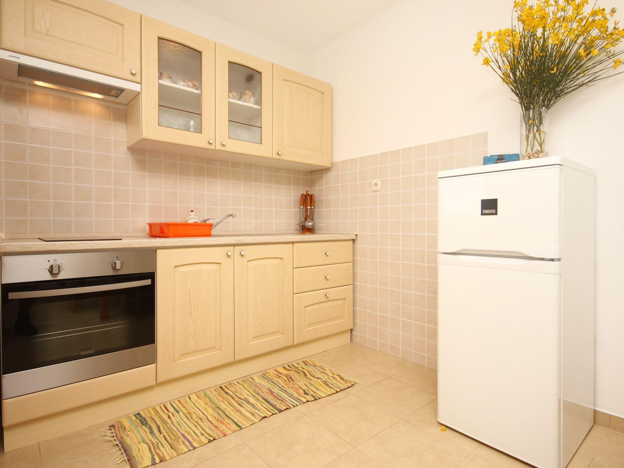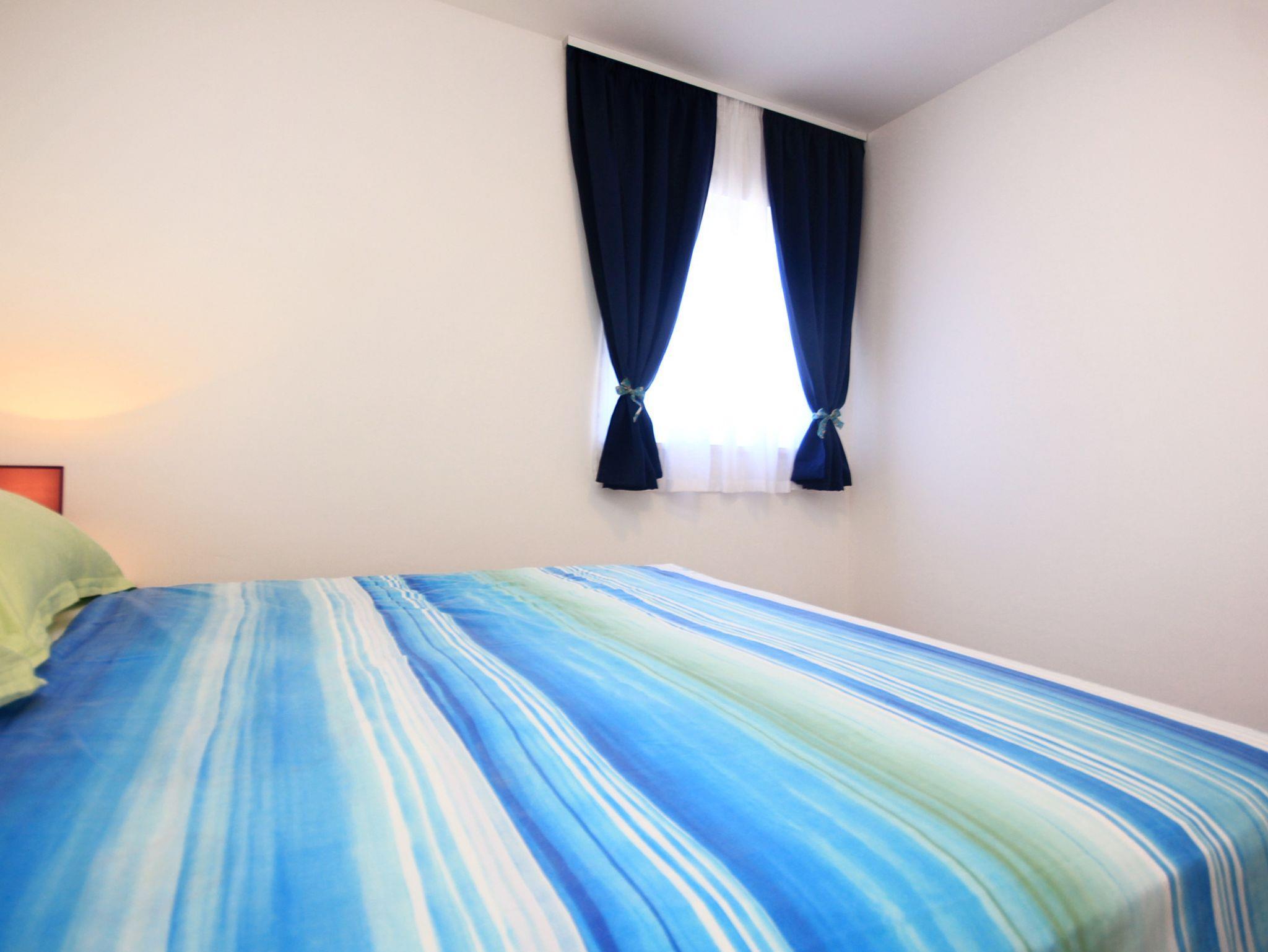 Ferienwohnung bietet Platz für 4 Gäste. Die Betten sind in Schlafzimmern, die es 1 gibt, und in Wohnzimmer, innerhalb einer Gesamtfläche von 42m2, angeordnet. Die Gäste haben eine eigene Terrasse zur Verfügung, auf der sie in warmen Sommernächten genießen können. Das Apartment bietet Meerblick. Es ist erlaubt, Speisen auf dem Gemeinschafts-Grill vorzubereiten. In der Unterkunftseinheit besteht die Möglichkeit des Mitbringens von Haustieren, und die Dienstleistung ist im Preis der Unterkunft enthalten. IM PREIS INBEGRIFFEN: Kurtaxe, Endreinigung, Klimatisierung, Parkplatz, Internet, Wäschewaschen, Haustiere, Kinderbett, Bügeleisen, Bügelbrett, Föhn, tragbarer Grill. Die Verfügbarkeit zusätzlicher Dienstleistungen in Ihrem reservierten Termin und die Preise derselben (falls nicht aufgeführt) müssen im Voraus überprüft werden. Zusätzliche Dienstleistungen die in der Zahlungsaufforderung nicht aufgeführt sind werden direkt beim Vermieter bezahlt, angenommen der Gast nutzt auch diese.