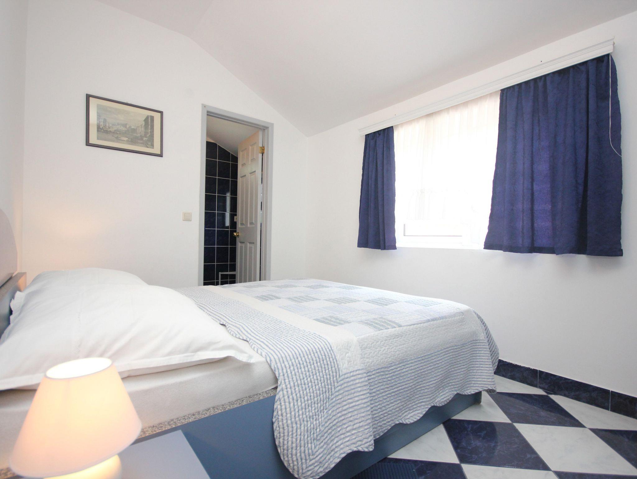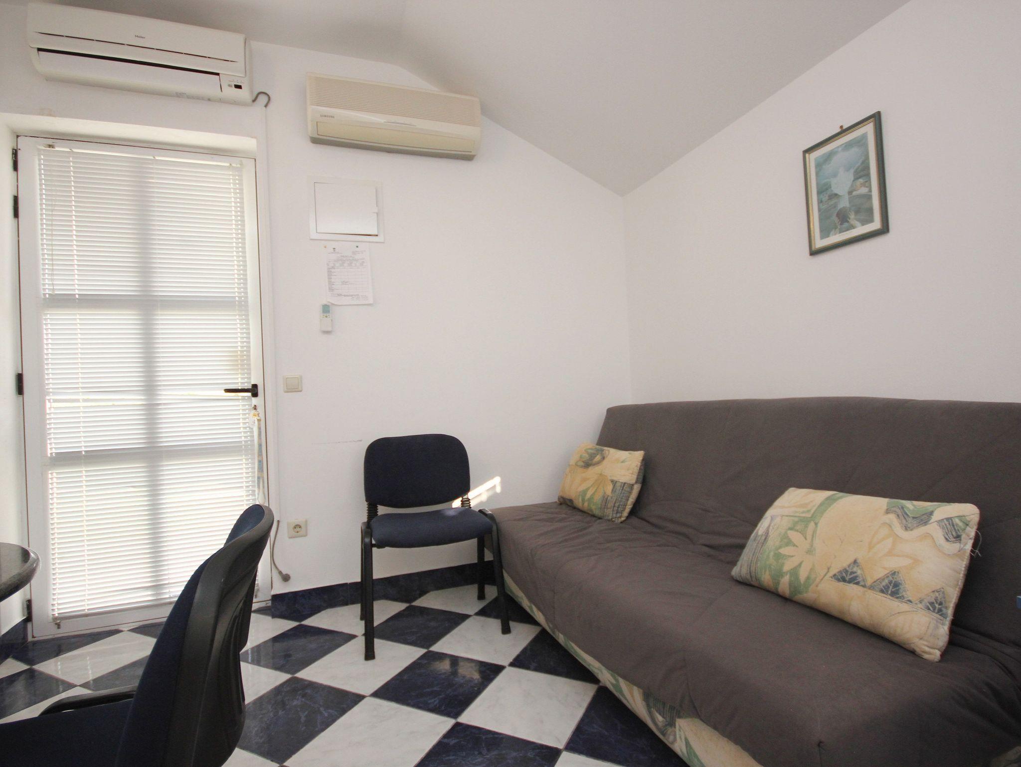 Ferienwohnung bietet Platz für 3 Gäste. Die Betten sind in Schlafzimmern, die es 1 gibt, und in Wohnzimmer, innerhalb einer Gesamtfläche von 23m2, angeordnet. Die Gäste haben eine eigene Terrasse zur Verfügung, auf der sie in warmen Sommernächten genießen können. Das Apartment bietet Meerblick. Es ist erlaubt, Speisen auf dem Gemeinschafts-Grill vorzubereiten. In der Unterkunftseinheit besteht die Möglichkeit des Mitbringens von Haustieren gegen Aufpreis. IM PREIS INBEGRIFFEN: Kurtaxe, Endreinigung, Klimatisierung, Parkplatz, Internet, Bügeleisen, Bügelbrett, Föhn. VERBINDLICHE ZUSÄTZLICHE KOSTEN: Aufzahlung für Kurzaufenthalte (prozentualer Zuschlag pro Nächtigungsanzahl: 30% - 1, 20% - 2, 10% - 3). UNVERBINDLICHE ZUSÄTZLICHE KOSTEN: Wäschewaschen (5,00 € Waschen), Haustiere (5,00 € pro Nacht). Die Verfügbarkeit zusätzlicher Dienstleistungen in Ihrem reservierten Termin und die Preise derselben (falls nicht aufgeführt) müssen im Voraus überprüft werden. Zusätzliche Dienstleistungen die in der Zahlungsaufforderung nicht aufgeführt sind werden direkt beim Vermieter bezahlt, angenommen der Gast nutzt auch diese. Ermäßigung auf den Grundpreis: Gratistag 21=19 (bei einem Aufenthalt von 21 Tagen oder mehr erhalten Sie 2 Gratistage für den Aufenthalt bis 31.12.26).