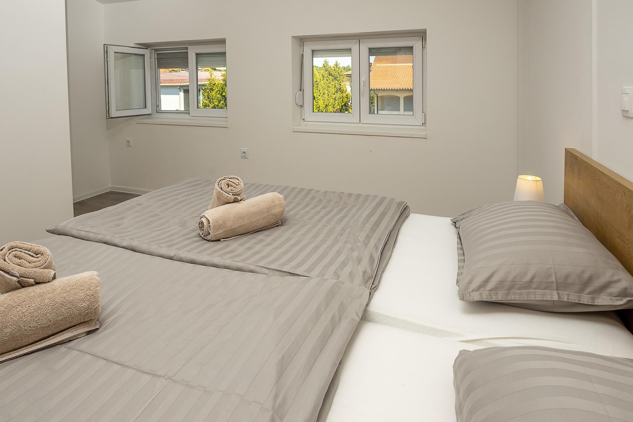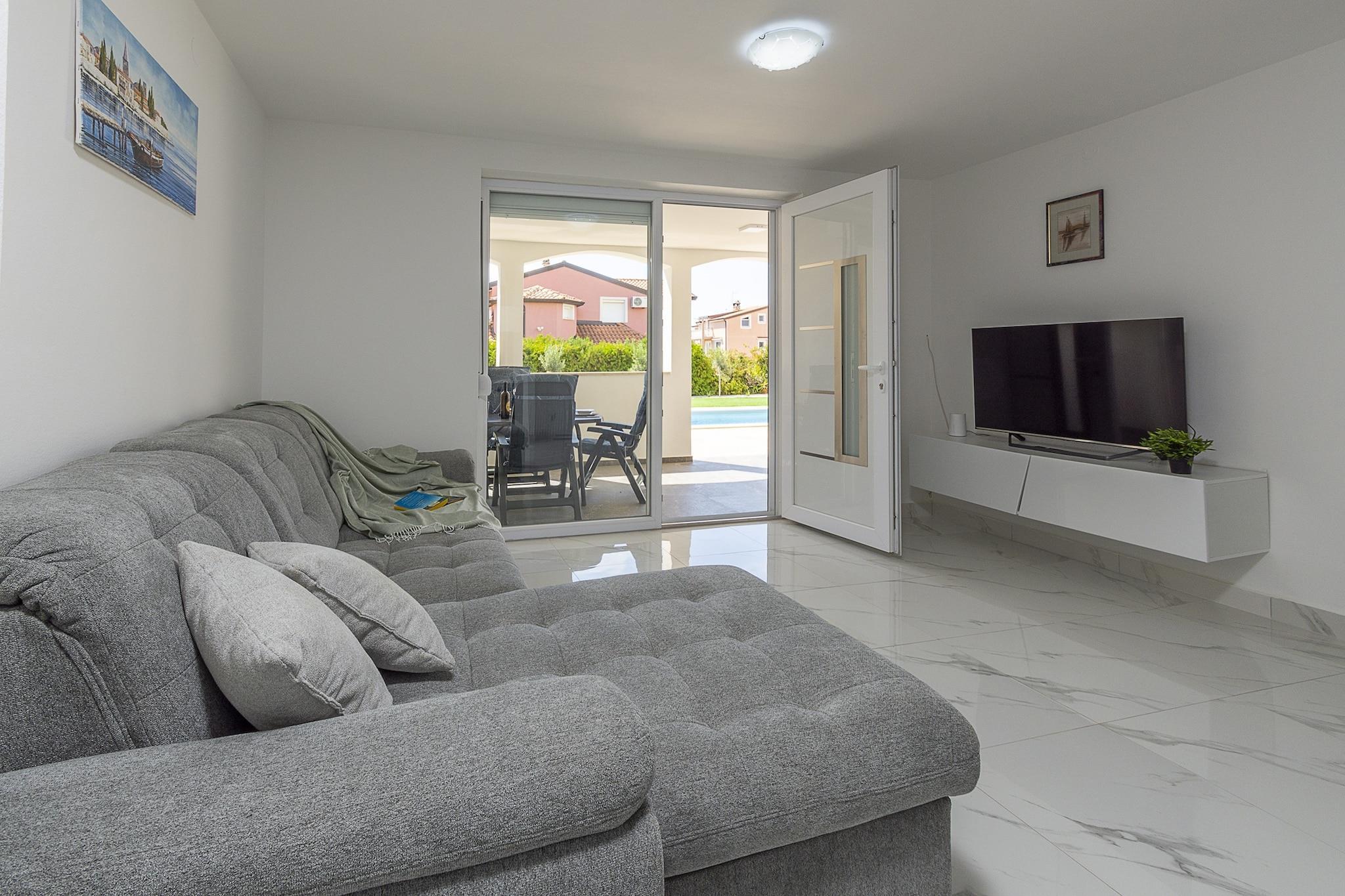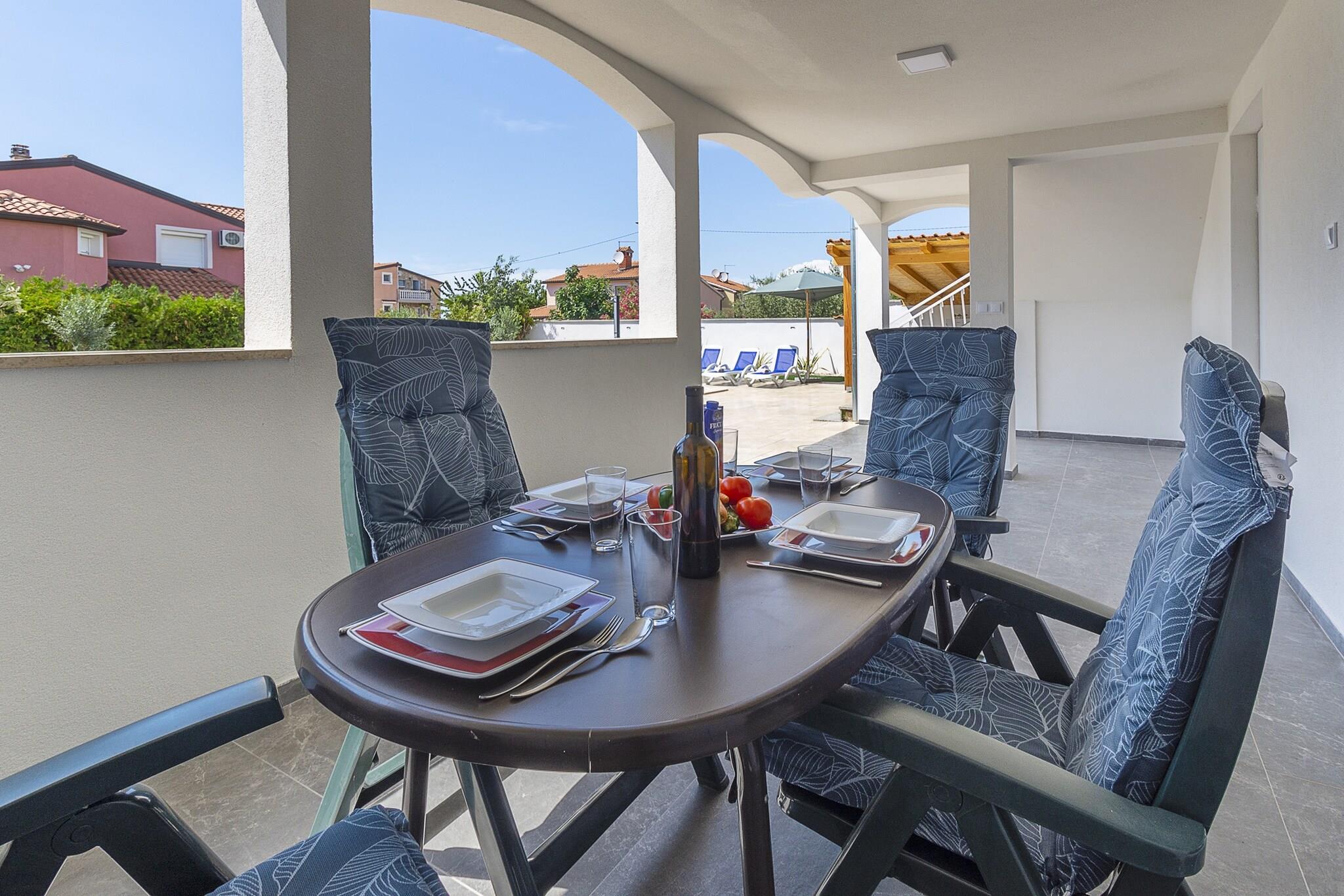 Beliggende i den rolige landsby Rosini er dette charmerende tilflugtssted den perfekte destination for en afslappende ferie. Ejendommen er ideel til to familier og har en krystalklar pool, hvor du kan slappe af i solen eller tilberede en saftig grill på den skyggefulde terrasse. For dem, der søger eventyr, inviterer tre gratis cykler dig til at udforske de maleriske omgivelser i denne fredelige oase, hvilket gør din flugt både fredfyldt og levende. Det smukt indrettede hus spænder over både stueetagen og første sal og giver rigelig plads til afslapning og forbindelse. Stueetagen har en dejlig terrasse med udsigt over poolen, en hyggelig stue, et veludstyret køkken og et komfortabelt soveværelse med badeværelse. Første sal afspejler denne komfort og kan prale af endnu et køkken, et opholdsområde, to ekstra soveværelser og to badeværelser. En trappe fører til et charmerende loftsværelse, det perfekte sovested for børn, mens faciliteter som en barneseng og høj stol sikrer, at de mindste gæster bliver tilgodeset. Gæster nyder absolut privatliv i haven med fire soveværelser, komplet med to stuer, to køkkener, tre badeværelser og en dejlig have med grill og pool. Beliggende kun 6 kilometer fra den pulserende by Porec, tilbyder dette fredelige tilflugtssted den ro, du ønsker, mens du forbliver tæt på vigtige faciliteter - dagligvarebutikker og restauranter er kun 3 kilometer væk, og smukke strande kan nås inden for 10 minutters kørsel. Gratis privat parkering er tilgængelig på stedet, hvilket sikrer en bekvem oplevelse fra start til slut.
