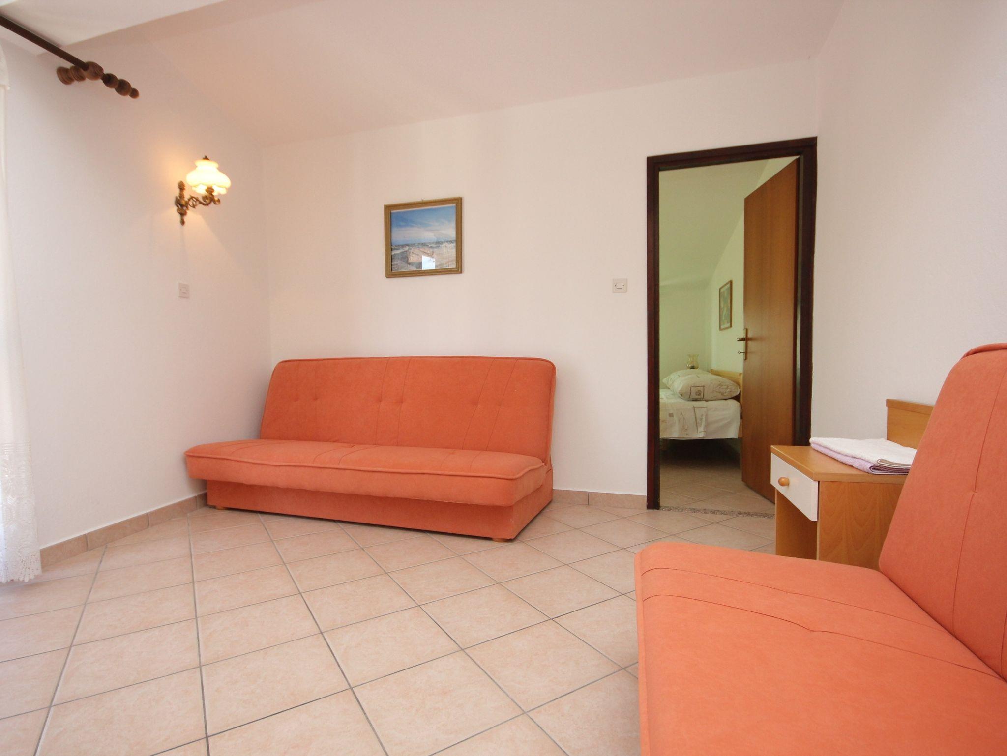 Ferienwohnung bietet Platz für 4 Gäste. Die Betten sind in Schlafzimmern, die es 1 gibt, und in Wohnzimmer, innerhalb einer Gesamtfläche von 34m2, angeordnet. Die Gäste haben einen eigenen Balkon zur Verfügung, auf der sie in warmen Sommernächten genießen können. Das Apartment bietet Meerblick. Es ist erlaubt, Speisen auf dem Gemeinschafts-Grill vorzubereiten. In der Unterkunftseinheit besteht die Möglichkeit des Mitbringens von Haustieren gegen Aufpreis. IM PREIS INBEGRIFFEN: Kurtaxe, Endreinigung, Internet, Bügeleisen, Bügelbrett, Föhn. VERBINDLICHE ZUSÄTZLICHE KOSTEN: Aufzahlung für Kurzaufenthalte (prozentualer Zuschlag pro Nächtigungsanzahl: 30% - 1, 20% - 2, 10% - 3). UNVERBINDLICHE ZUSÄTZLICHE KOSTEN: Klimatisierung (5,00 € pro Nacht), Haustiere (5,00 € pro Nacht). Die Verfügbarkeit zusätzlicher Dienstleistungen in Ihrem reservierten Termin und die Preise derselben (falls nicht aufgeführt) müssen im Voraus überprüft werden. Zusätzliche Dienstleistungen die in der Zahlungsaufforderung nicht aufgeführt sind werden direkt beim Vermieter bezahlt, angenommen der Gast nutzt auch diese. Ermäßigung auf den Grundpreis: Gratistag 14=13 (bei einem Aufenthalt von 14 Tagen oder mehr erhalten Sie einen Gratistag für den Aufenthalt bis 31.12.26).