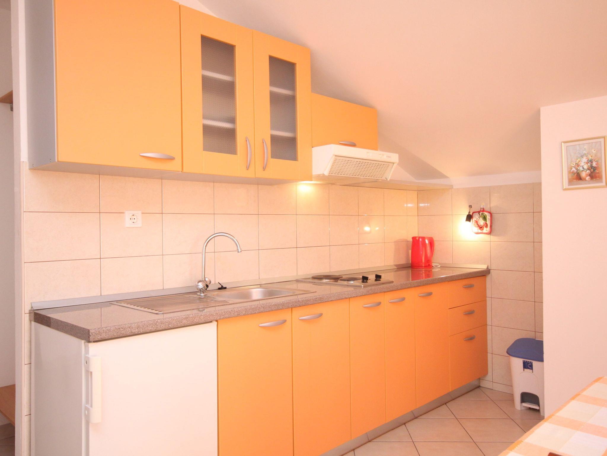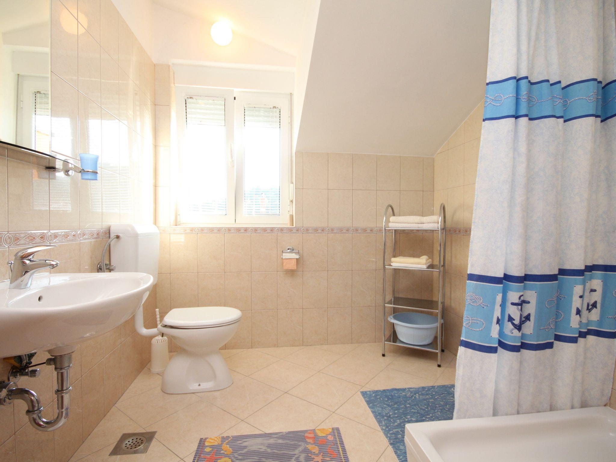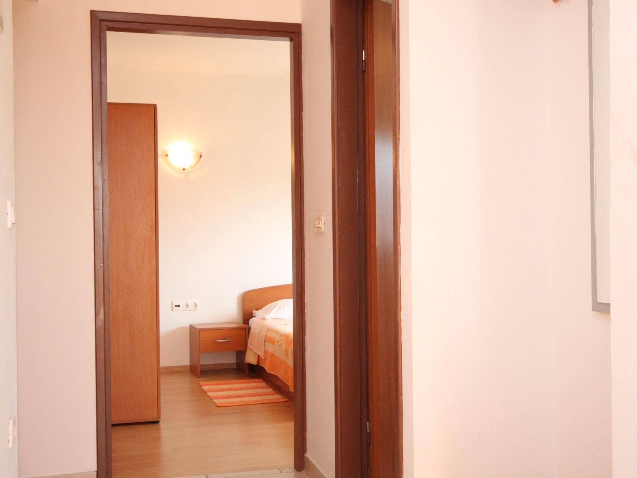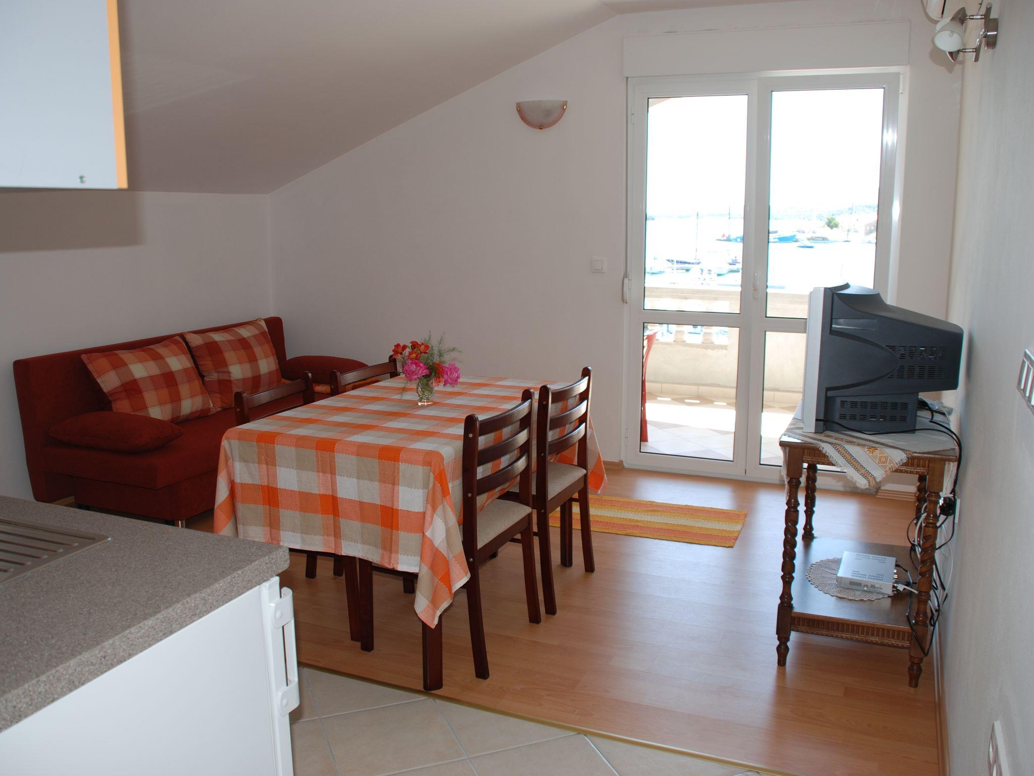 Ferienwohnung bietet Platz für 4 Gäste. Die Betten sind in Schlafzimmern, die es 1 gibt, und in Esszimmer, innerhalb einer Gesamtfläche von 37m2, angeordnet. Die Gäste haben eine eigene Terrasse zur Verfügung, auf der sie in warmen Sommernächten genießen können. Das Apartment bietet Meerblick. Es ist erlaubt, Speisen auf dem Gemeinschafts-Grill vorzubereiten. IM PREIS INBEGRIFFEN: Kurtaxe, Endreinigung, Klimatisierung, Parkplatz, Internet, tragbarer Grill. VERBINDLICHE ZUSÄTZLICHE KOSTEN: Aufzahlung für Kurzaufenthalte (prozentualer Zuschlag pro Nächtigungsanzahl: 30% - 1, 20% - 2, 10% - 3). UNVERBINDLICHE ZUSÄTZLICHE KOSTEN: Zusatzbett (7,00 € pro Nacht). Die Verfügbarkeit zusätzlicher Dienstleistungen in Ihrem reservierten Termin und die Preise derselben (falls nicht aufgeführt) müssen im Voraus überprüft werden. Zusätzliche Dienstleistungen die in der Zahlungsaufforderung nicht aufgeführt sind werden direkt beim Vermieter bezahlt, angenommen der Gast nutzt auch diese. Ermäßigung auf den Grundpreis: Gratistag 14=13 (bei einem Aufenthalt von 14 Tagen oder mehr erhalten Sie einen Gratistag für den Aufenthalt bis 31.12.26).