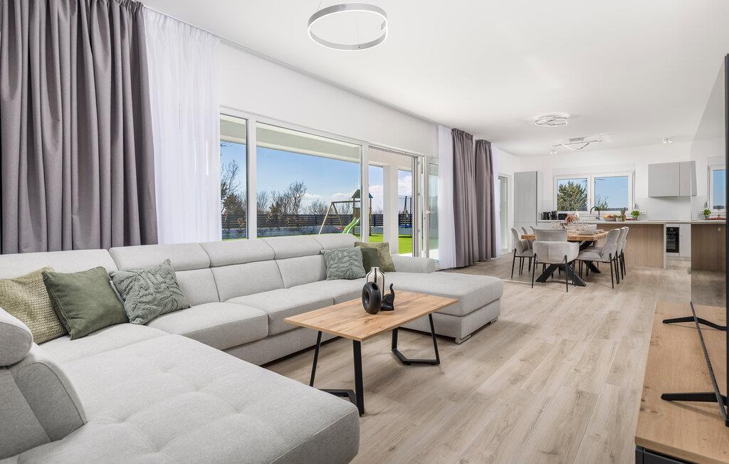I dette moderne feriehus er alt forberedt til en afslappende og rolig ferie. Fra den stilfulde stue til det rummelige soveværelse og det generøst store køkken er ubesværet samvær garanteret her. Organiser hyggelige filmaftener foran det store tv.