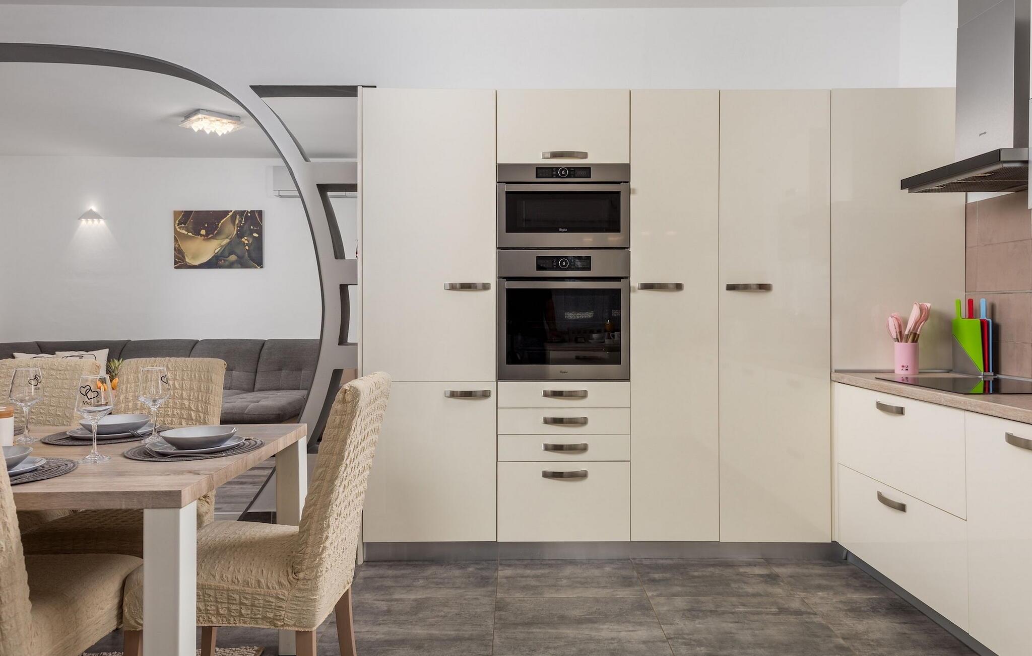 Tilbring en vidunderlig, afslappende ferie i dette charmerende feriehus. Villa Daris kan rumme op til 6+2 gæster og er perfekt til en ferie med en gruppe venner eller familie. Villaen er indrettet med stor sans for detaljer i et moderne design og er særdeles velegnet til familier med små børn, da alle rum i husets indre er i ét plan.