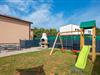 Fra stuen er der direkte udgang til terrasse med havemøbler, ideel til en morgenkaffe eller morgenmad. Fra denne position har du også udsigt til poolen og haven, så forældre kan nyde deres tid, mens børnene svømmer eller leger og stadig holder øje med dem. Derfra er der kun få skridt til haven med pool, liggestole og så en legeplads i form af en rutsjebane og en gynge.