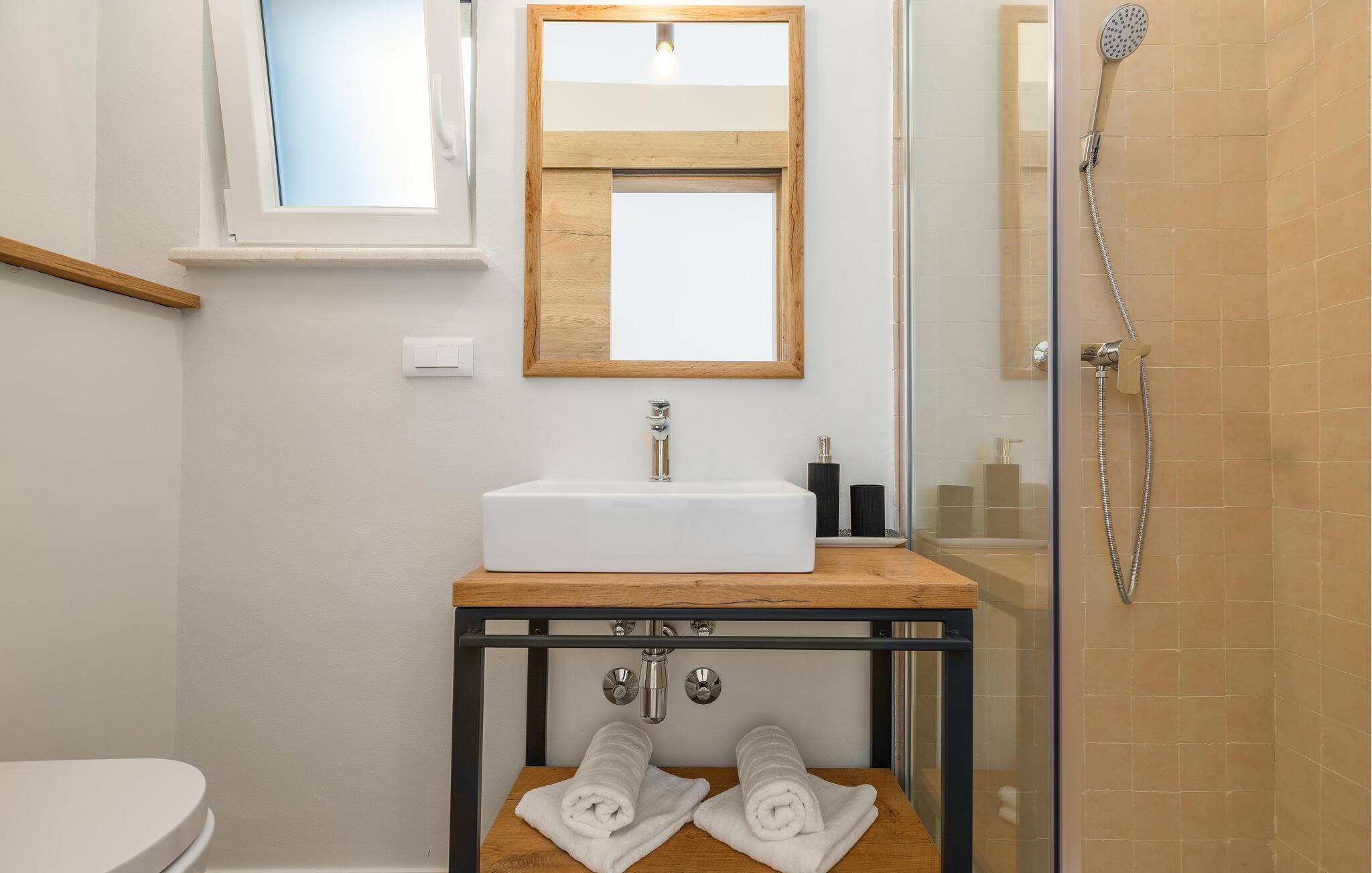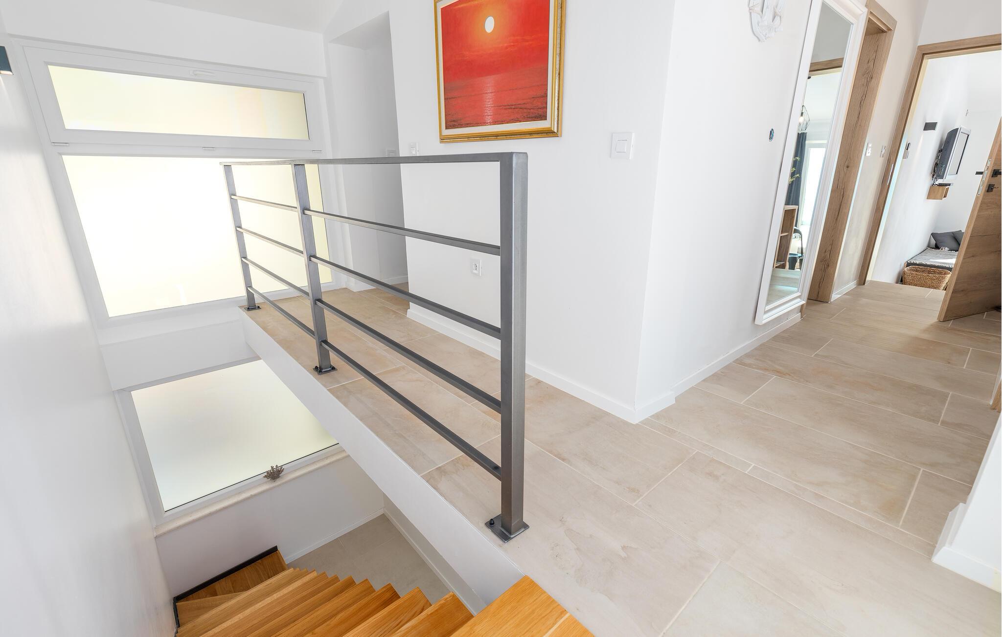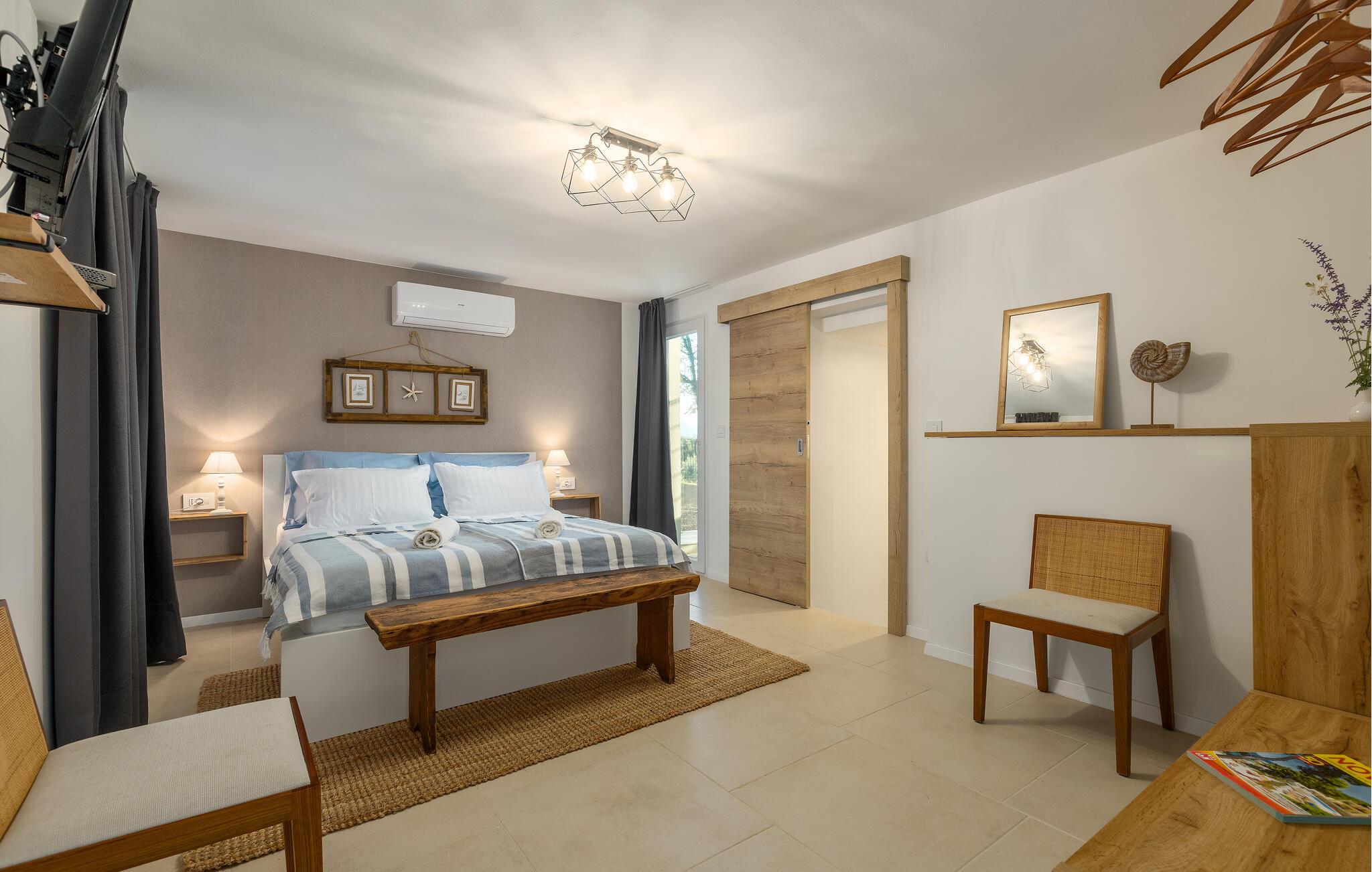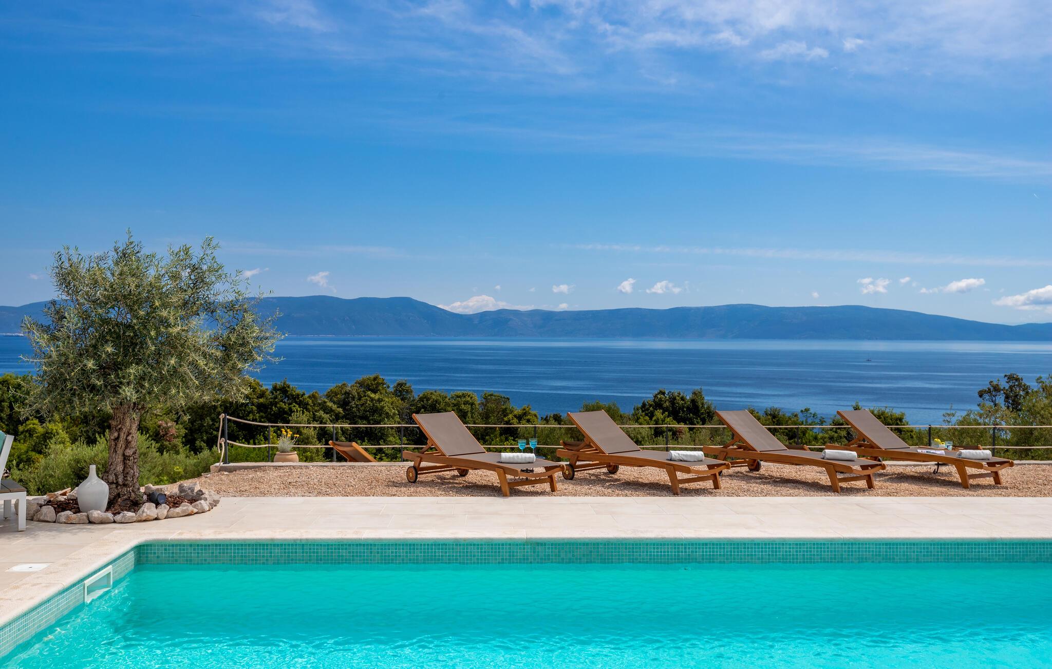 Træd barfodet udenfor og fordyb jer i jeres storslåede pool. Lad jer betage af den betagende udsigt over Adriaterhavet, mens I slapper af på en liggestol eller i spabadet og oplev uforglemmelige solnedgange med et glas vin. Forkæl jer selv med afslappende øjeblikke i saunaen og nyd kvalitetstid sammen med stemningsfulde aftener under åben himmel.