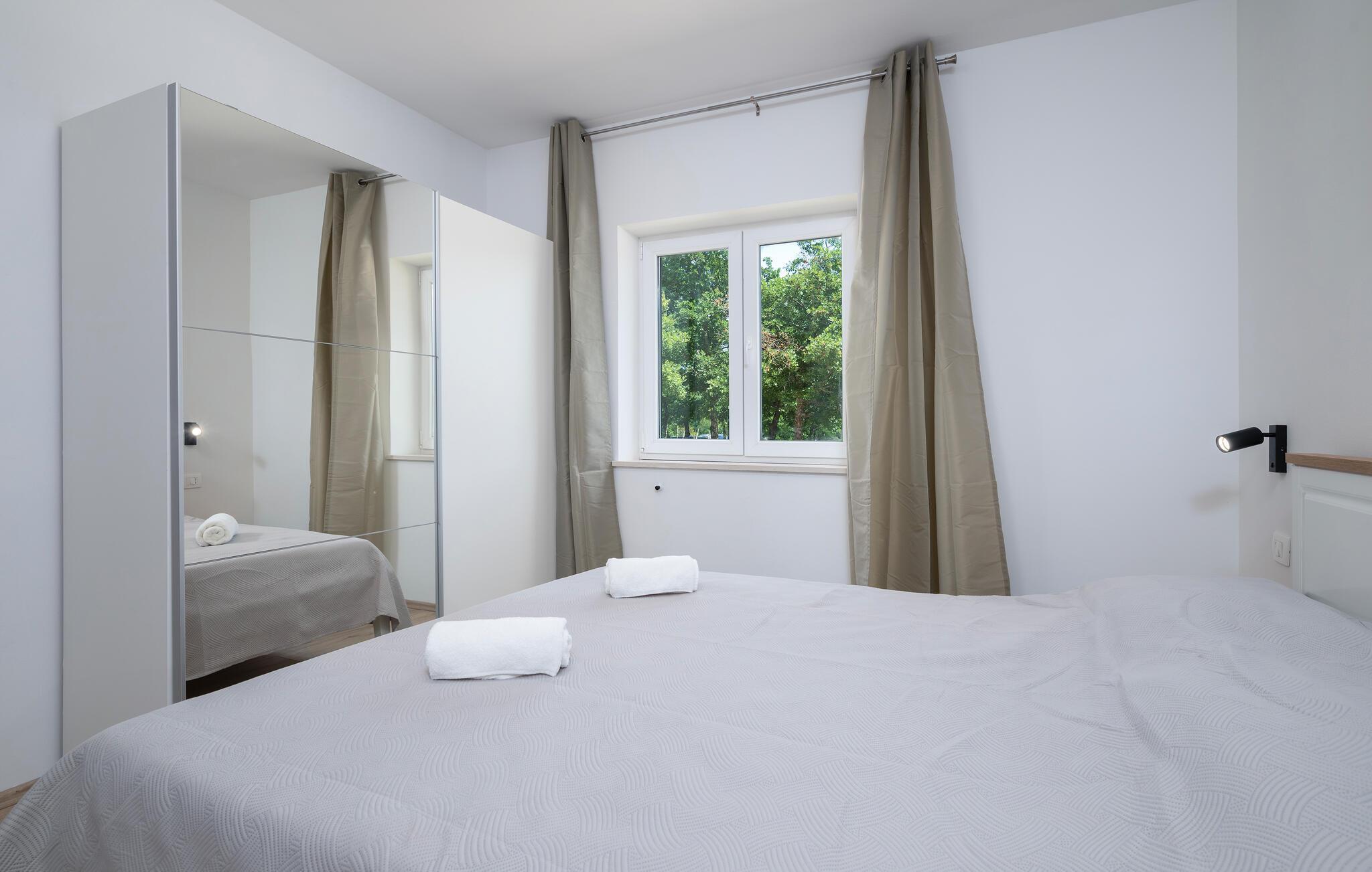 Tilbring afslappende dage med familien i denne lyse og hyggelige ferielejlighed, mens I nyder den smukke udsigt over de grønne omgivelser. Glæd jer til hyggelig madlavning i det åbne køkken og hyggelige måltider i den behagelige boligatmosfære. Afslut en lang dag med et spil kort eller læn jer tilbage i sofaen med en god bog.