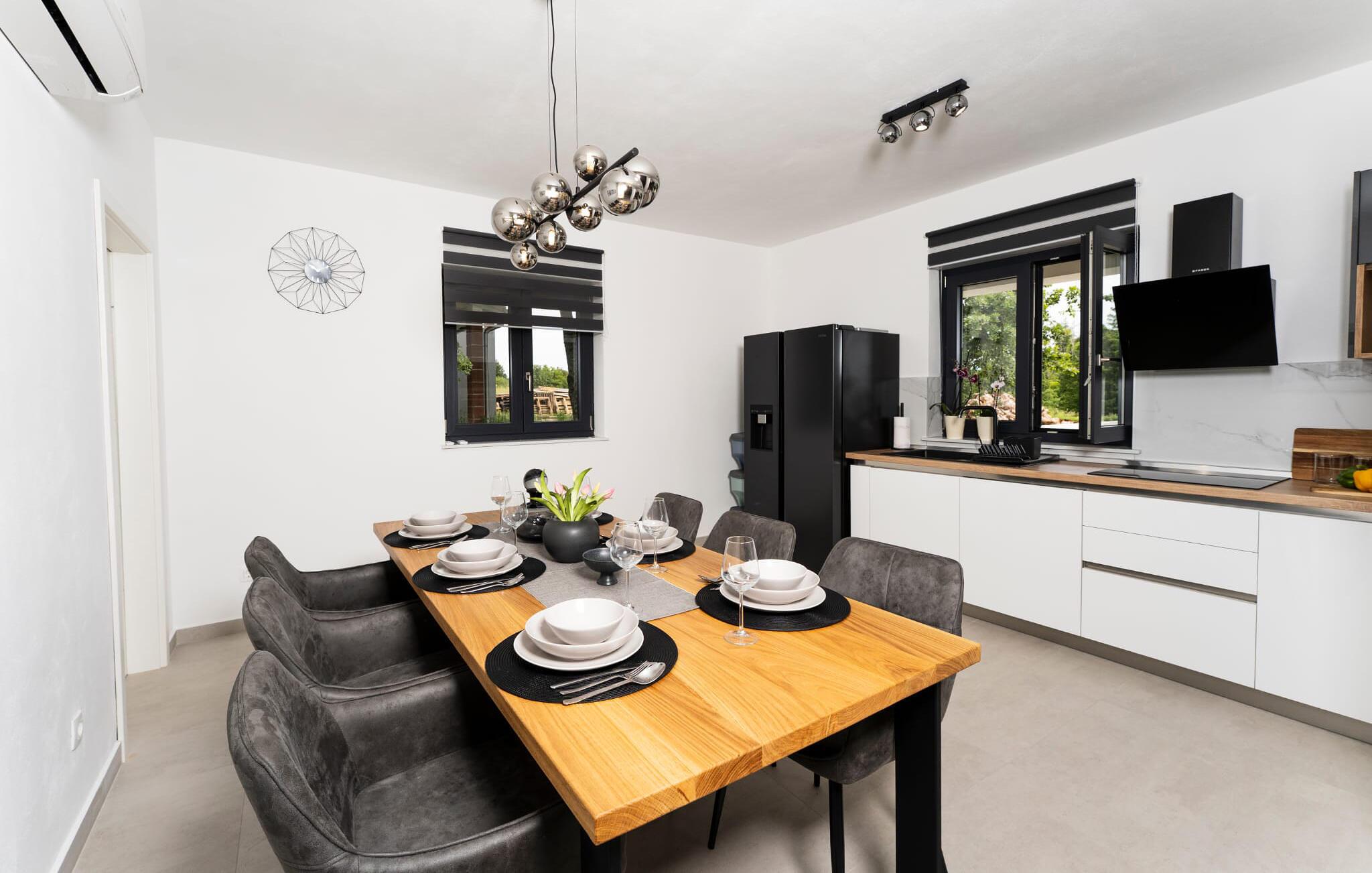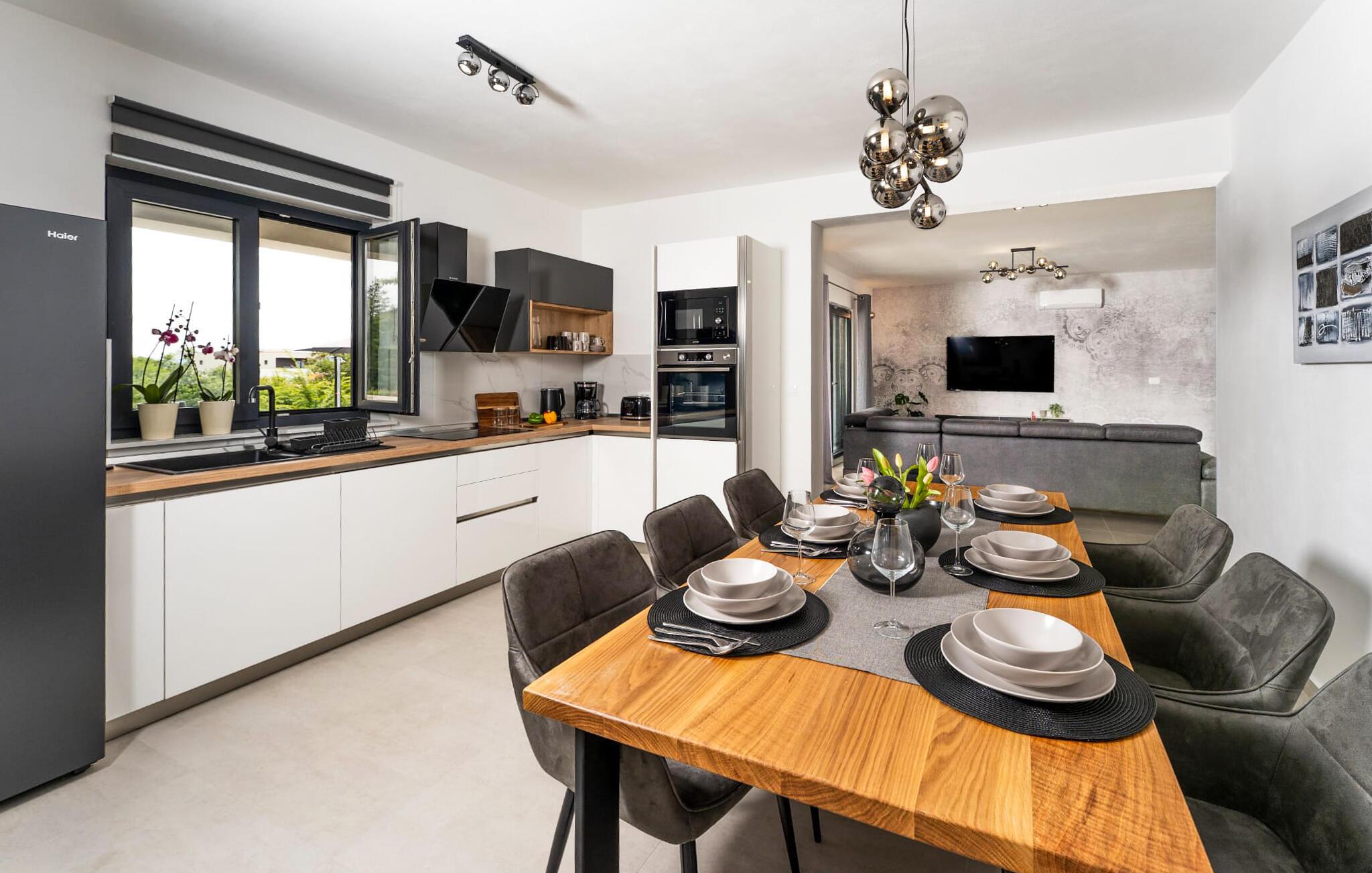 Dette rummelige og stilfulde feriehus lægger op til ren afslapning og en rolig beliggenhed nær Labin. Soveværelserne er indbydende og har en smuk udsigt over den omkringliggende natur og Labins gamle bydel. En hyggelig sofagruppe venter på jer i den elegante og komfortable opholdsstue – sæt jer til rette med jeres ferielæsning eller nyd en spilleaften med familien.