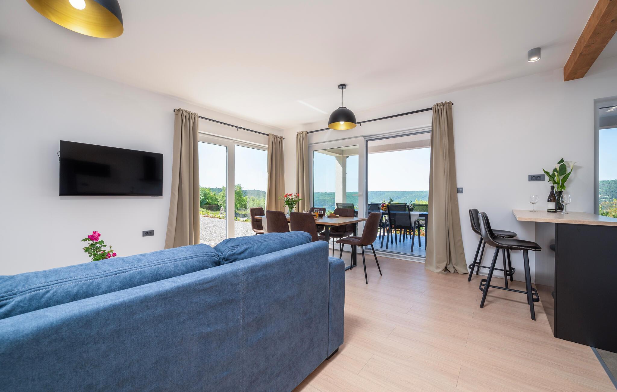 I dette moderne hus med store vinduespartier finder I hurtigt ro og kan samle ny energi. Lyse, rummelige værelser i maritime farver indbyder til afslappede eftermiddage med læsning, musik eller tv. Tilbered lækre retter i det moderne køkken, og nyd dem med et glas kroatisk vin.