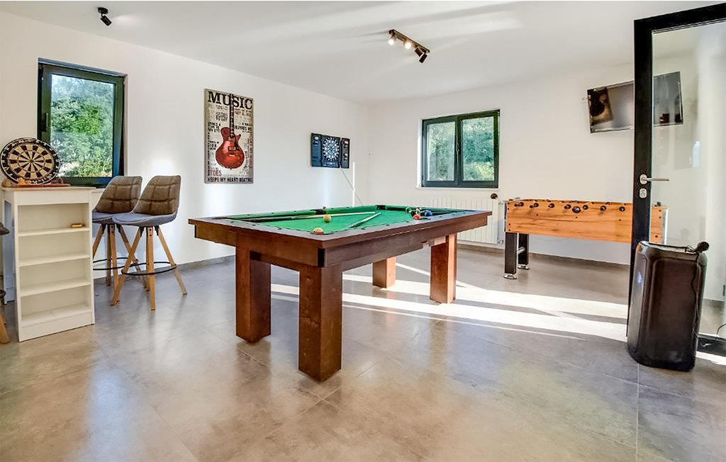Det indbydende hus, der venter jer, har en vidunderlig beliggenhed. Det er omgivet af et malerisk landskab og kun en kort køretur fra havet. Her vil hele familien føle sig hjemme i de smagfuldt indrettede værelser, som har moderne møbler og behagelige farver. Efter en aktiv dag i naturen kan I slappe af i saunaen og spabadet og spise sammen i hinandens dejlige selskab ved det lange spisebord.