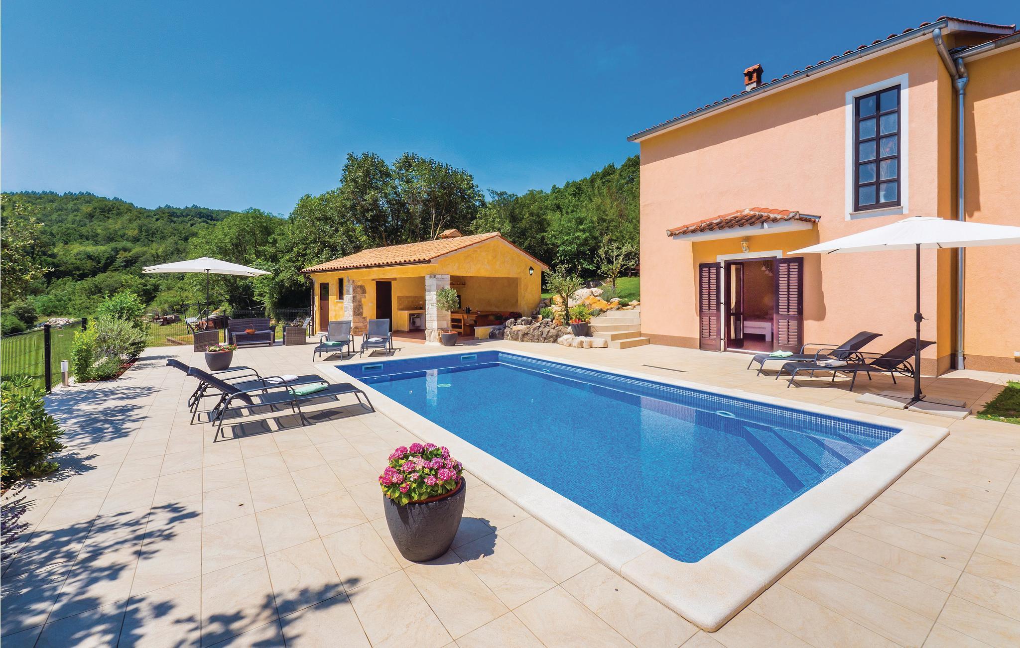 Dette dejlige feriehus med egen pool, ligger i den rolige lille by Barisici, i nærheden af Labin. Her kan I nyde skønne rolige og grønne omgivelser. I bor i to lejligheder, af forskellig størrelse og med hver sin indgang. Den største lejlighed fordeler sig på to etager med en indendørs trappe. Så kan I holde ferie sammen, men stadig bo hver for sig. I haven er den dejlige pool til skønne svømmeture i varmen. Der er mange gode cykelstier i nærheden. Besøg den dejlige badeby Rabac og nyd de mange strande og de mange soltimer.