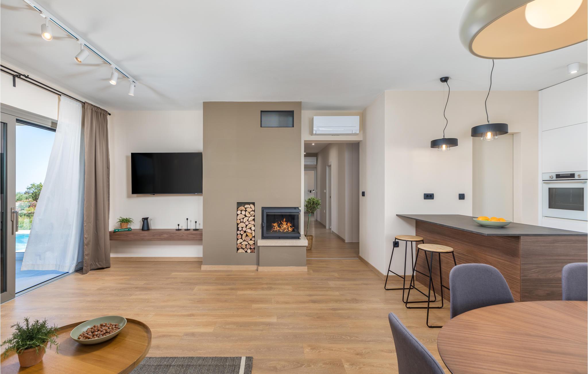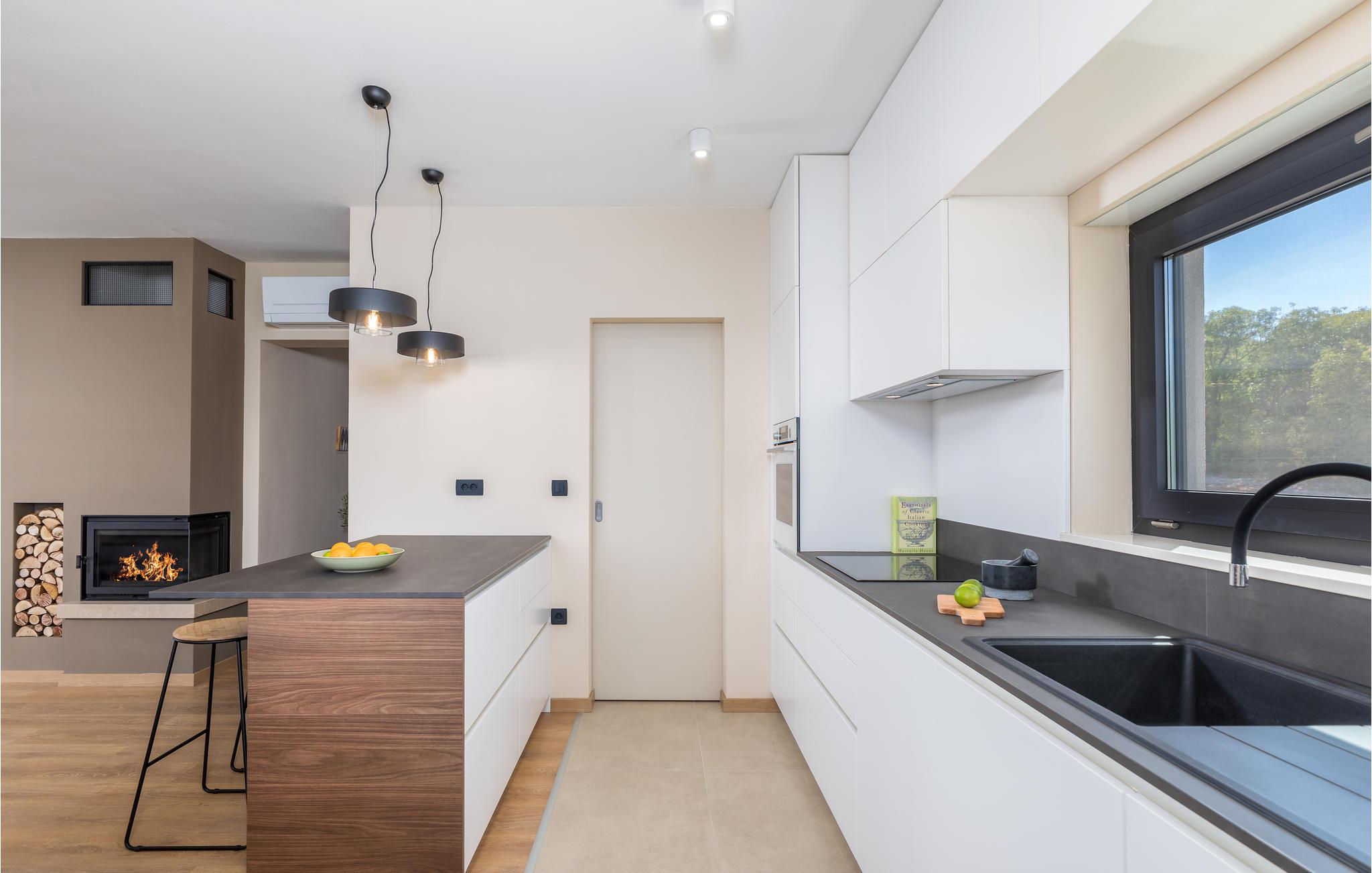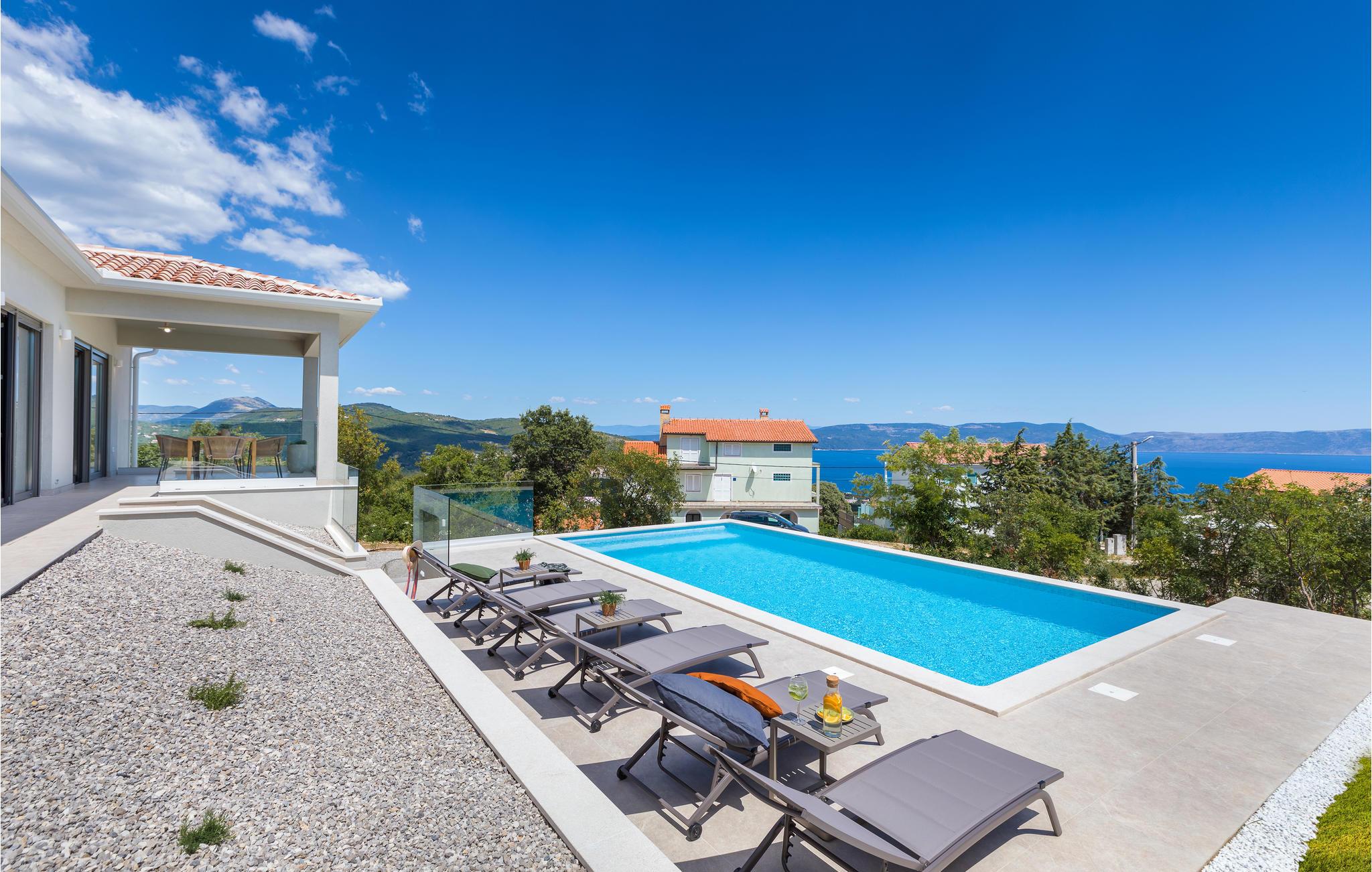 Dette hus er smukt beliggende med udsigt over havet på den ene side og udsigt over bjerget Ucka på den anden. Der venter jer et moderne interiør, som garanterer en behagelig og afslappende ferie. Kun stueetagen er udlejet, og kælderen er ikke tilgængelig. På den overdækkede terrasse kan I nyde solen og spise jeres feriemåltider. Den dejlige udendørs pool er et ideelt sted at tilbringe ferien på varme sommerdage.