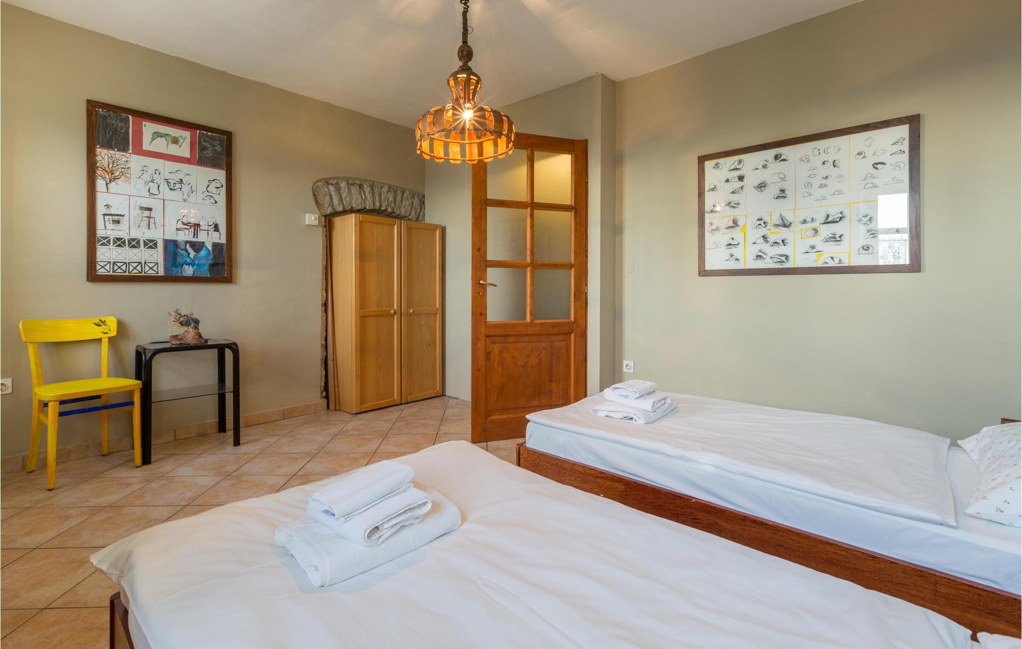 Huset er bygget i traditionel istrisk stil og møbleret i rustik og autentisk stil. Stueetagen har en hyggelig konoba (taverna) med åben pejs og et køkken. Første sal består af to soveværelser, et køkken og et badeværelse. Anden sal indeholder en opholdsstue med køkken, et soveværelse, et badeværelse og en hems, der er tilgængelig via en stejl trappe – ikke egnet til små børn. Den laveste loftshøjde på hemsen er 1,3 meter.