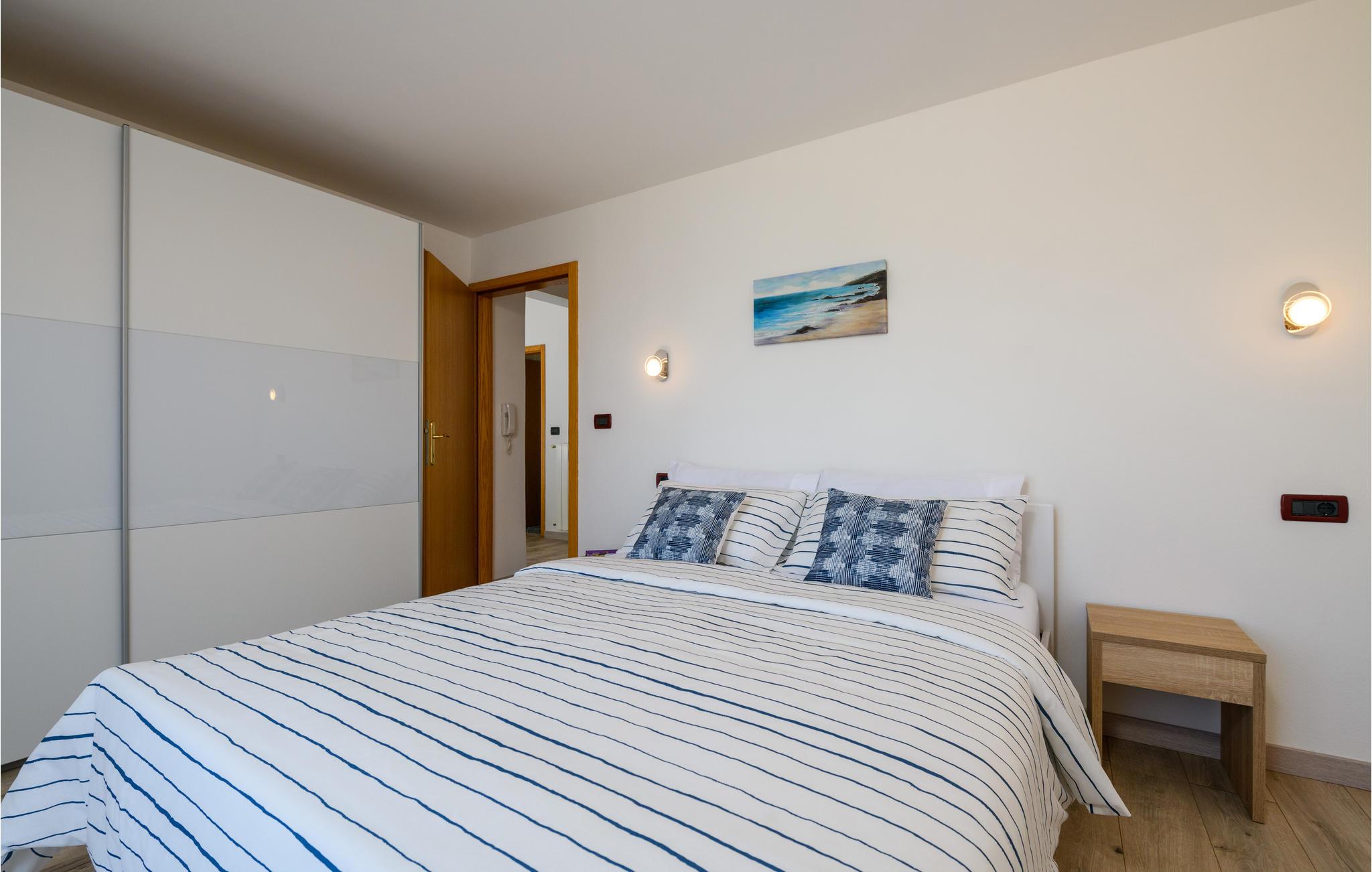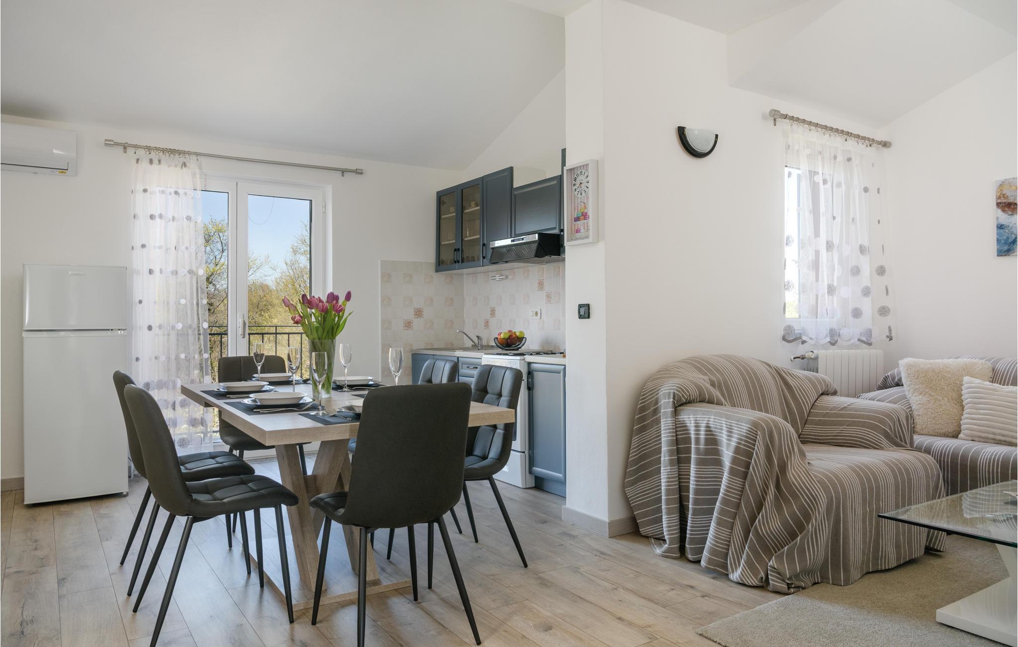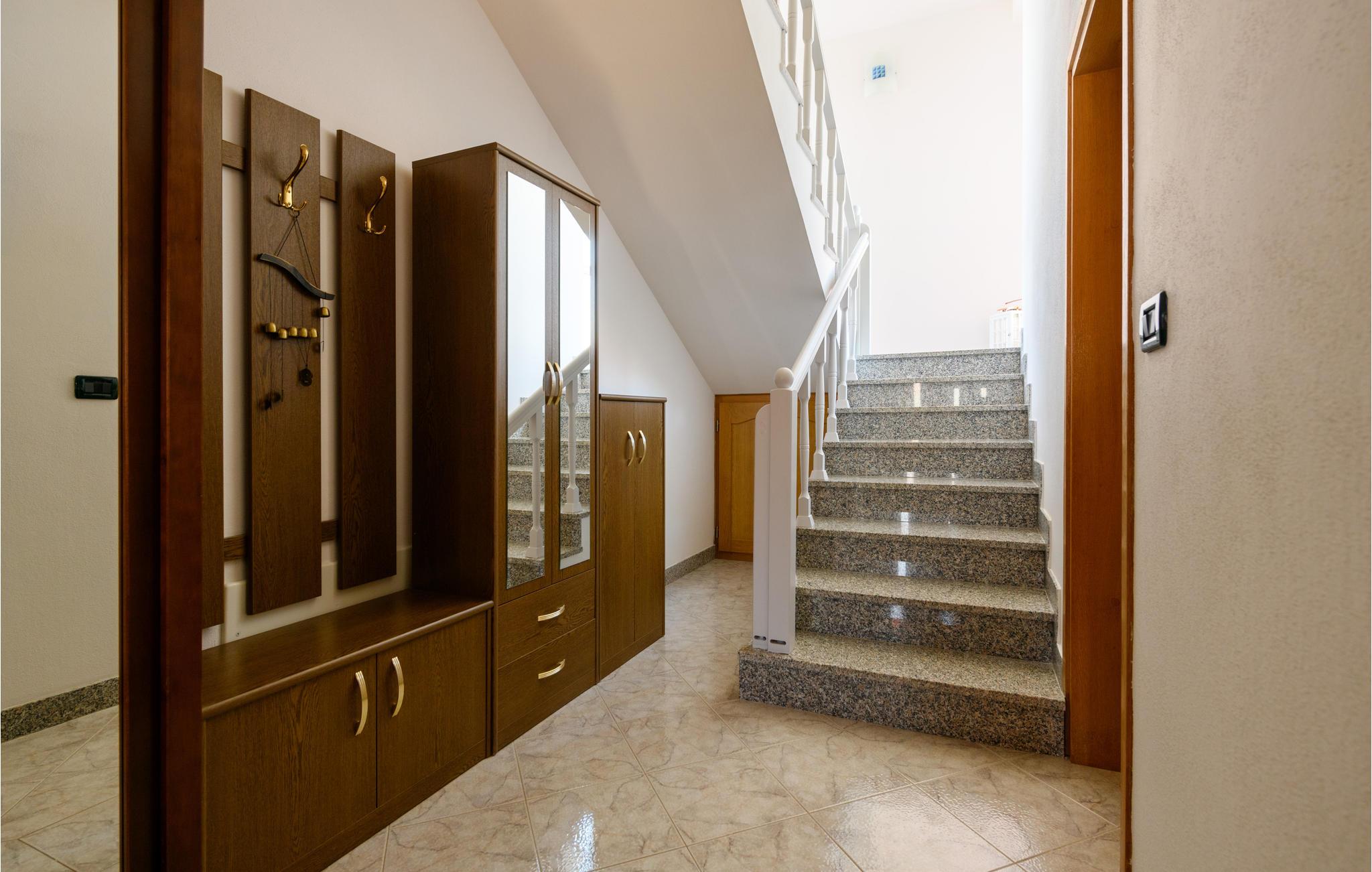 Dette dejlige og komfortable feriehus med swimmingpool der står i haven hvor palmerne svajer i vinden, ligger i den lille by Kapelica ikke langt fra Labin. I stueplan er der et lille køkken og en rummelig stue med åben kamin. På den anden side af en skydedør finder I endnu et soveværelse. På øverste etage er der fire soveværelser, køkken, spise- og opholdsstue. Fra to soveværelser er der udgang til altan. På siden af huset ligger et lille hus, som af og til bebos af husets ejer. Rabacs nærmeste strande, som regnes blandt Istriens skønneste, nås på bare ti minutter i bil. Fra Rabac kan I tage på tur i båd til Kvarnerøerne eller besøge den smukek gamle bydel i Labin.