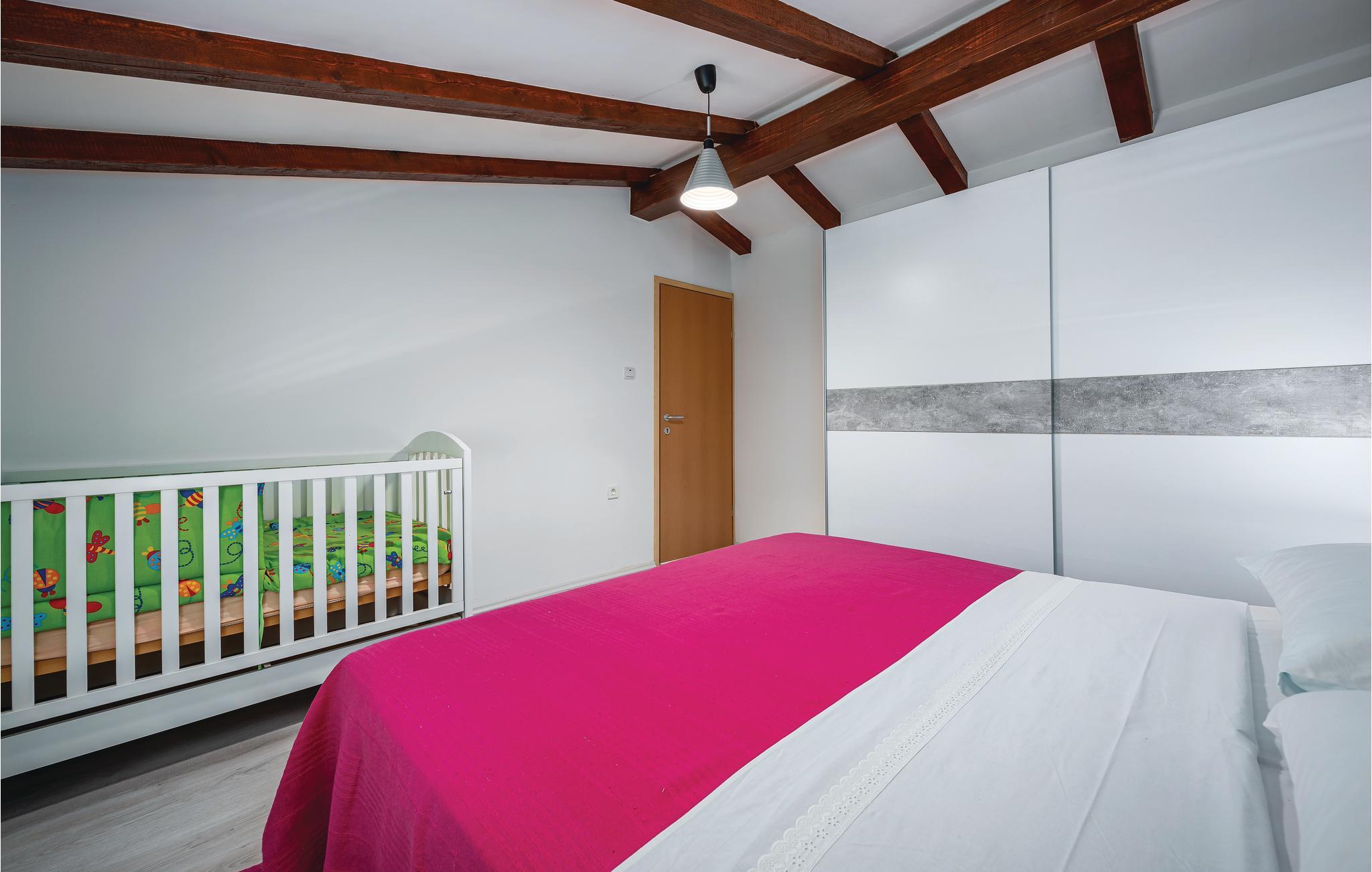 Dette smagfuldt indrettede feriehus med pool ligger i Kapelica, en lille by ikke langt fra Labin. Det består af to etager og er indrettet til jeres skønne ferie. Slap af på terrassen med en god bog og et velsmagende glas af den lokale vin og hop en forfriskende tur i poolen, når solen står højt på himlen. I kan også lave nem og lækker mad på grillen, både grønt, fisk, skaldyr og kød får en særlig smag efter en tur over gløderne. Til børnene er der gynge og rutsjebane. Besøg den maleriske gamle bydel i Labin, og tag en tur til Rabac, med herlige kiesstrande og det krystalklare hav, hvor I også kan tage på udflugt i båd, eller gå tur på promenaden med souvenirbutikker, barer og restauranter. Der er kun adgang udefra, til badeværelset i stueplan.