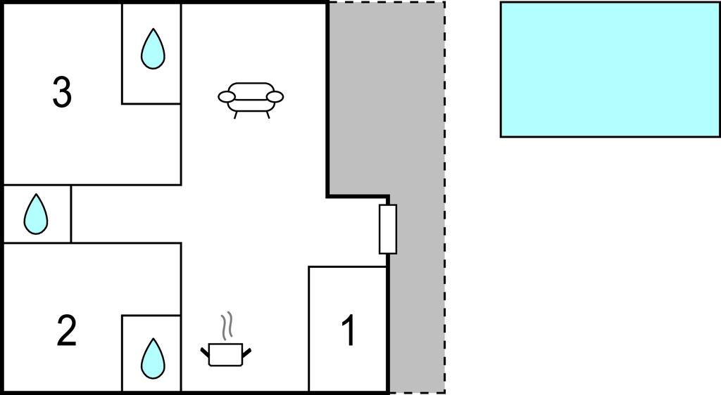 Badeværelse 6m2 (nr. 3) - WC. Varmt og koldt vand. Bruser