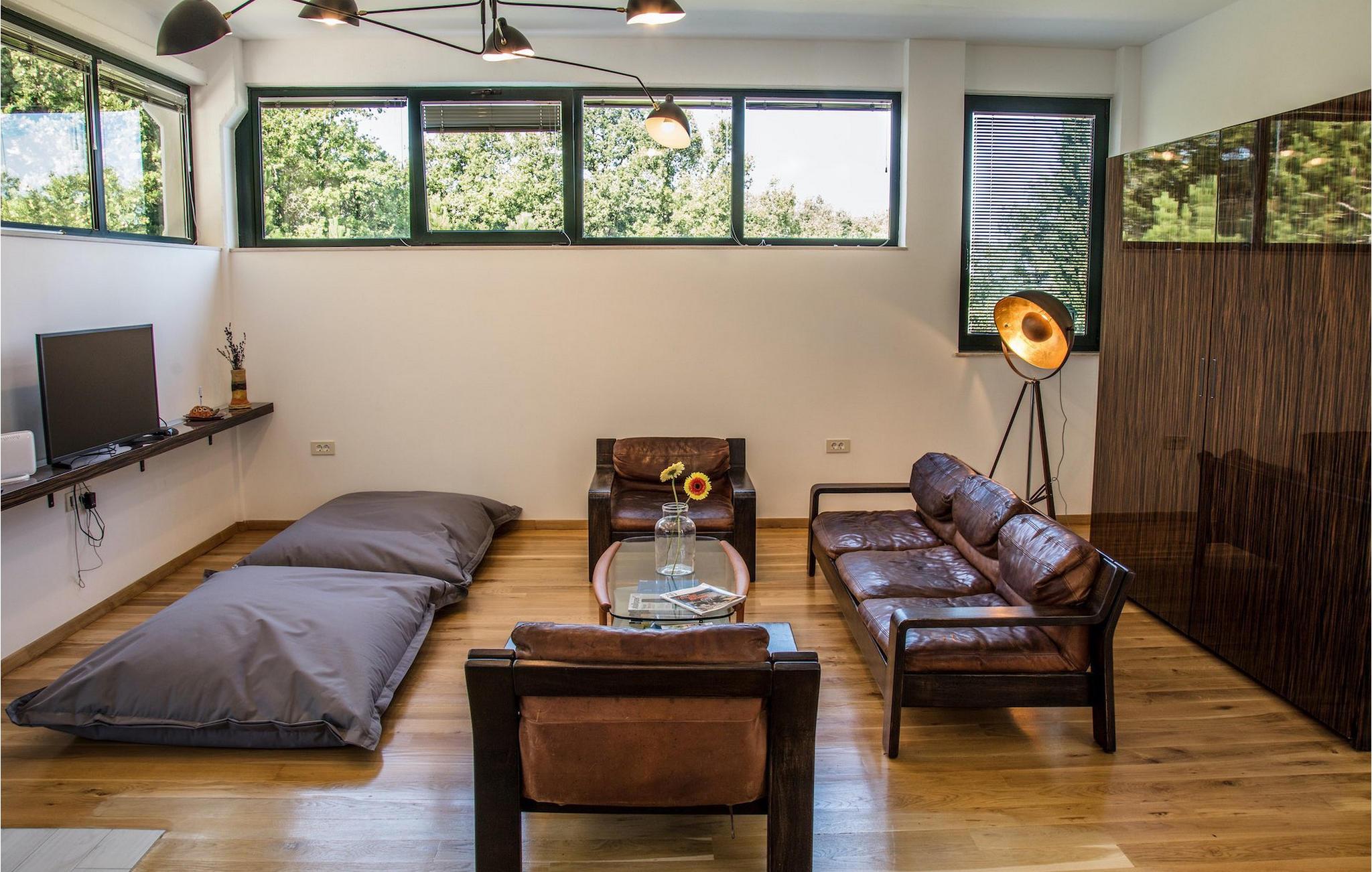 Die elegante, luxuriöse Villa Breg ist eine einzigartige Villa, eingerichtet mit hochwertigen italienischen Möbeln und bietet den perfekten Ort zum Entspannen auf der Ostseite Istriens. Die Villa ist im minimalistischen Retro-Stil eingerichtet und verwöhnt ihre Gäste mit einem 60 m² großen privaten Pool, 3 Doppelzimmern mit Klimaanlage und TV, 3 ensuite Badezimmern, einem geräumigen, komfortablen Wohnbereich, einer völlig ausgestatteten Küche und einem Essbereich. Alle Einrichtungen befinden sich im Erdgeschoss, was diese Villa zu einer großartigen Option für Familien mit Kindern macht.