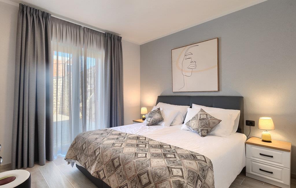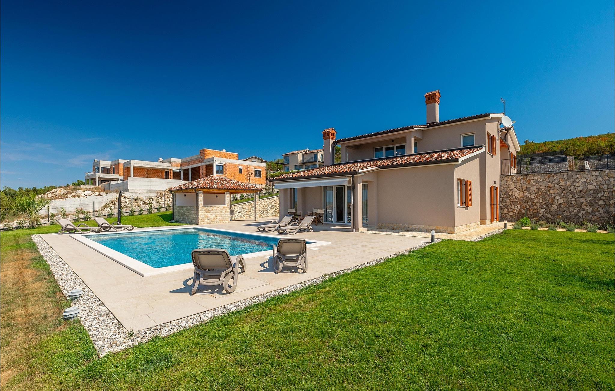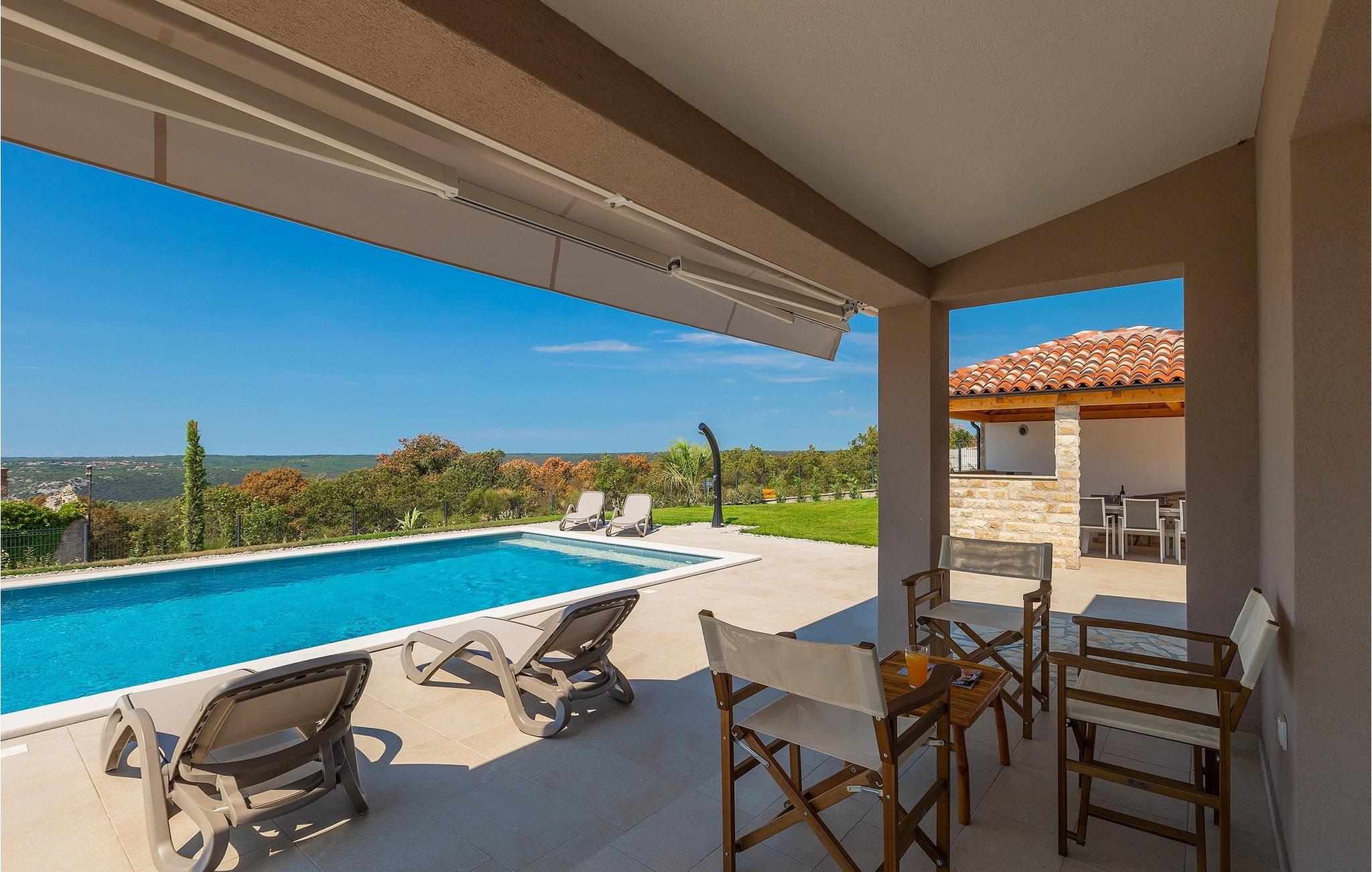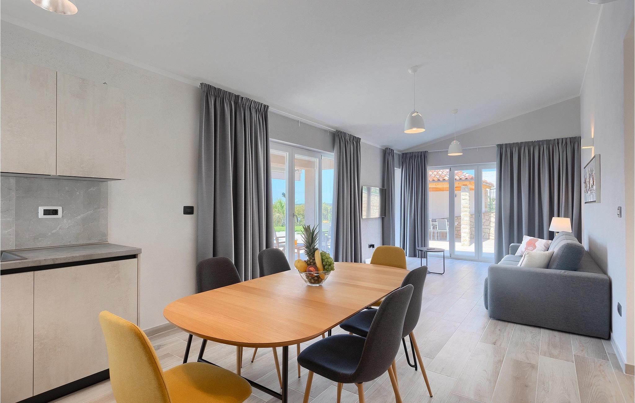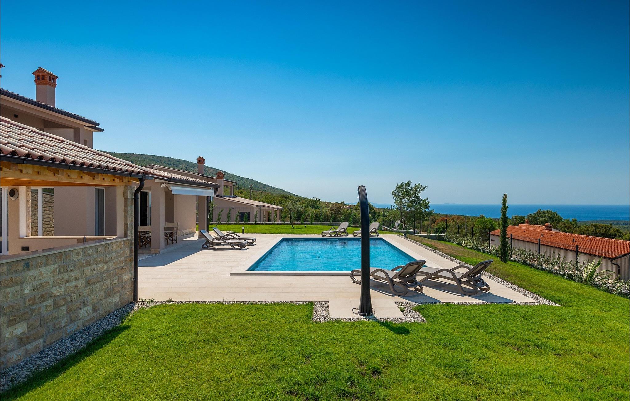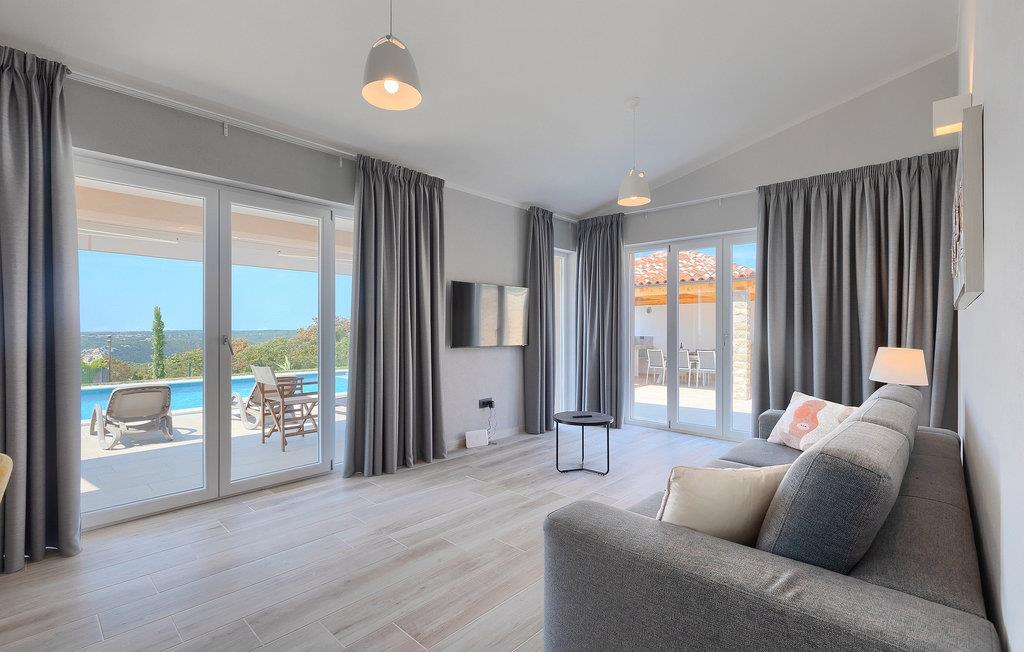 Villa Bay View er en moderne villa, der inviterer dig til at slappe af og slappe af med sine nøje udvalgte møbler og rummelighed. Mens du drikker en kop kaffe på terrassen om morgenen, kan du nyde den storslåede panoramaudsigt fra terrassen, som når ud til havet. Mens du nyder udsigten, kan dine kære undslippe sommervarmen i poolen eller slappe af på liggestolene ved poolen. På den ydre del af den overdækkede terrasse, et udendørs bord og en grill inviterer dig til at tilberede istriske delikatesser. Villaen er omgivet af en smuk grøn græsplæne, der sammen med panoramaudsigten over havet byder på en unik naturoplevelse. Fra udendørsområdet kommer du ind i villaens indre, hvor du straks finder en moderne stue med fuldt udstyret køkken og spisestue, 2 komfortable soveværelser og 2 badeværelser. Indenfor er lejlighederne ikke forbundet med en trappe, men man kommer ind i lejligheden udefra, og niveauerne, som indgangene er placeret på, er kun få skridt væk. På villaens 1. sal er der en ekstra stue, der gør rummet unikt med sit design, en spisestue og et moderne køkken, 2 soveværelser med ensuite badeværelser og et toilet. Book Bay View Villa og sikre dig din drømmeferie!