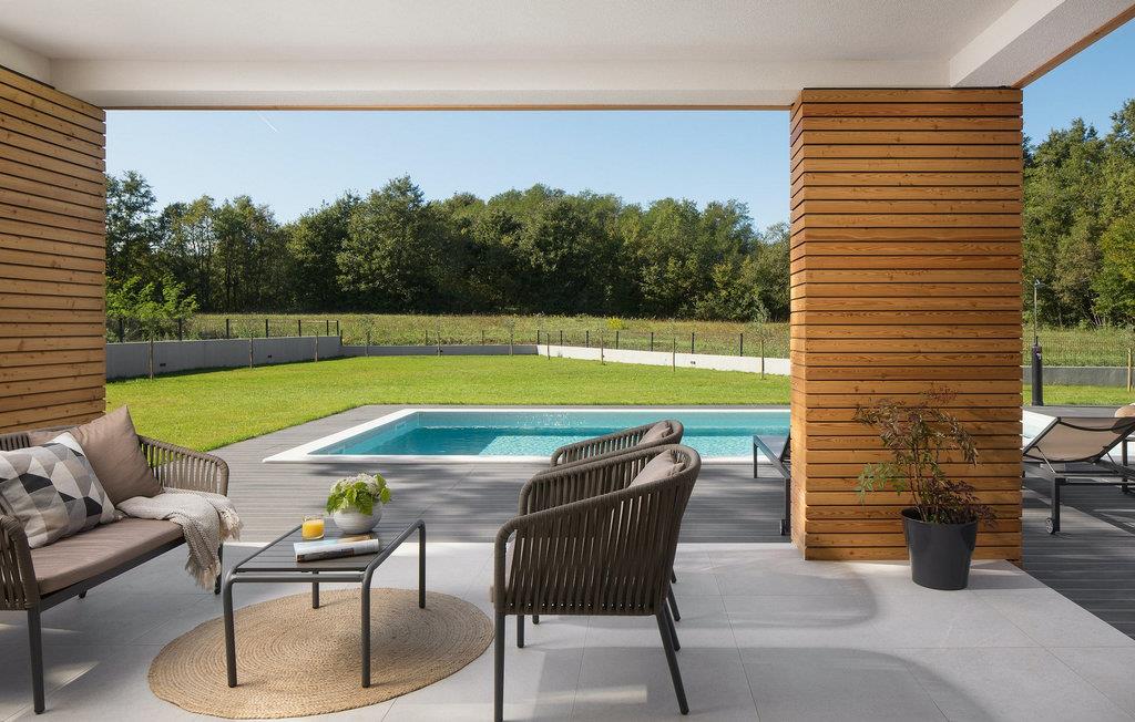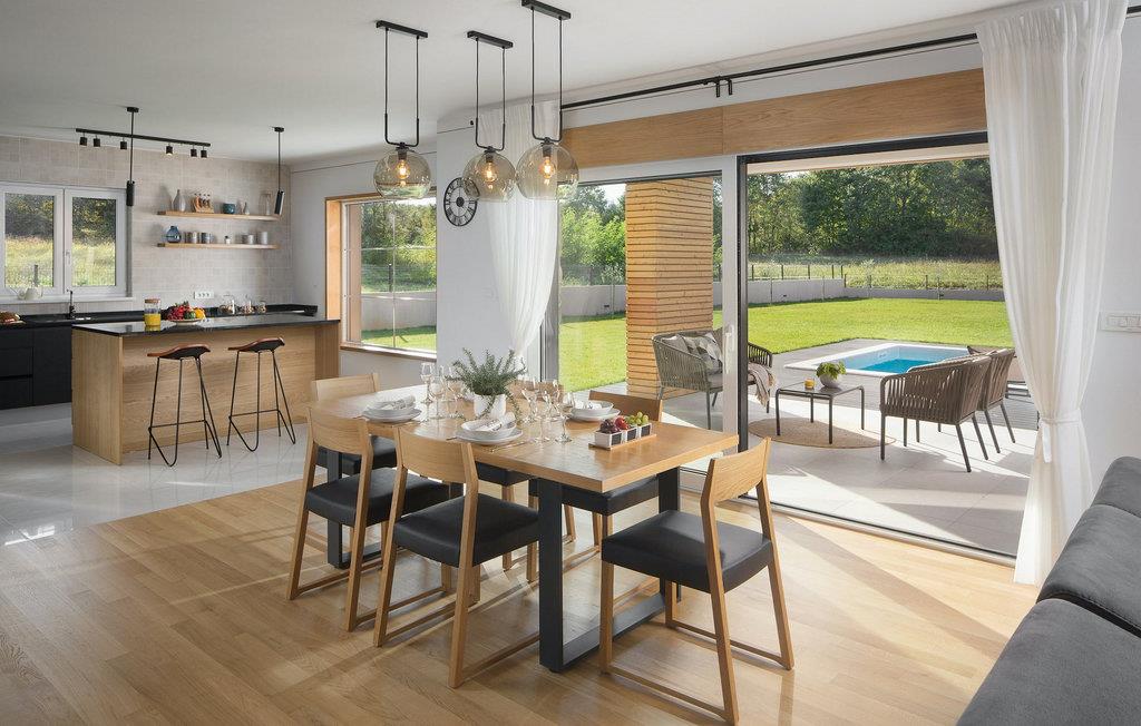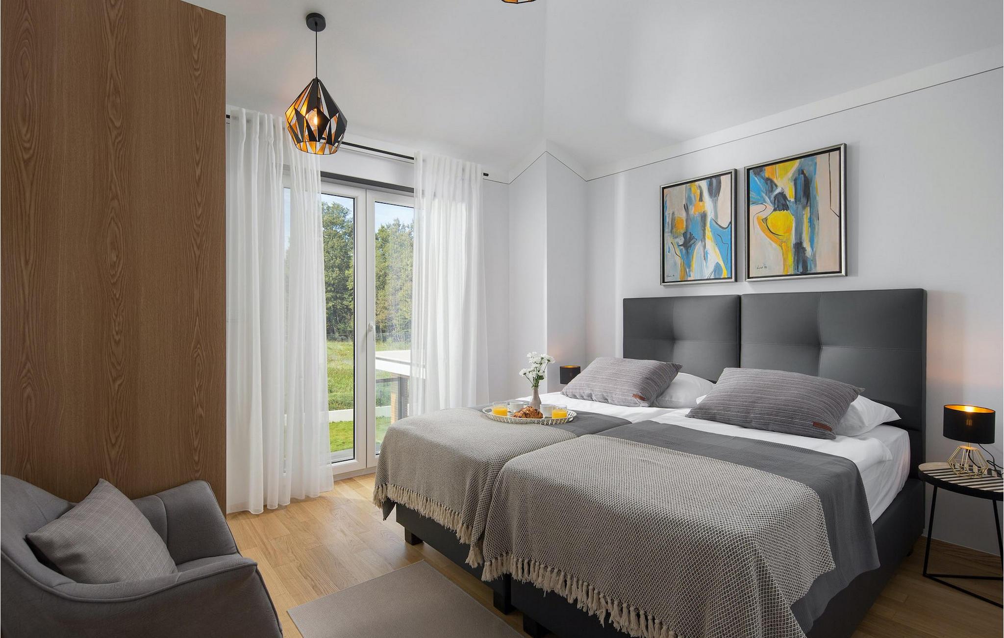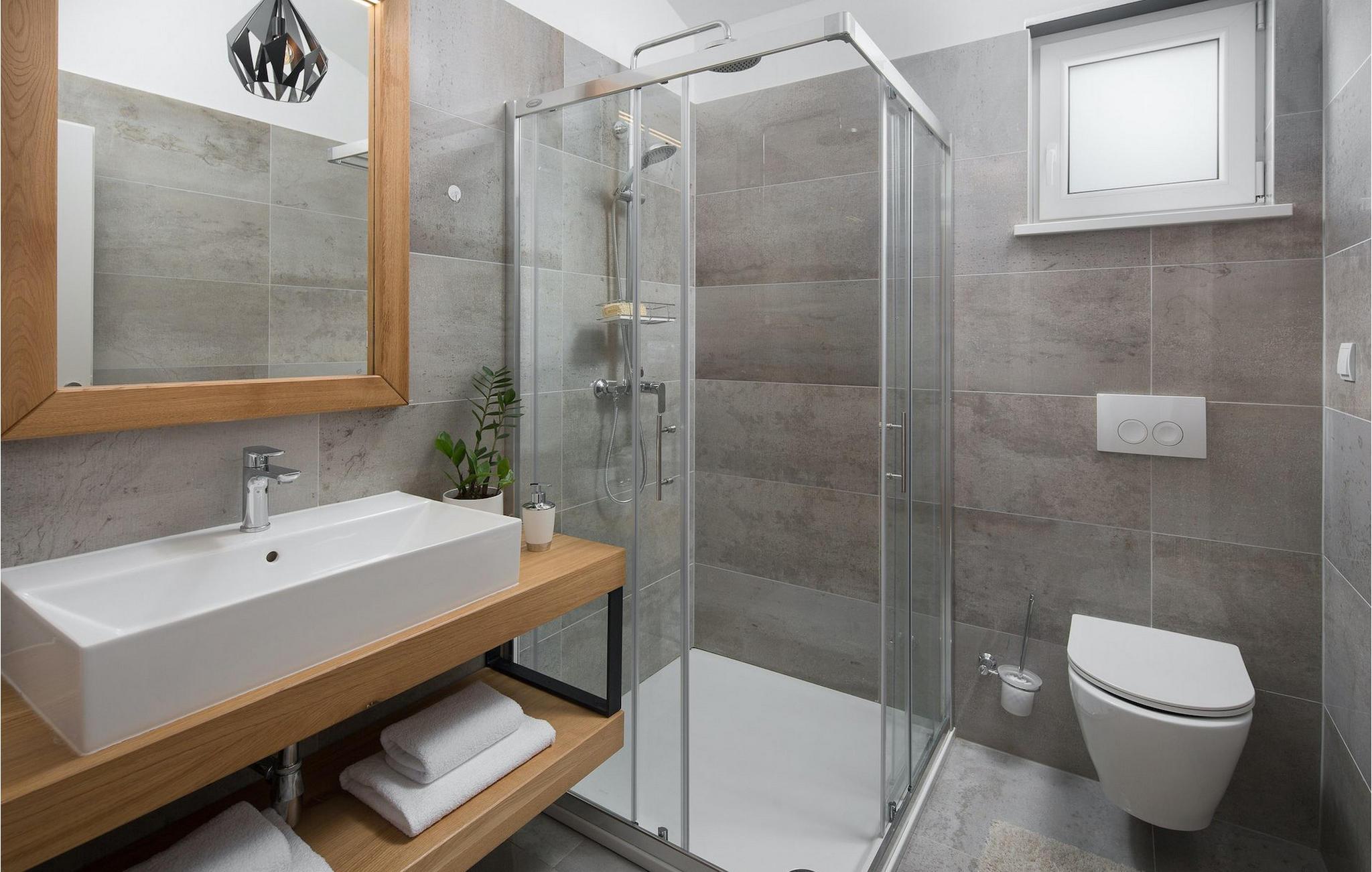 Drømmer du om en afslappet ferie i en skøn, moderne villa med privat pool i Istrien? Villa Analucija II venter på dig! I stueetagen finder du fællesrummene, hvor I kan samles og tilbringe en masse tid sammen, mens de 3 soveværelser ligger på første sal, og de tilbyder overnatning for op til 6 gæster. Når du træder ind i villaen, kommer du til det rummelige, meget stilfulde værelse, som forbinder stue og spisestue med det fuldt udstyrede køkken i et åbent koncept. Herfra kan du nyde udsigten over den indbydende pool og lige udenfor finder du en overdækket veranda med havemøbler, ideel til morgenmad. Det adskilte objekt ved siden af villaen er det smukke, veludstyrede sommerkøkken med underholdningsrummet. Slap af ved poolen eller tilbered grillretter til venner og familie. På første sal finder du komfortable soveværelser i lyse farvetoner, med moderne malerier på væggene, som vækker rummet endnu mere. Hvert soveværelse råder over et tv, aircondition og eget badeværelse. Det ene soveværelse har udgang til den store altan. Den første strand ligger kun 7 km væk, men den opvarmede pool byder også på en god forfriskning, mens du også kan hvile dig på en af de mange liggestole eller bare solbade.Villa Analucija II ligger i landsbyen Krsan, midt i byen. smukt bakket landskab og uberørt natur, ideel til vandre- eller cykelture. Udforsk baglandet og prøv Istriens specialiteter som trøfler, prosciutto eller tag bare et godt glas istrisk Malvazija på en tur på en af vinruterne. I dette område er der små, men charmerende byer som Labin og Rabac. Den gamle bydel i Labin ligger på den østlige side af halvøen Istrien. Det er et sted rigt på atelier og det ideelle sted at nyde kunst på hvert trin gennem byen. Rabac, en tidligere fiskerby, er stedet, hvor du kan finde gode strande og restauranter. I området Labin-Rabac kan du spille tennis, minigolf, beachvolley, dykke og nyde forskellige vandsportsaktiviteter. Den nærmeste strand ligger kun 7 km væk (Plomin) fra villaen.