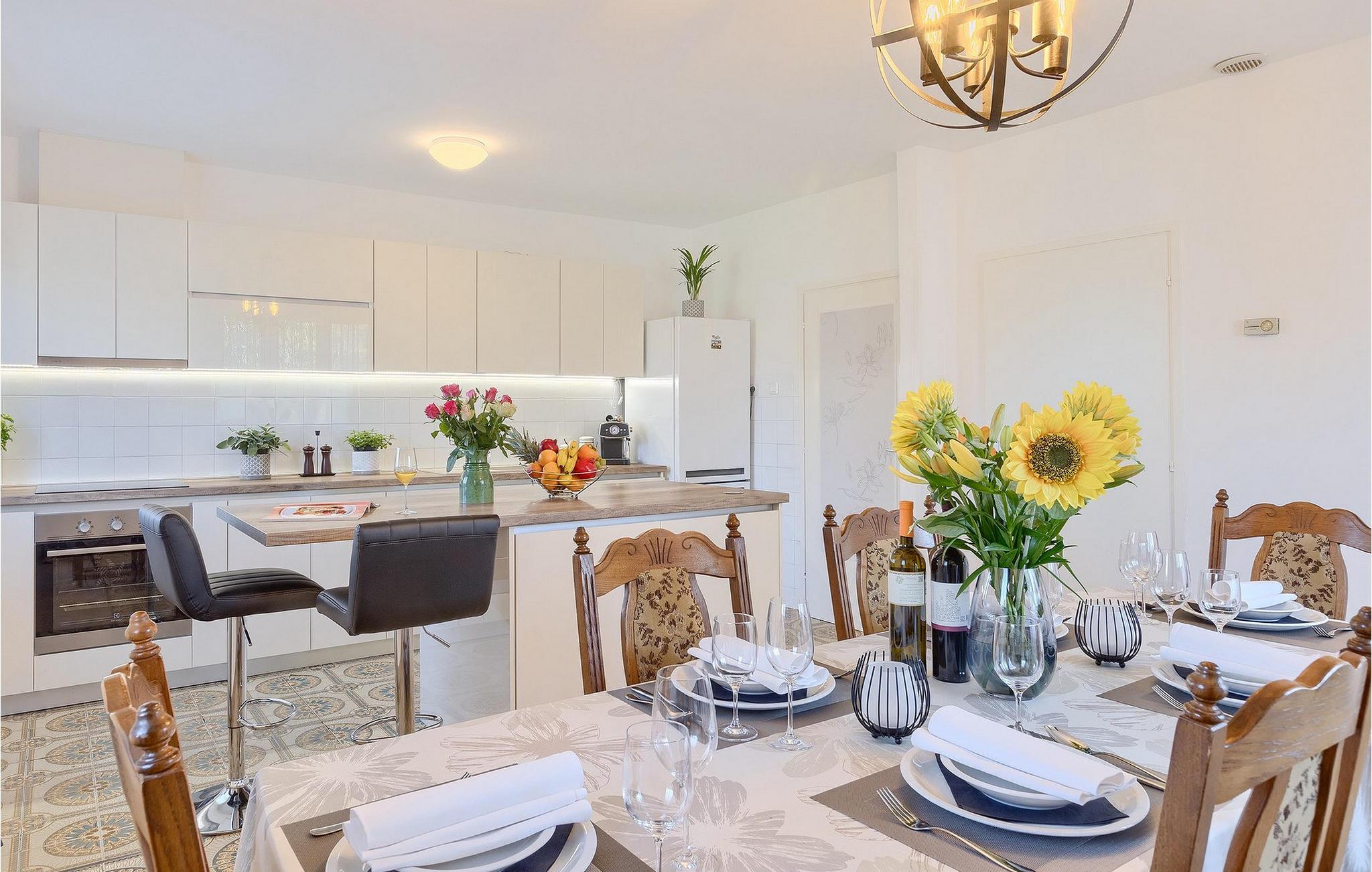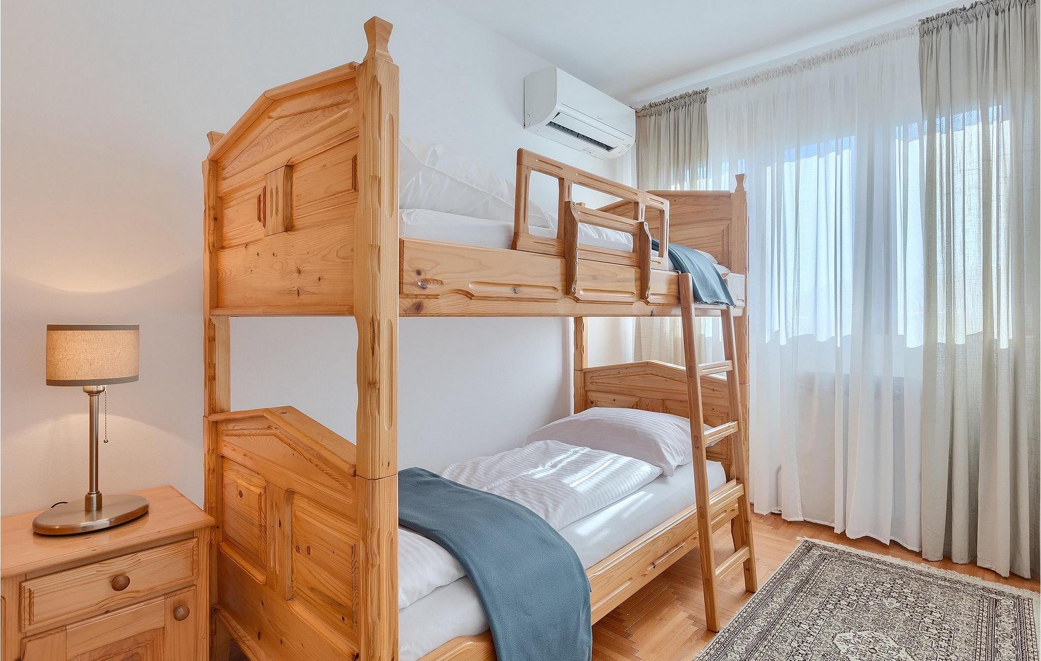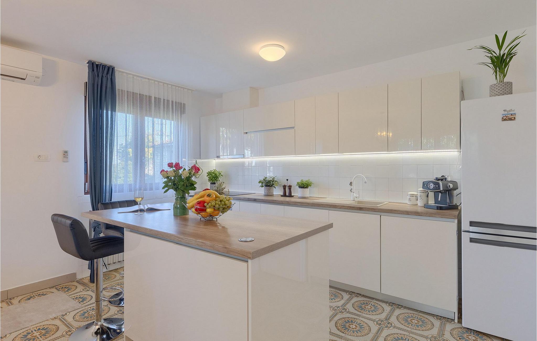 Villa Mandulas interiør emmer af en traditionel istrisk atmosfære. Villaens indendørs område strækker sig over den hævede stueetage, hvor du finder en komfortabel stue og et smukt fuldt udstyret køkken med spiseplads. På samme etage er der to soveværelser med dobbeltsenge og et soveværelse med køjesenge samt to rummelige badeværelser. Men det er ikke alt - der er yderligere to terrasser til din rådighed, hvor du kan nyde en vidunderlig udsigt over den uspolerede natur.