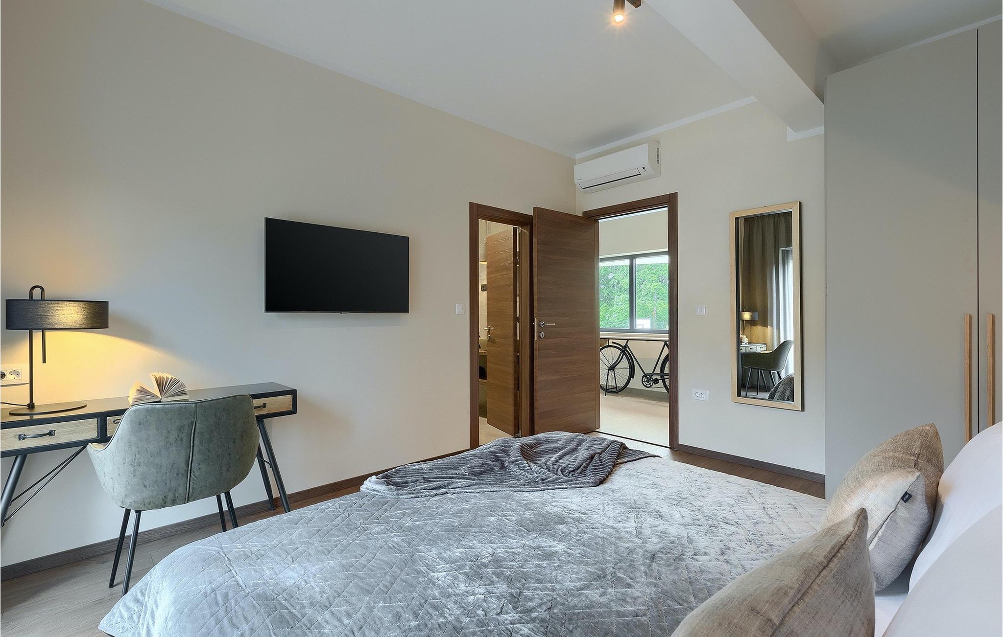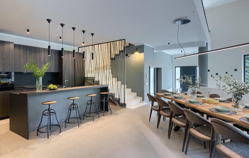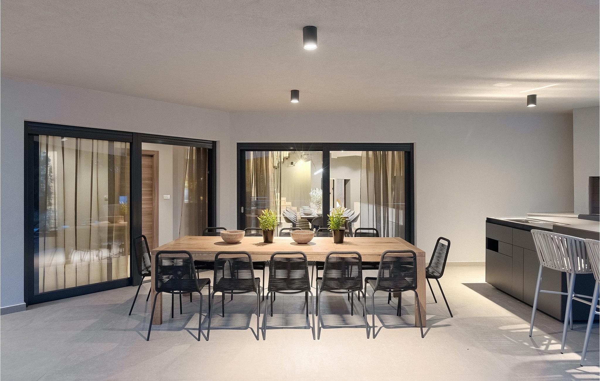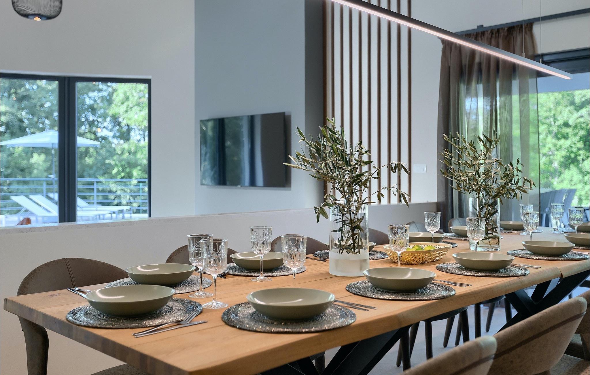 Die fantastische Luxusvilla Viktor Tireli liegt in dem kleinen Ort Krsan, in der Nähe der Stadt Labin. Die Villa ist von einem Wald umgeben, in dem Sie spazieren gehen und die Vorteile dieser ruhigen Lage genießen können. Der Außenbereich ist komplett eingezäunt und bietet Ihnen absolute Privatsphäre. Alles ist in einem sehr familienfreundlichen Stil gehalten, so dass jeder seine eigene Entspannungszone hat. Vor der Villa befindet sich ein 60 m2 großer Pool, in dem Sie sich an warmen Sommertagen erfrischen oder einfach auf den bequemen Sonnenliegen entspannen und die Aussicht auf die Natur genießen können. Für die Jüngsten gibt es einen Kinderspielplatz mit Rutsche, Schaukel, Kletterturm und vielen anderen Einrichtungen. Außerdem stehen Ihnen Fahrräder zur Verfügung, um die weitere Umgebung zu erkunden. Die Terrasse ist der perfekte Ort für ein Familientreffen, wo Sie köstliche Mahlzeiten auf dem Holzkohlegrill zubereiten und im Freien genießen können. Mit einer Gesamtwohnfläche von 526 Quadratmetern bietet die Villa Platz für bis zu 14 Personen und eine liebevolle Inneneinrichtung. Das Erdgeschoss besteht aus einem Wohnbereich, einer modernen und voll ausgestatteten Küche, einem Essbereich, einem Gäste-WC und 5 Schlafzimmern. Im Obergeschoss befinden sich neben dem Wohnbereich mit TV und Playstation 4 auch zwei weitere Schlafzimmer. Alle Schlafzimmer verfügen über ein Doppelbett, Klimaanlage, TV und ein eigenes Bad mit Dusche. Diese einzigartige Villa ist für Familien und Gruppen geeignet, also verpassen Sie diese Gelegenheit nicht und buchen Sie Ihren Traumurlaub gleich jetzt!Dieses Anwesen befindet sich in einem kleinen Weiler im östlichen Teil Istriens. Die ganze Regon Istrien ist leicht erreichbar und verfügt über ein ausgezeichnetes, verkehrsarmes Straßennetz. Sie werden zweifellos von der Tatsache, dass der nächste Strand nur 5 km entfernt ist, begeistert sein, da die istrische Halbinsel „Terra Magic” an der warmen Adria liegt. Die Küste mit den großen Touristenzentren Labin und Rabac, sowie der Flughafen Pula sind nur wenige Autominuten entfernt. Auf seinem Hügel oberhalb der magischen Kvarner-Küste thronend, ist Labin das historische und administrative Zentrum Ostistriens. Das Gebiet ist ein Paradies für Kunst- und Geschichtsfreunde mit seinem reichen kulturellen und architektonischen Erbe. Die steilen, gewundenen Gässchen der Altstadt bieten gut erhaltene historische Paläste, zahlreiche Kunstgalerien und –studios, sowie verschiedene Festivals der Jazz- und klassischen Musik in den Sommermonaten. Die Stadt verfügt über einige hervorragende Fischrestaurants, mit köstlichen lokalen Produkten, sowie gemütliche Cafés, wo Sie die entspannte Atmosphäre genießen können. Der Küstenort von Labin ist Rabac, ehemaliges Fischerdorf, heute ein beliebtes Touristenziel, umgeben von einer Vielfalt an traumhaften Kiesstränden.