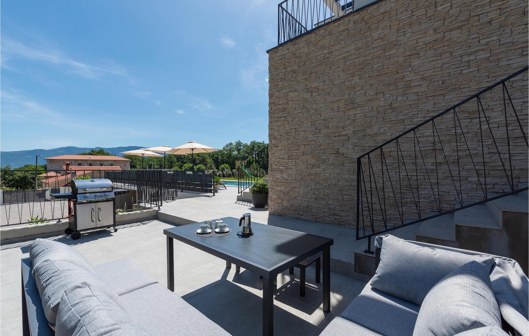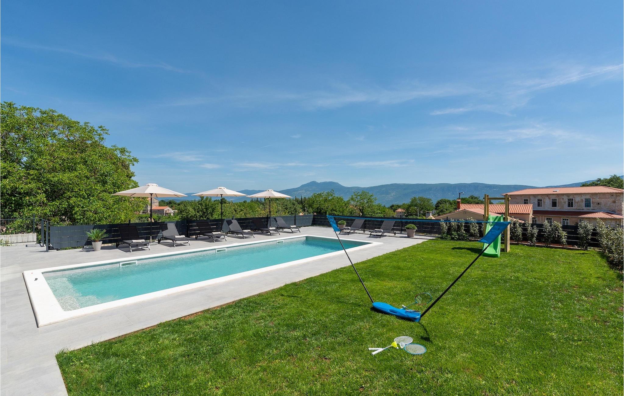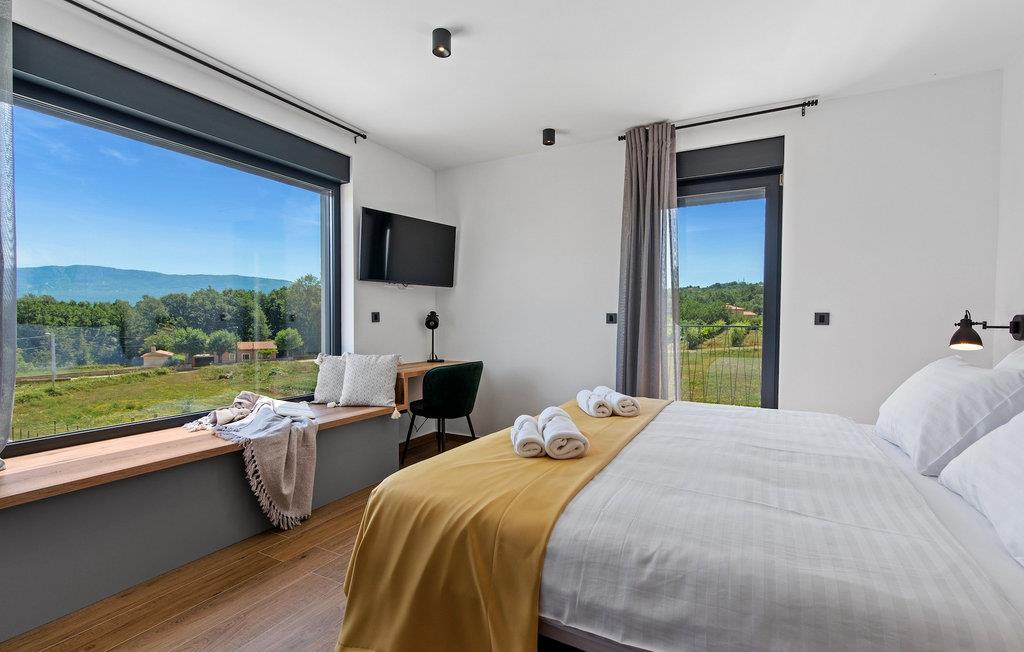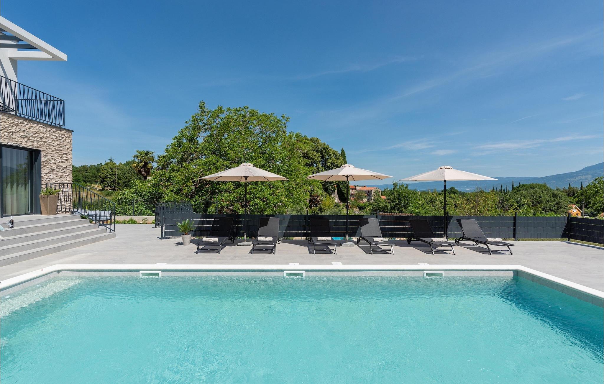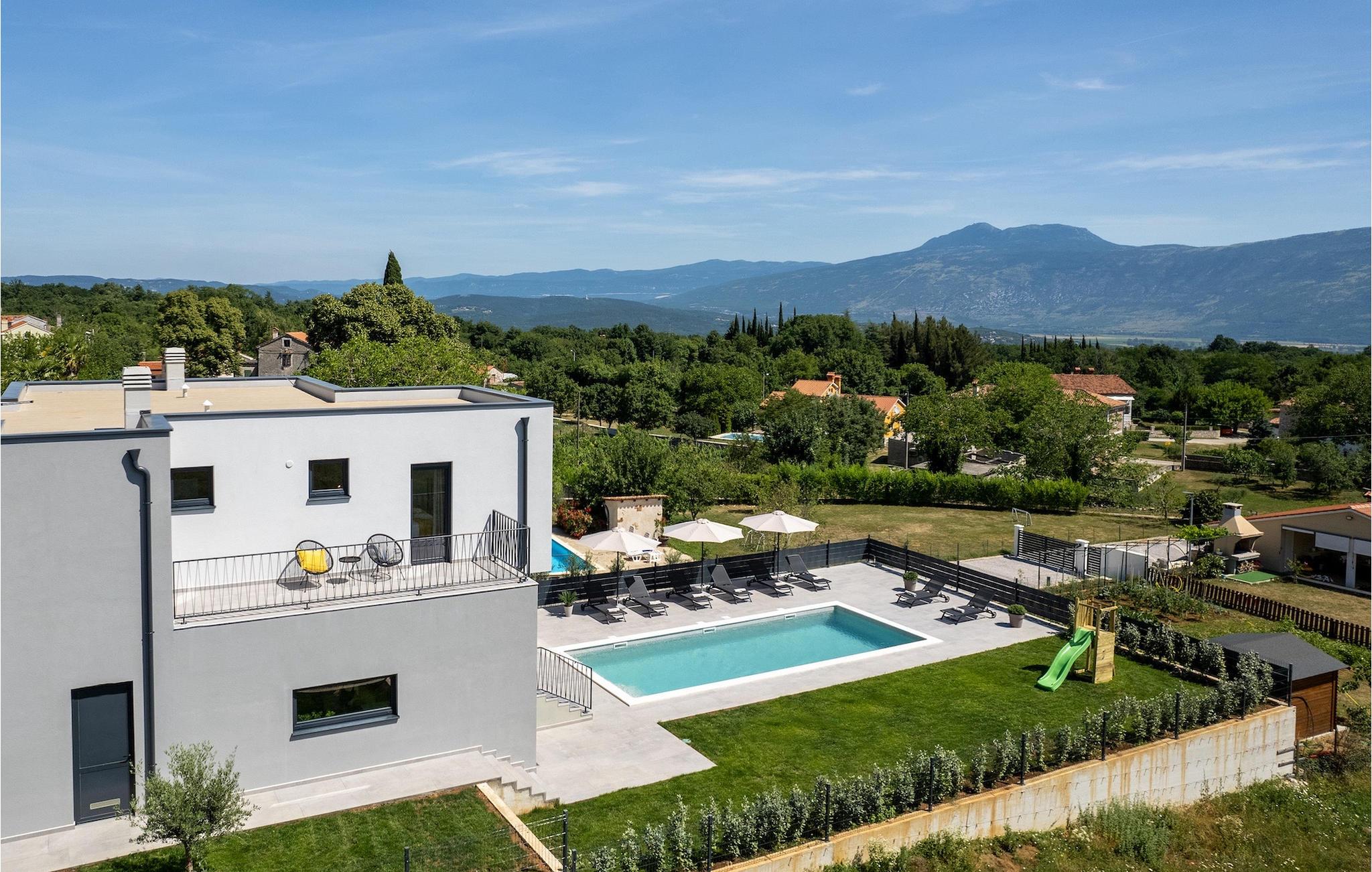 Villa Ani Krsan det perfekte valg til en afslappende familieferie! Det ligger idyllisk tæt på kystbyen Rabac. Villaen kan rumme i alt otte gæster fordelt på fire soveværelser. Ønsker du at holde din ferie i solen, finder du i villaens have en indbydende pool med liggestole, hvor du kan slappe af med en forfriskende drink. Til din rådighed er en grill og en overdækket terrasse med spiseplads - det perfekte sted at samles med familien. Brug grillen til at vise dine grillfærdigheder og forkæle dine kære. Når du kommer ind i villaens indre fra terrassen, finder du en åben, smagfuldt indrettet opholdsstue med spisebord og fuldt udstyret køkken. Alt ser meget moderne og alligevel hjemligt ud. På første sal er der også et soveværelse og et separat toilet. På anden sal er der 3 komfortable soveværelser, hver med eget badeværelse og 2 altaner, hvorfra du kan nyde en vidunderlig udsigt over det maleriske landskab. Book Villa Ani Krsan og tilbring en uforglemmelig ferie i det solrige Istrien. For gæster, der ønsker at tilbringe en aktiv ferie, er Villa Ani Krsan et ideelt udgangspunkt for cykling og vandreture. Selvom villaen ligger i et roligt område, ligger de første strande kun 10 km væk og ligger i Plomin. Kun en kort køretur væk ligger Rabac, engang en lille fiskerby, som er blevet et velkendt turistmål på grund af sin smukke bugt og omgivelser. Rabac tilbyder et udvalg af restauranter, caféer og butikker. Du vil blive forbløffet over det krystalblå Adriaterhav og stenstrande. Hvis du vil udforske Istrien, så besøg Pula, en smuk turistby ved kysten, udsmykket med en rig historie og kulturarv.