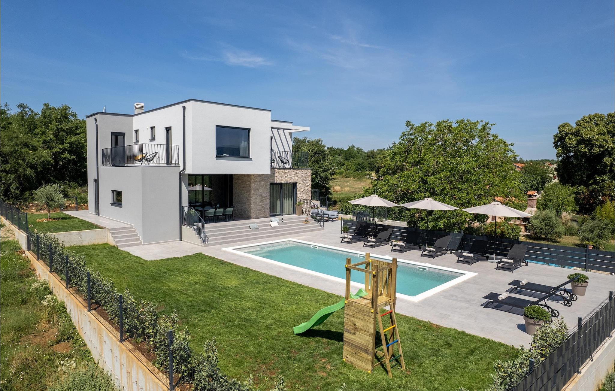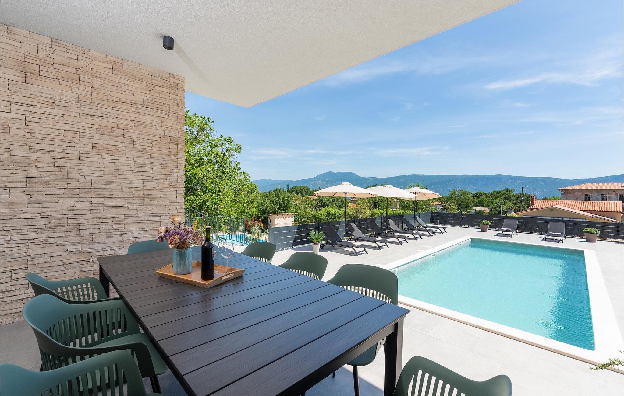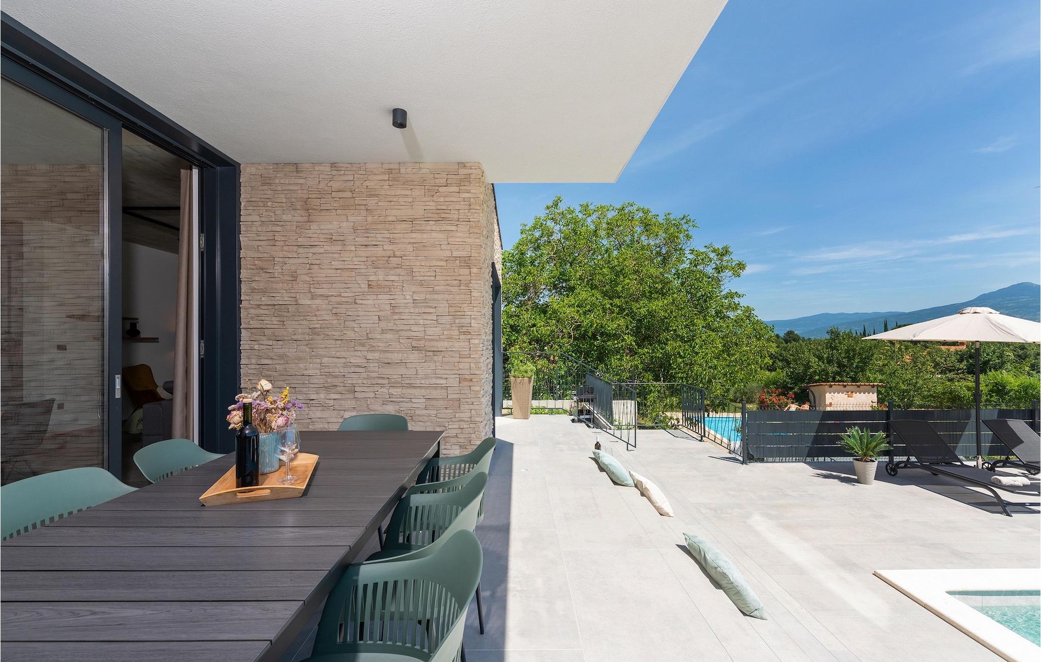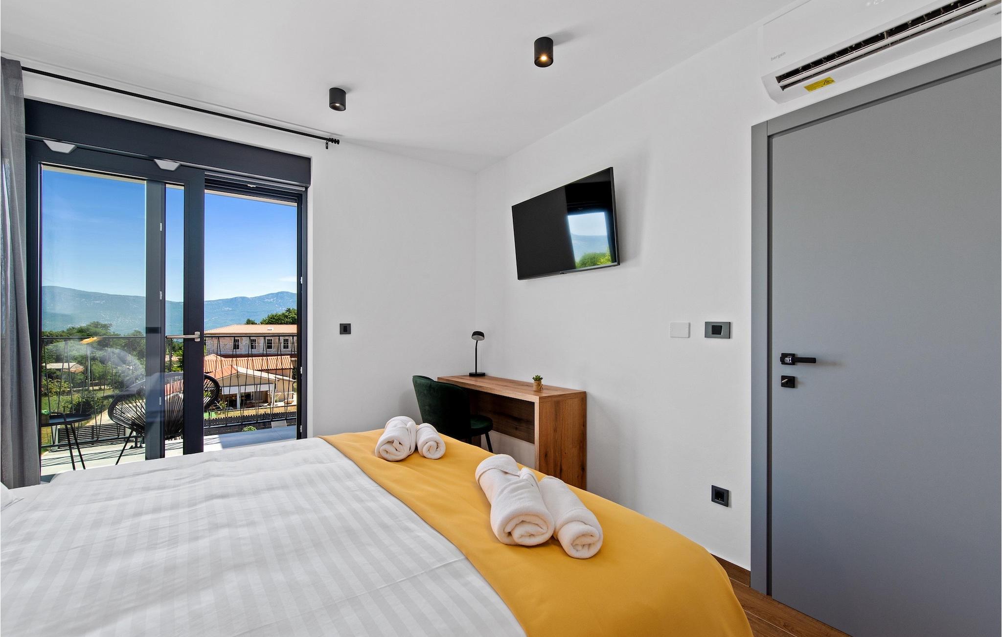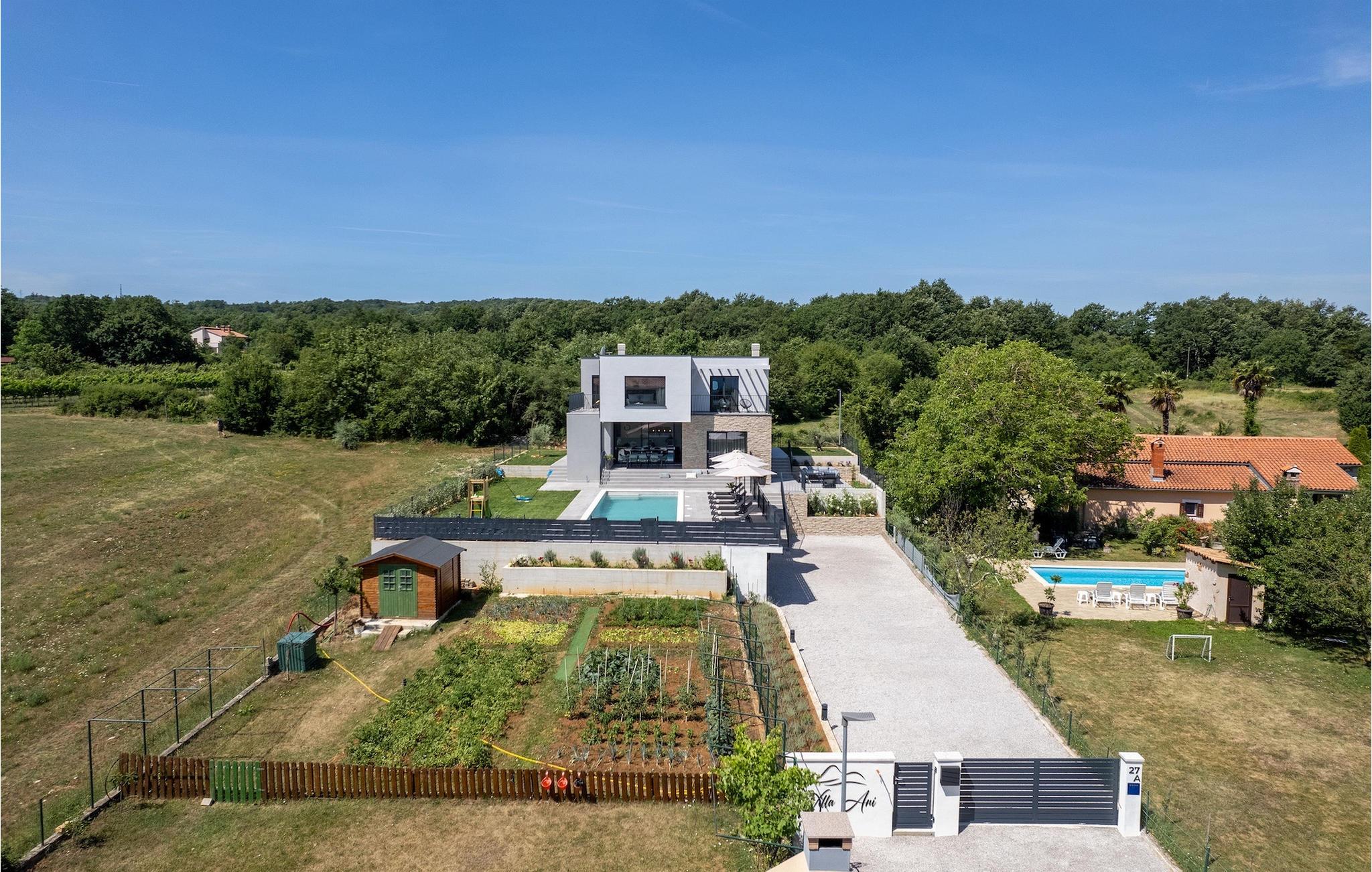 Villa Ani Krsan det perfekte valg til en afslappende familieferie! Det ligger idyllisk tæt på kystbyen Rabac. Villaen kan rumme i alt otte gæster fordelt på fire soveværelser. Ønsker du at holde din ferie i solen, finder du i villaens have en indbydende pool med liggestole, hvor du kan slappe af med en forfriskende drink. Til din rådighed er en grill og en overdækket terrasse med spiseplads - det perfekte sted at samles med familien. Brug grillen til at vise dine grillfærdigheder og forkæle dine kære. Når du kommer ind i villaens indre fra terrassen, finder du en åben, smagfuldt indrettet opholdsstue med spisebord og fuldt udstyret køkken. Alt ser meget moderne og alligevel hjemligt ud. På første sal er der også et soveværelse og et separat toilet. På anden sal er der 3 komfortable soveværelser, hver med eget badeværelse og 2 altaner, hvorfra du kan nyde en vidunderlig udsigt over det maleriske landskab. Book Villa Ani Krsan og tilbring en uforglemmelig ferie i det solrige Istrien. For gæster, der ønsker at tilbringe en aktiv ferie, er Villa Ani Krsan et ideelt udgangspunkt for cykling og vandreture. Selvom villaen ligger i et roligt område, ligger de første strande kun 10 km væk og ligger i Plomin. Kun en kort køretur væk ligger Rabac, engang en lille fiskerby, som er blevet et velkendt turistmål på grund af sin smukke bugt og omgivelser. Rabac tilbyder et udvalg af restauranter, caféer og butikker. Du vil blive forbløffet over det krystalblå Adriaterhav og stenstrande. Hvis du vil udforske Istrien, så besøg Pula, en smuk turistby ved kysten, udsmykket med en rig historie og kulturarv.