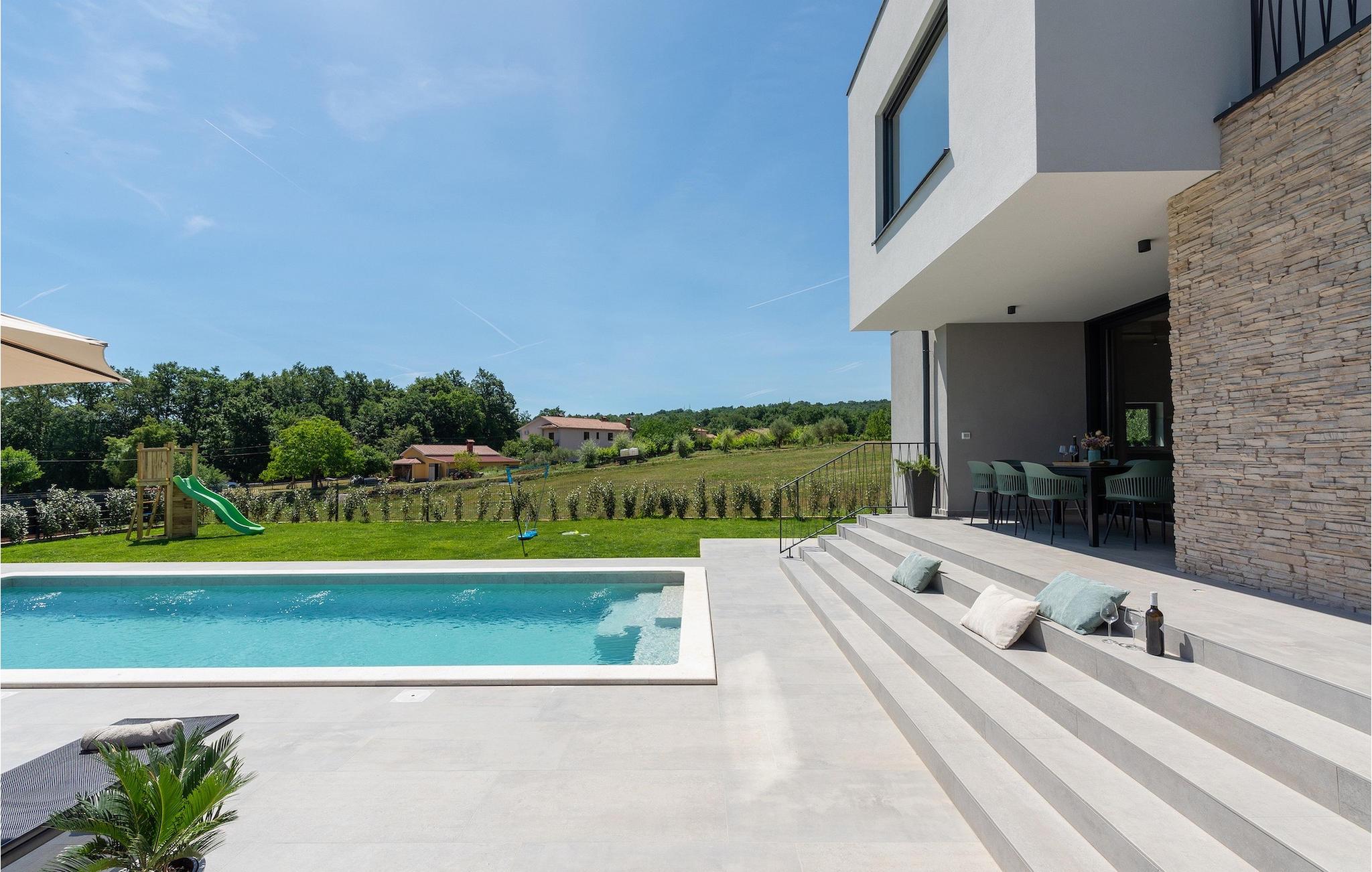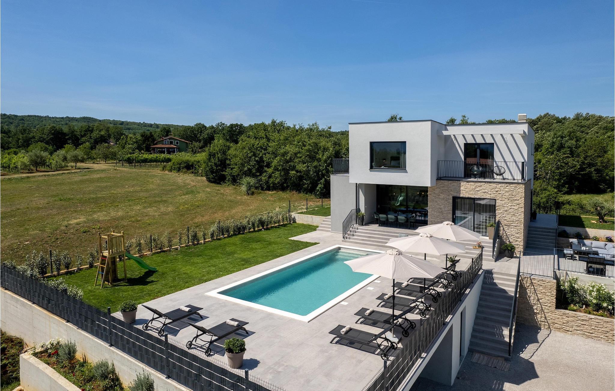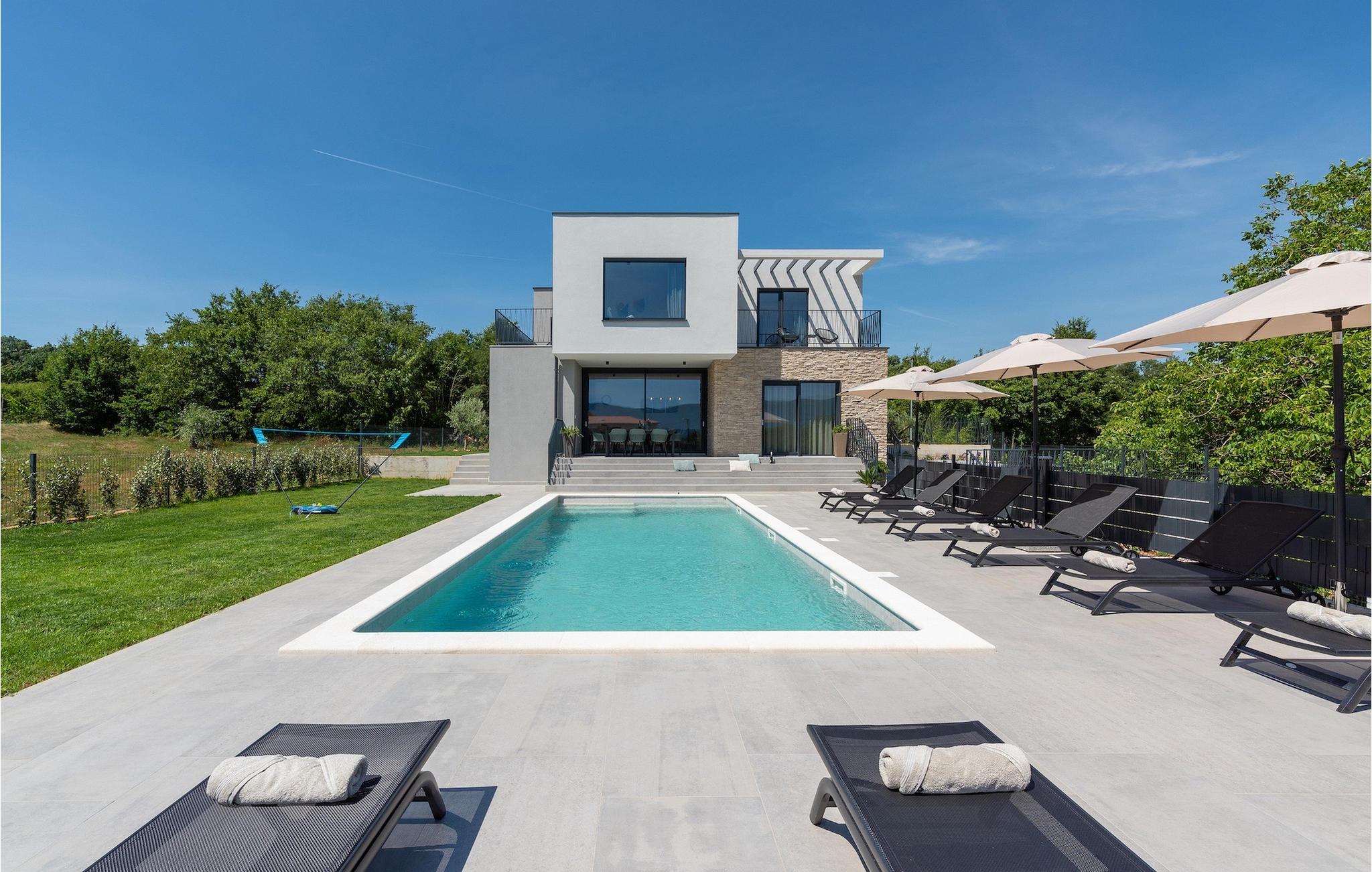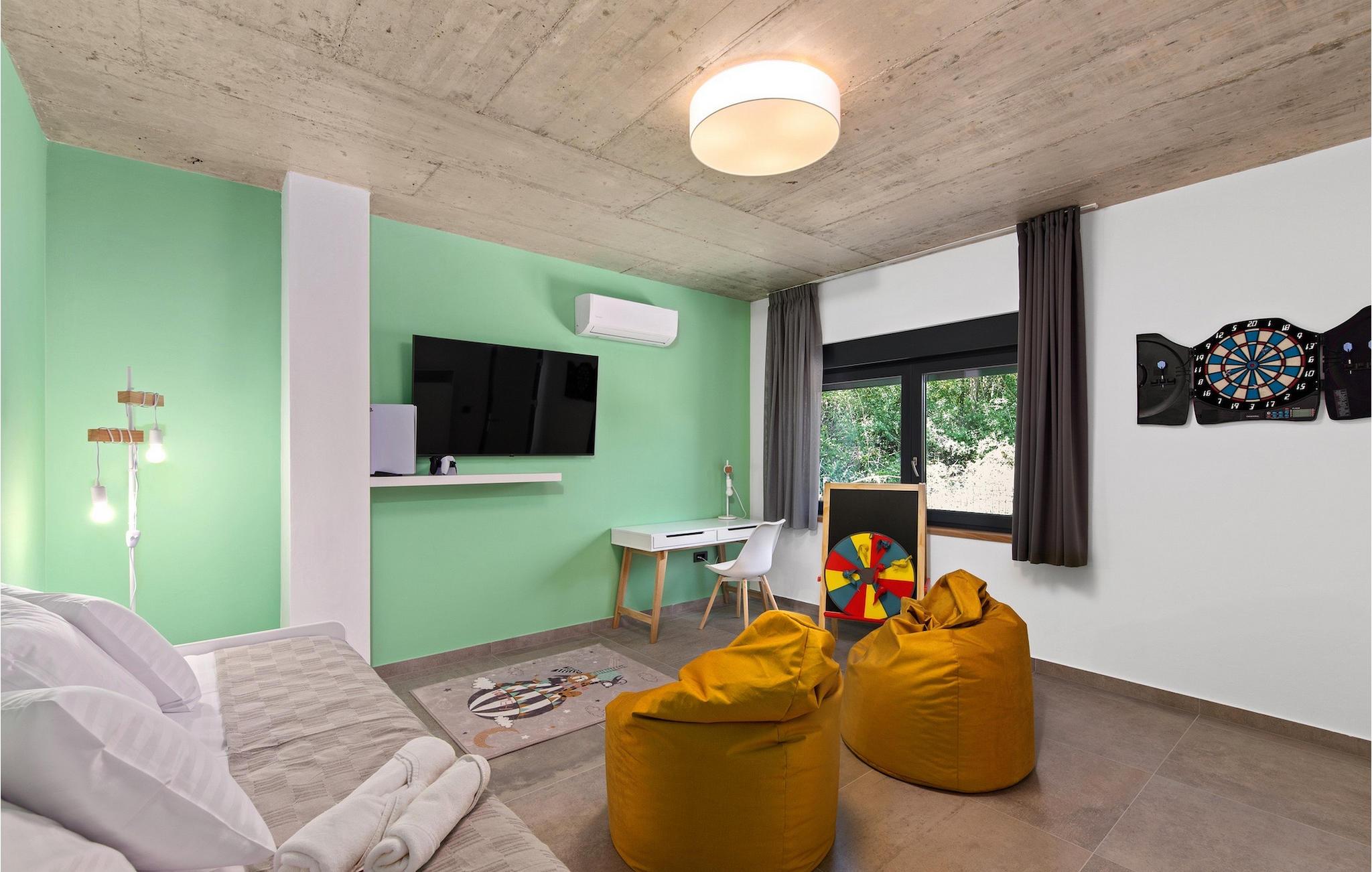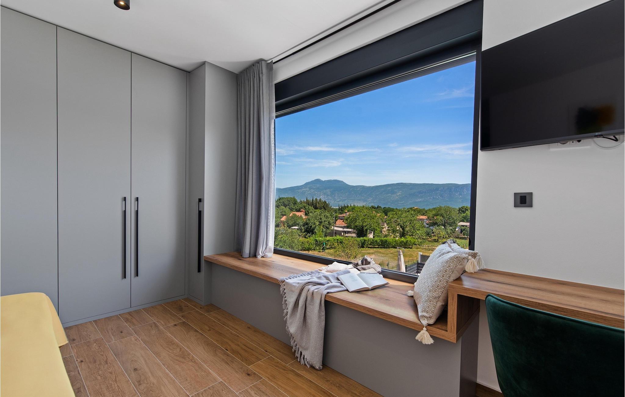 Villa Ani Krsan det perfekte valg til en afslappende familieferie! Det ligger idyllisk tæt på kystbyen Rabac. Villaen kan rumme i alt otte gæster fordelt på fire soveværelser. Ønsker du at holde din ferie i solen, finder du i villaens have en indbydende pool med liggestole, hvor du kan slappe af med en forfriskende drink. Til din rådighed er en grill og en overdækket terrasse med spiseplads - det perfekte sted at samles med familien. Brug grillen til at vise dine grillfærdigheder og forkæle dine kære. Når du kommer ind i villaens indre fra terrassen, finder du en åben, smagfuldt indrettet opholdsstue med spisebord og fuldt udstyret køkken. Alt ser meget moderne og alligevel hjemligt ud. På første sal er der også et soveværelse og et separat toilet. På anden sal er der 3 komfortable soveværelser, hver med eget badeværelse og 2 altaner, hvorfra du kan nyde en vidunderlig udsigt over det maleriske landskab. Book Villa Ani Krsan og tilbring en uforglemmelig ferie i det solrige Istrien. For gæster, der ønsker at tilbringe en aktiv ferie, er Villa Ani Krsan et ideelt udgangspunkt for cykling og vandreture. Selvom villaen ligger i et roligt område, ligger de første strande kun 10 km væk og ligger i Plomin. Kun en kort køretur væk ligger Rabac, engang en lille fiskerby, som er blevet et velkendt turistmål på grund af sin smukke bugt og omgivelser. Rabac tilbyder et udvalg af restauranter, caféer og butikker. Du vil blive forbløffet over det krystalblå Adriaterhav og stenstrande. Hvis du vil udforske Istrien, så besøg Pula, en smuk turistby ved kysten, udsmykket med en rig historie og kulturarv.