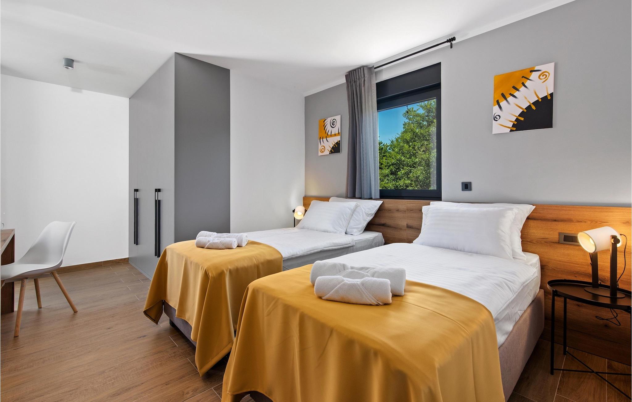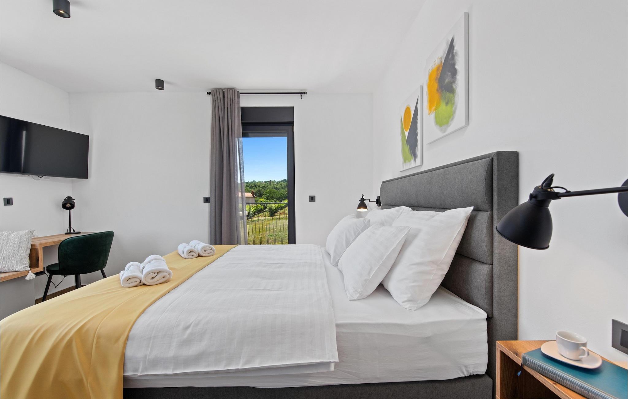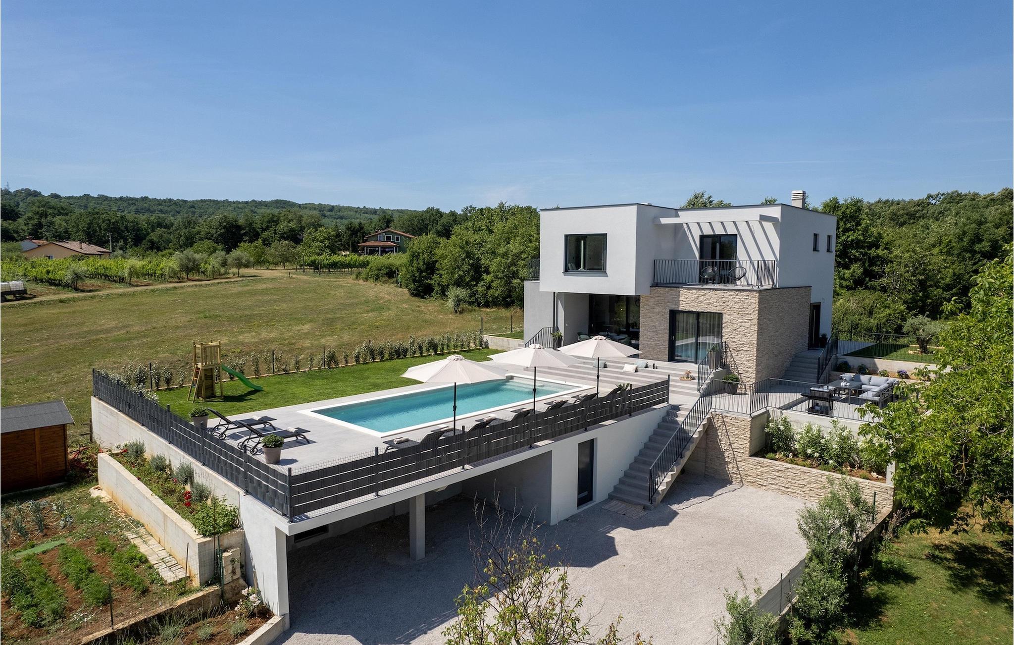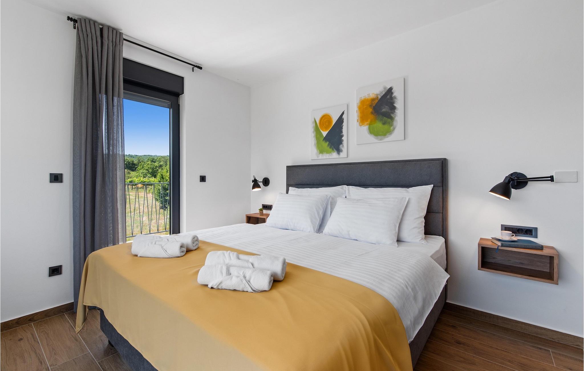 Villa Ani Krsan det perfekte valg til en afslappende familieferie! Det ligger idyllisk tæt på kystbyen Rabac. Villaen kan rumme i alt otte gæster fordelt på fire soveværelser. Ønsker du at holde din ferie i solen, finder du i villaens have en indbydende pool med liggestole, hvor du kan slappe af med en forfriskende drink. Til din rådighed er en grill og en overdækket terrasse med spiseplads - det perfekte sted at samles med familien. Brug grillen til at vise dine grillfærdigheder og forkæle dine kære. Når du kommer ind i villaens indre fra terrassen, finder du en åben, smagfuldt indrettet opholdsstue med spisebord og fuldt udstyret køkken. Alt ser meget moderne og alligevel hjemligt ud. På første sal er der også et soveværelse og et separat toilet. På anden sal er der 3 komfortable soveværelser, hver med eget badeværelse og 2 altaner, hvorfra du kan nyde en vidunderlig udsigt over det maleriske landskab. Book Villa Ani Krsan og tilbring en uforglemmelig ferie i det solrige Istrien. For gæster, der ønsker at tilbringe en aktiv ferie, er Villa Ani Krsan et ideelt udgangspunkt for cykling og vandreture. Selvom villaen ligger i et roligt område, ligger de første strande kun 10 km væk og ligger i Plomin. Kun en kort køretur væk ligger Rabac, engang en lille fiskerby, som er blevet et velkendt turistmål på grund af sin smukke bugt og omgivelser. Rabac tilbyder et udvalg af restauranter, caféer og butikker. Du vil blive forbløffet over det krystalblå Adriaterhav og stenstrande. Hvis du vil udforske Istrien, så besøg Pula, en smuk turistby ved kysten, udsmykket med en rig historie og kulturarv.