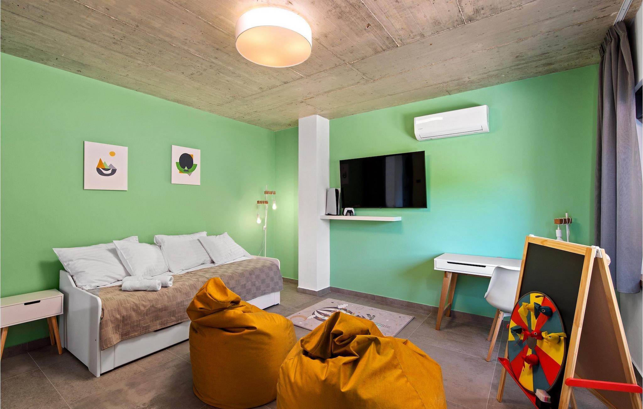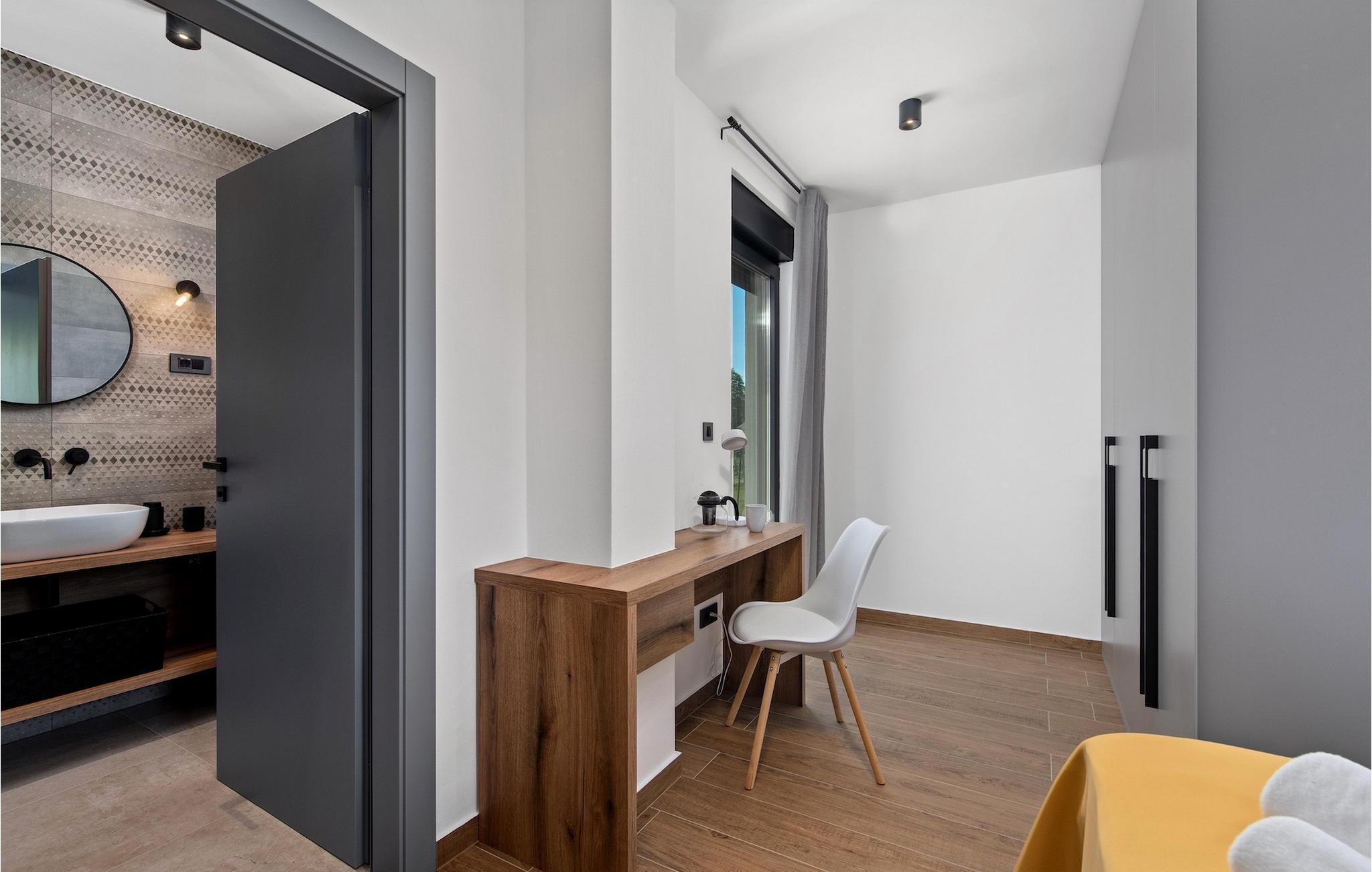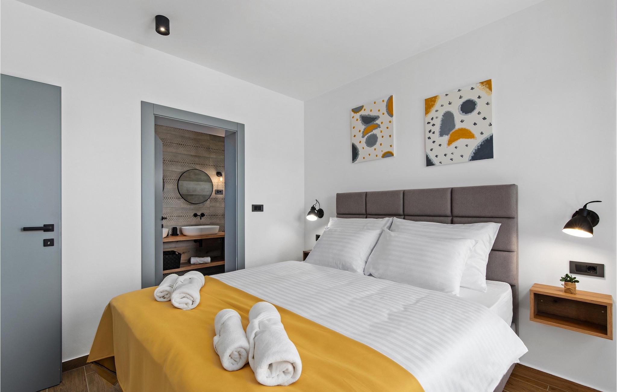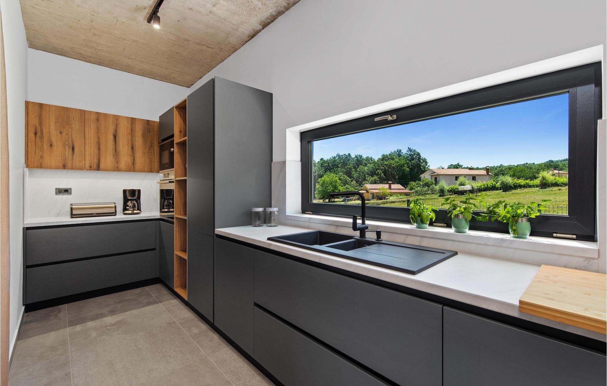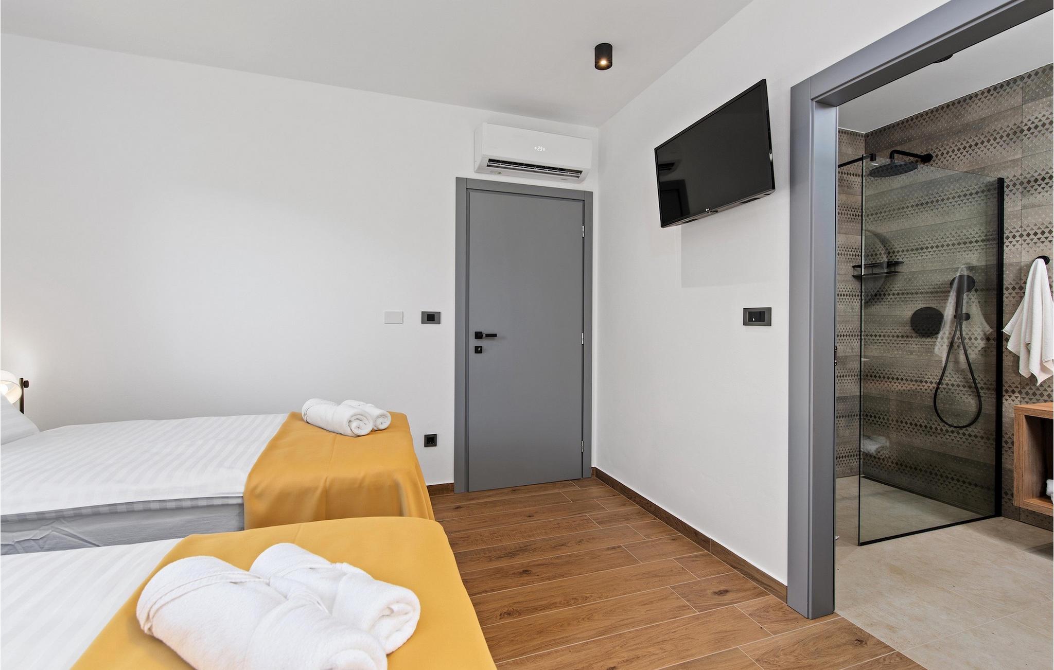 Villa Ani Krsan det perfekte valg til en afslappende familieferie! Det ligger idyllisk tæt på kystbyen Rabac. Villaen kan rumme i alt otte gæster fordelt på fire soveværelser. Ønsker du at holde din ferie i solen, finder du i villaens have en indbydende pool med liggestole, hvor du kan slappe af med en forfriskende drink. Til din rådighed er en grill og en overdækket terrasse med spiseplads - det perfekte sted at samles med familien. Brug grillen til at vise dine grillfærdigheder og forkæle dine kære. Når du kommer ind i villaens indre fra terrassen, finder du en åben, smagfuldt indrettet opholdsstue med spisebord og fuldt udstyret køkken. Alt ser meget moderne og alligevel hjemligt ud. På første sal er der også et soveværelse og et separat toilet. På anden sal er der 3 komfortable soveværelser, hver med eget badeværelse og 2 altaner, hvorfra du kan nyde en vidunderlig udsigt over det maleriske landskab. Book Villa Ani Krsan og tilbring en uforglemmelig ferie i det solrige Istrien. For gæster, der ønsker at tilbringe en aktiv ferie, er Villa Ani Krsan et ideelt udgangspunkt for cykling og vandreture. Selvom villaen ligger i et roligt område, ligger de første strande kun 10 km væk og ligger i Plomin. Kun en kort køretur væk ligger Rabac, engang en lille fiskerby, som er blevet et velkendt turistmål på grund af sin smukke bugt og omgivelser. Rabac tilbyder et udvalg af restauranter, caféer og butikker. Du vil blive forbløffet over det krystalblå Adriaterhav og stenstrande. Hvis du vil udforske Istrien, så besøg Pula, en smuk turistby ved kysten, udsmykket med en rig historie og kulturarv.