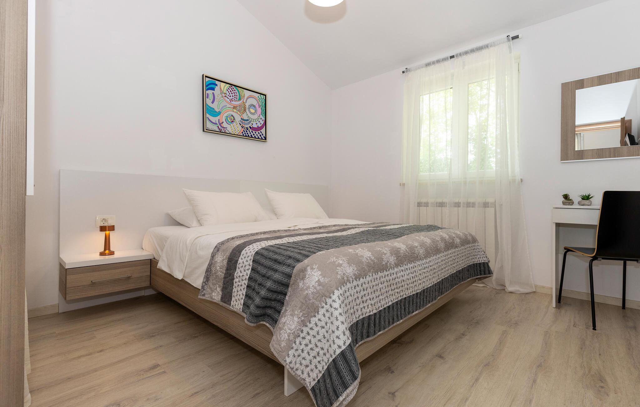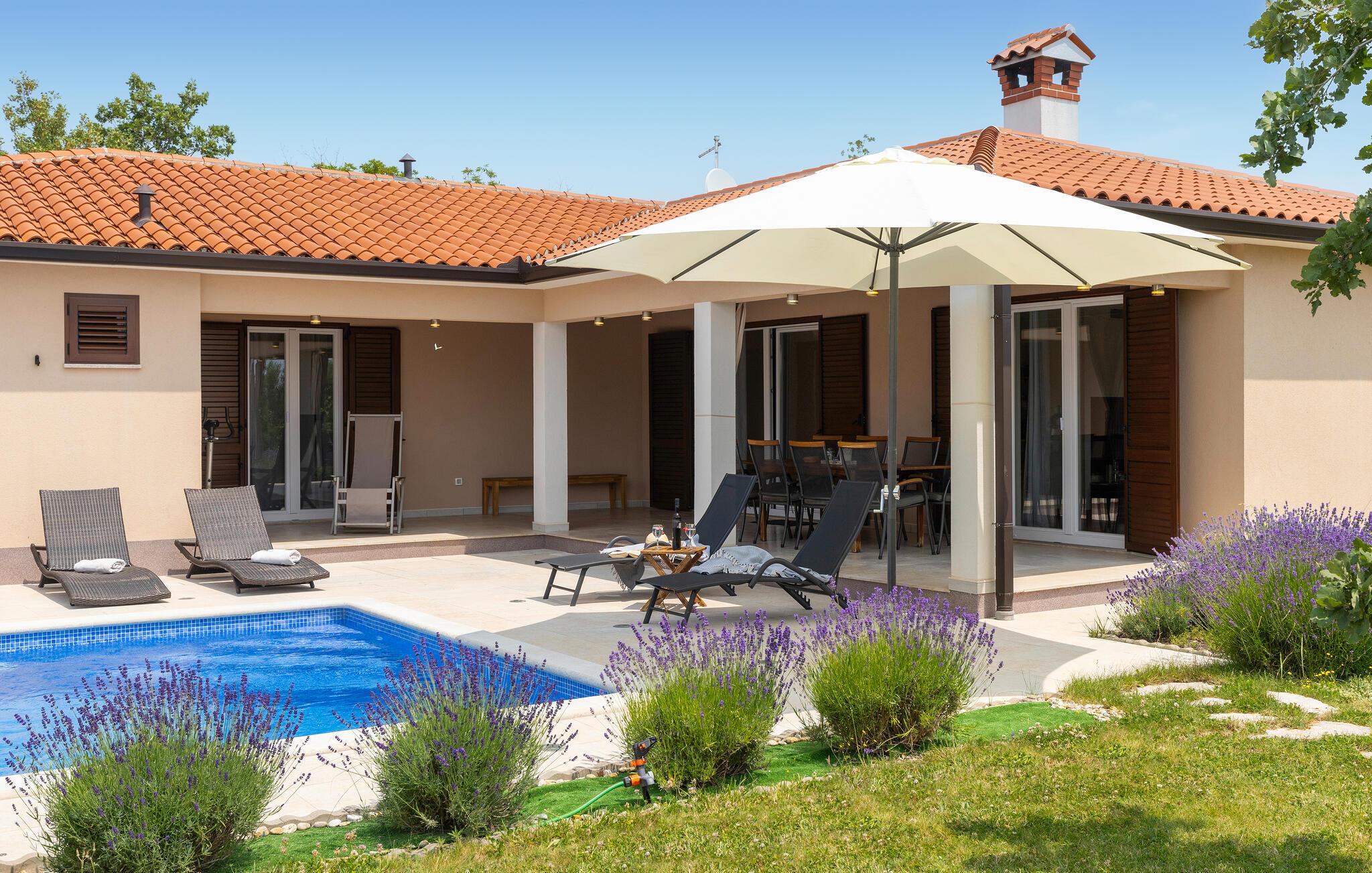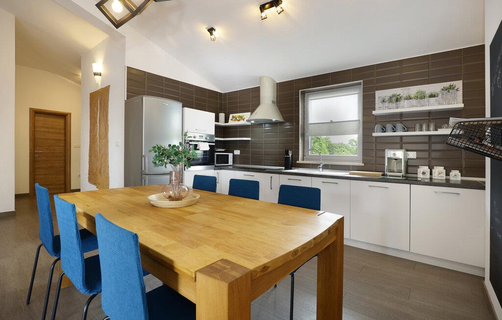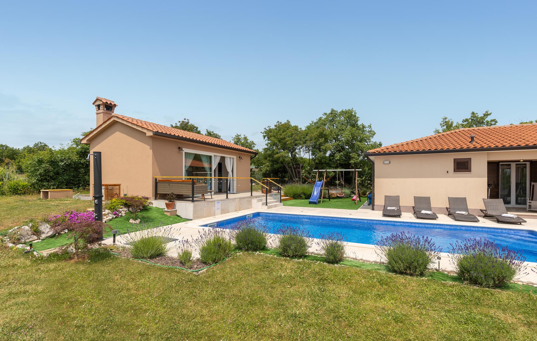 I den lille landsby Kunj, kun ca. 6 km meter fra byen Labin og østkysten, med vidunderlige strande, ligger dette feriehus med pool. Komfortabelt indrettede rum, der alle ligger i stueplan, giver mulighed for et behageligt og afslappet ferieophold. Udendørs swimmingpool og en overdækket terrasse, giver mulighed for dejlige fælles timer udendørs. Tag på udflugt på halvøen og besøg de mange skønne byer, fx Labin, Porec og Rovinj, hvor der er mange former for sommerunderholdning. I kan også smutte en tur til Rabac, hvorfra der sejler mange udflugtsbåde og se Istriens kyster fra vandsiden. Vi gør opmærksom på at den sidste del af vejen op til huset er en grusvej.