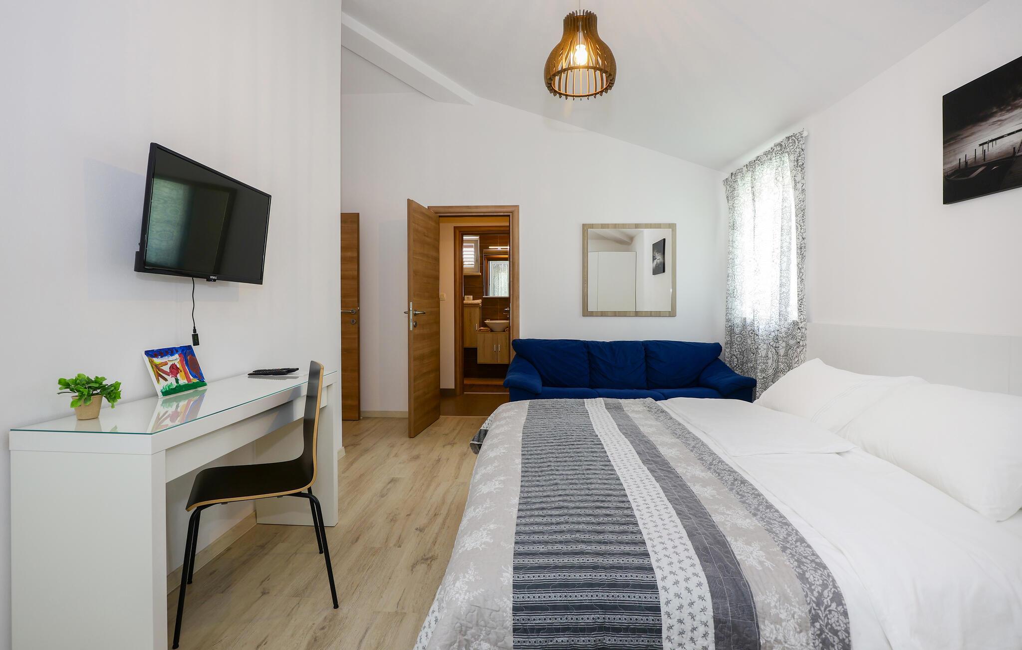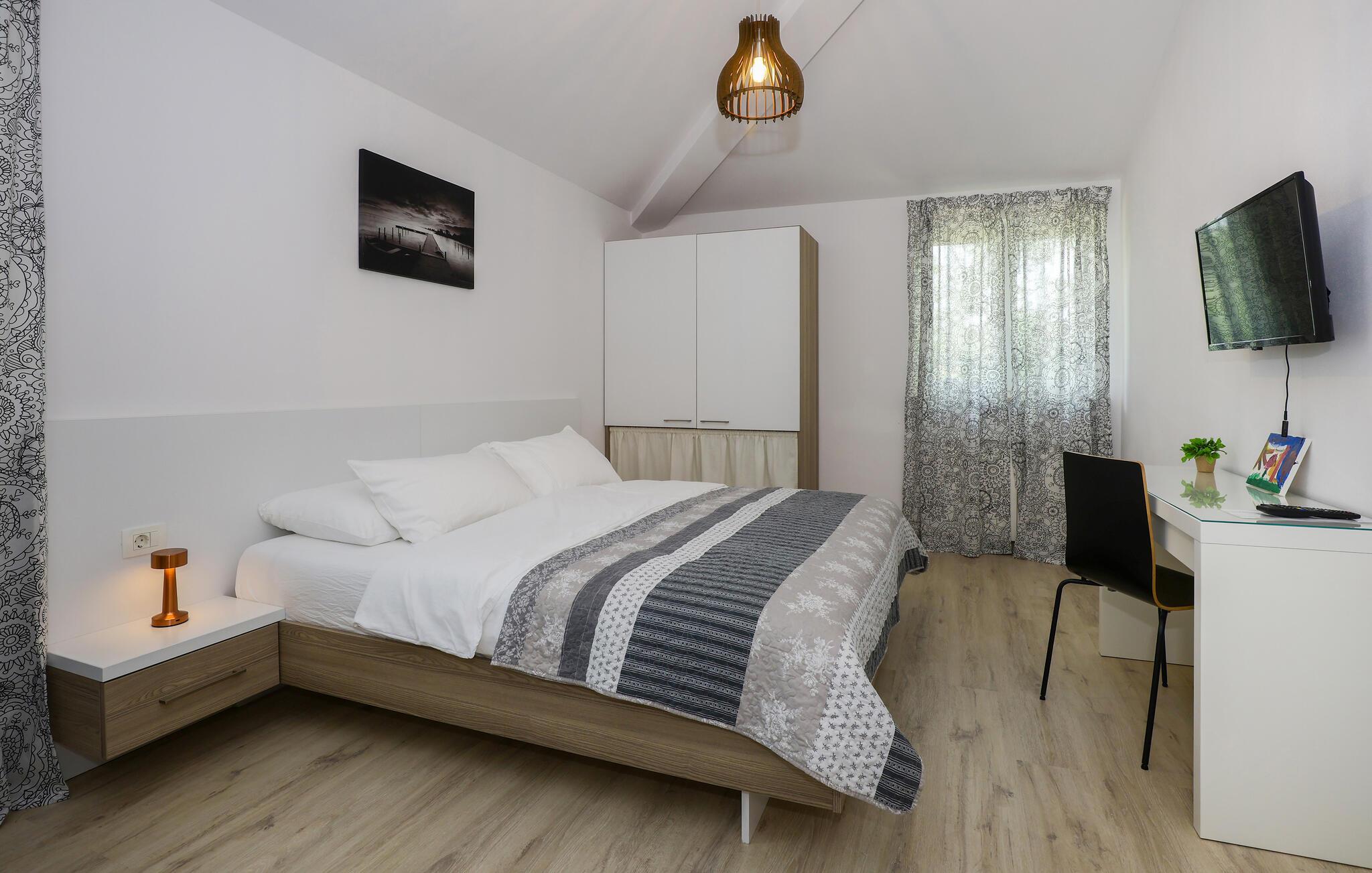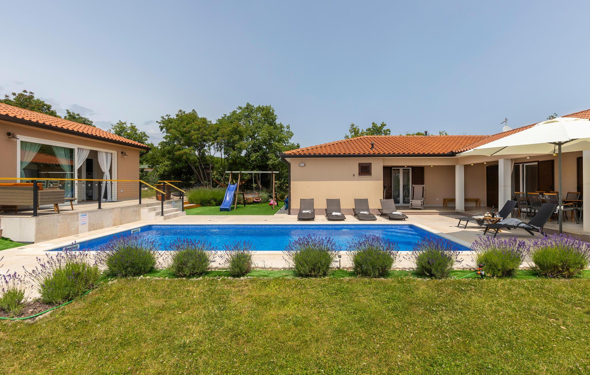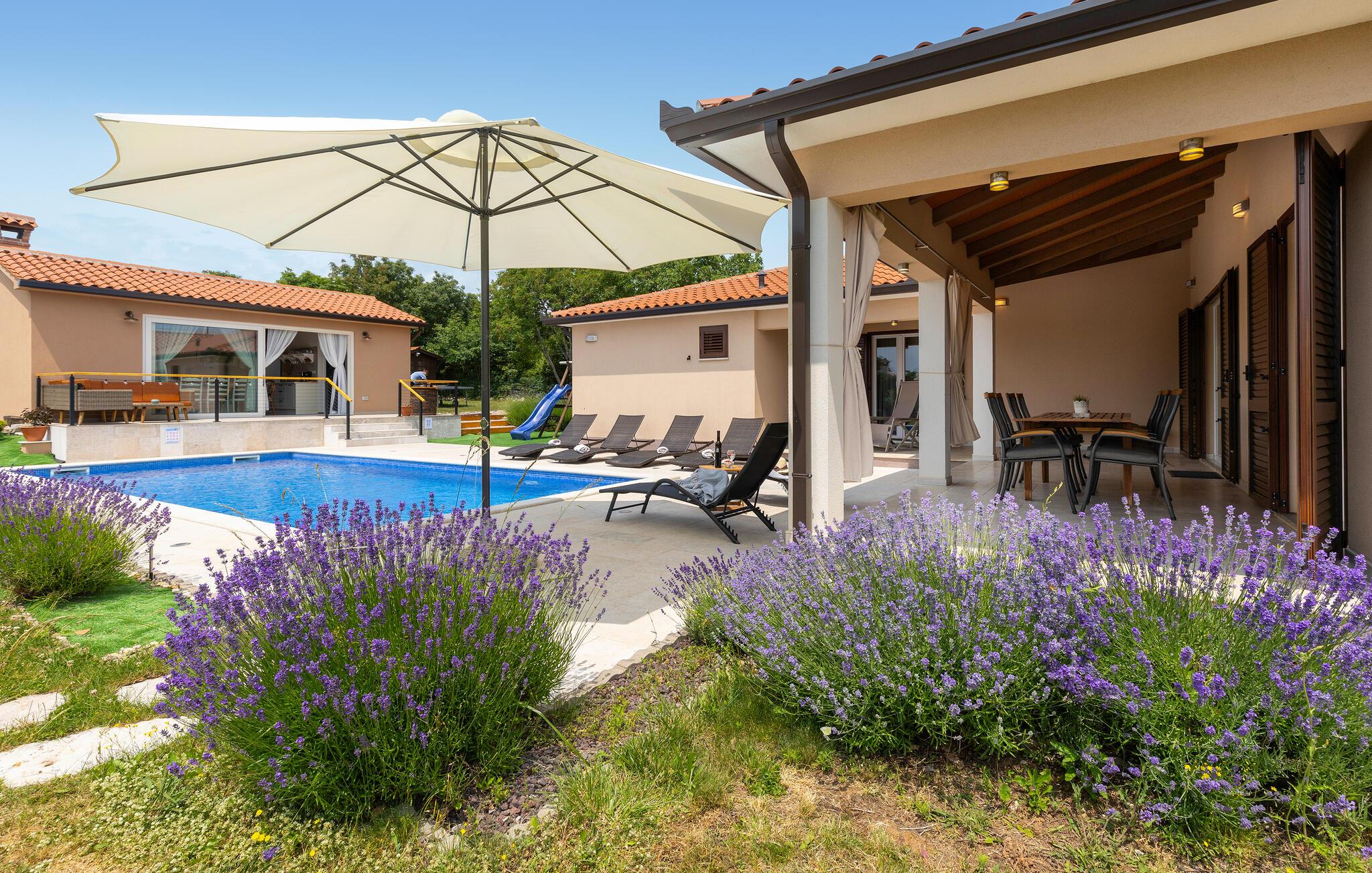 I den lille landsby Kunj, kun ca. 6 km meter fra byen Labin og østkysten, med vidunderlige strande, ligger dette feriehus med pool. Komfortabelt indrettede rum, der alle ligger i stueplan, giver mulighed for et behageligt og afslappet ferieophold. Udendørs swimmingpool og en overdækket terrasse, giver mulighed for dejlige fælles timer udendørs. Tag på udflugt på halvøen og besøg de mange skønne byer, fx Labin, Porec og Rovinj, hvor der er mange former for sommerunderholdning. I kan også smutte en tur til Rabac, hvorfra der sejler mange udflugtsbåde og se Istriens kyster fra vandsiden. Vi gør opmærksom på at den sidste del af vejen op til huset er en grusvej.