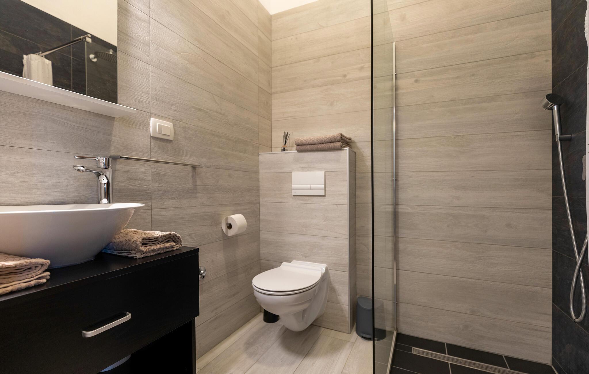 Badeværelse (nr. 1) - WC. Varmt og koldt vand. Bruser