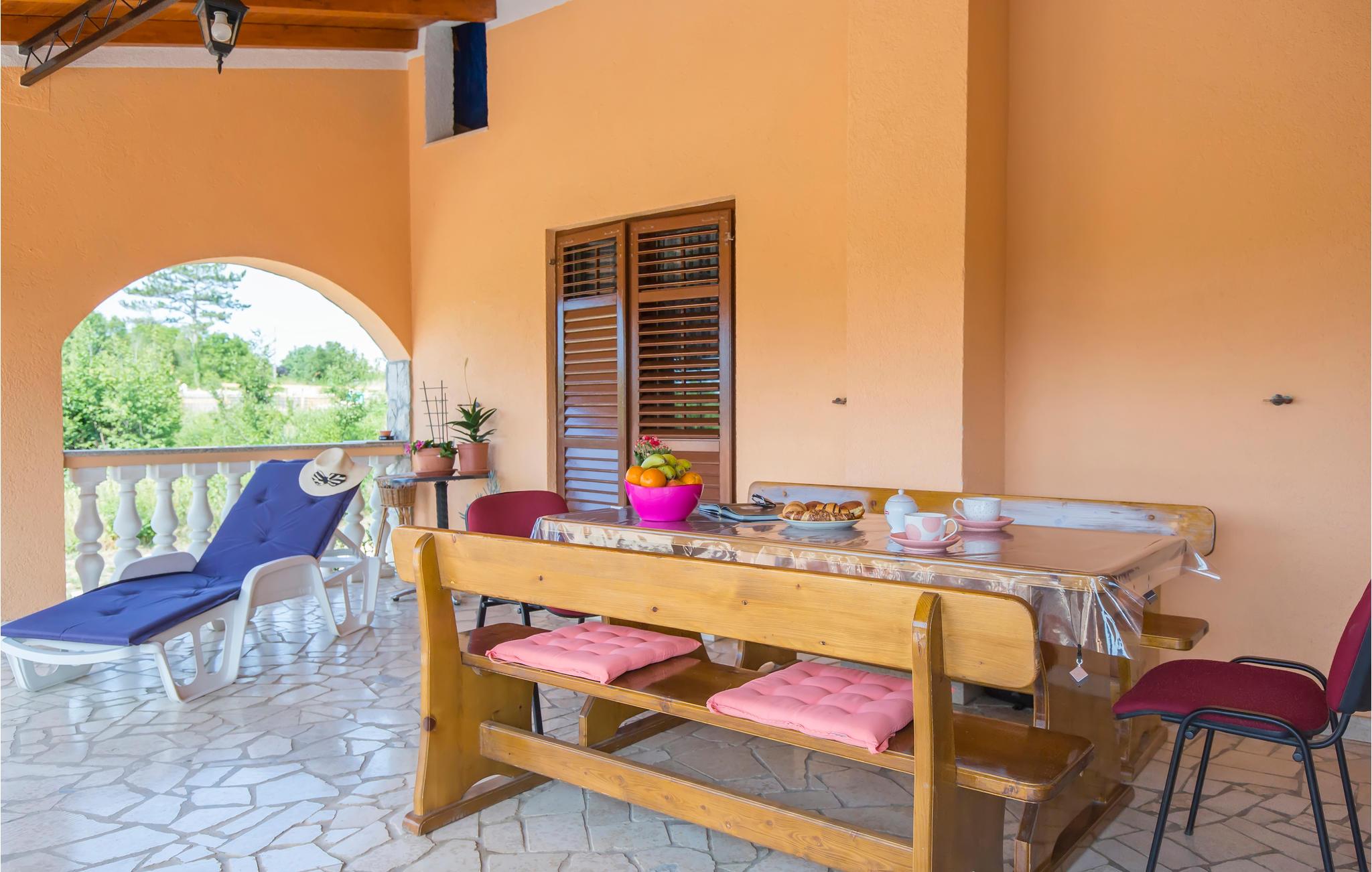 Dette skønne hus udgør den ene halvdel af et dobbelthus. Det ligger i landsbyen Ladenci, tæt på Labin og består af tre soveværelser, to badeværelser, køkkenalrum samt en hyggelig overdækket terrasse. Også et lille anneks med kamin står til rådighed for jer. På de varme sommerdage kan I tage en forfriskende dukkert. Labins centrum med dets butikker og marked er også et besøg værd, og ligger kun få minutter fra huset i bil. Rabacs smukke strande og krystalklare vand kan ligeledes nås på 10 minutter i bil. Her kan ma ligeledes tage på en bådudflugt.
