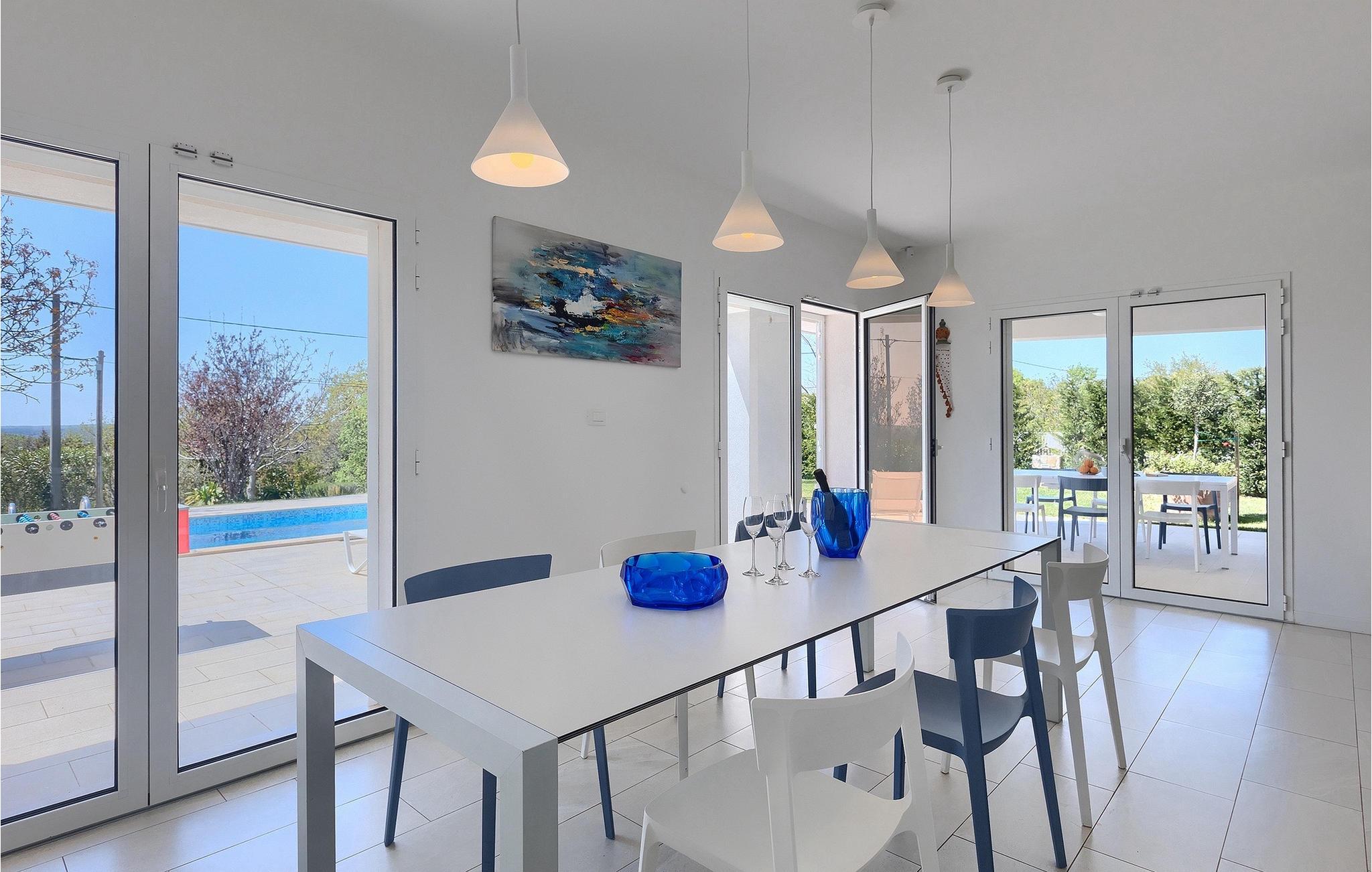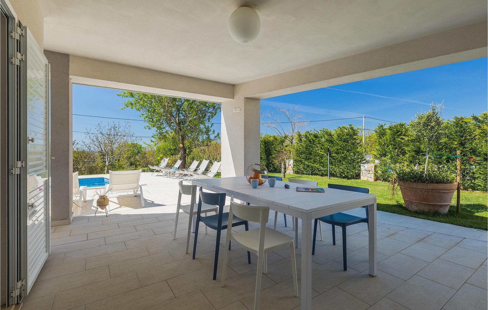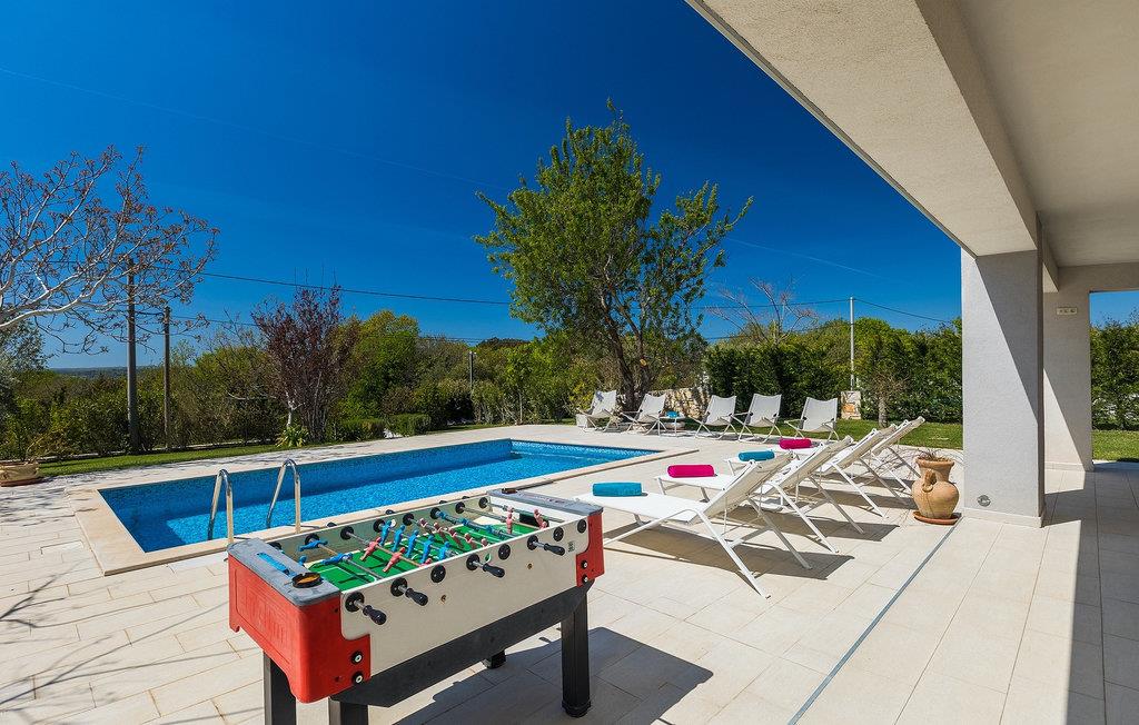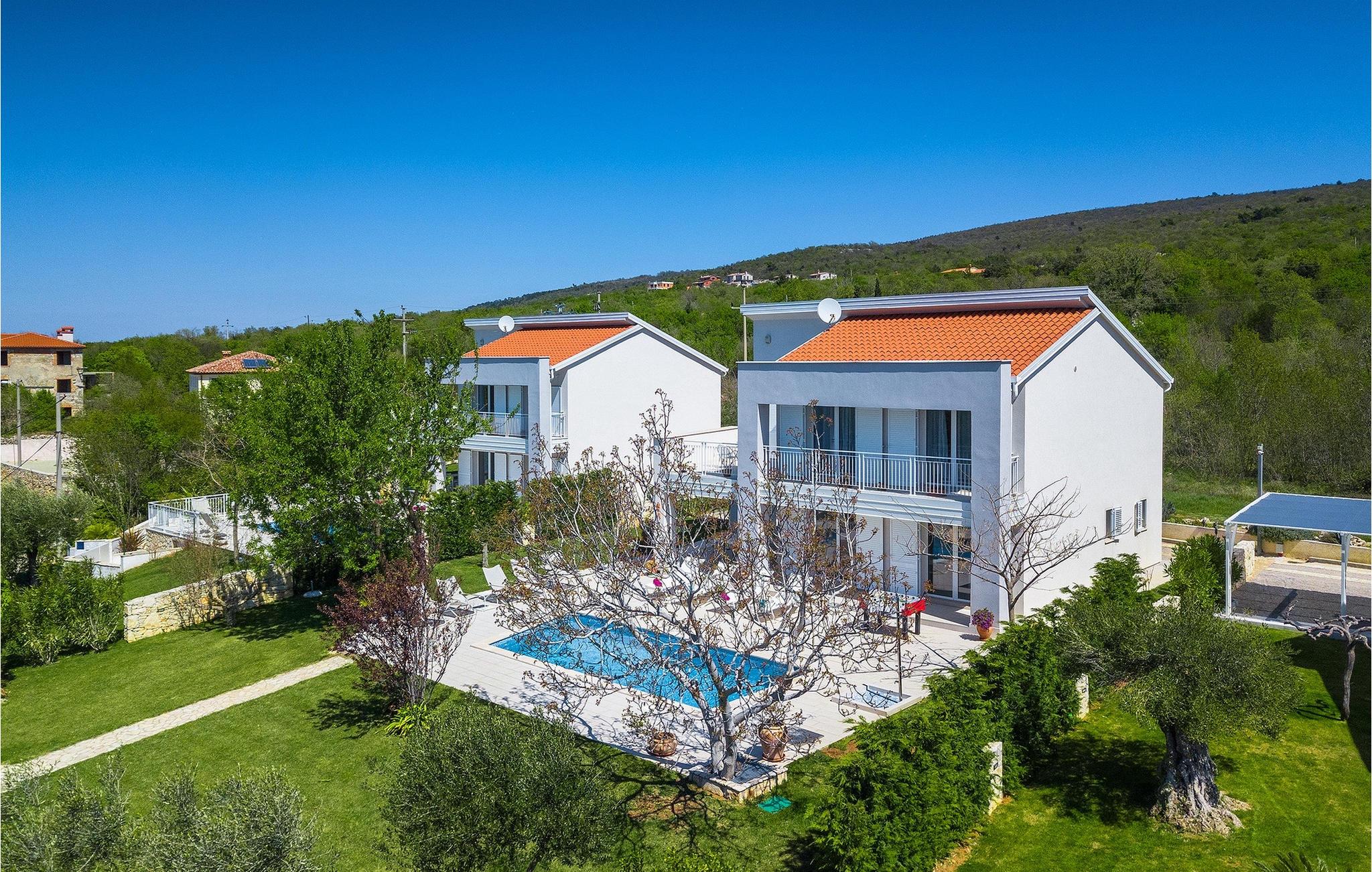 Villa Chiara ist eine herrliche Ferienvilla mit 4 Schlafzimmern, die sich im östlichen Teil der Halbinsel Istrien befindet und ist nur etwa 4 km vom Meer entfernt. Die Villa mit ihrem gepflegten Garten und privatem Pool liegt in einem ruhigen Dorf und ist von idyllischer Natur umgeben. Der private Pool, gemütliche Sonnenliegen und eine Außenterrasse, auf der Sie Ihre Mahlzeiten zubereiten und genießen können, warten nur darauf, dass Sie hier Ihren Urlaub beginnen! Die Villa bietet perfekten Komfort für bis zu 9 Gäste in 4 Schlafzimmern mit jeweils eigenem Badezimmer. Das Erdgeschoss dieser stilvollen Villa besteht aus einer völlig ausgestatteten Küche, einem gemütlichen Wohnzimmer und einem Schlafzimmer mit Badezimmer. In der oberen Etage befinden sich die anderen 3 Schlafzimmer mit Bäder. Die schönen sonnigen Balkone mit herrlichem Blick auf die Natur und das Meer werden sicherlich einer Ihrer Lieblingsorte zum Frühstücken oder für Ihren Morgenkaffee sein. Das Interieur der Villa ist mit Stil und Liebe zum Detail eingerichtet, während zugleich sicher gestellt wird, dass Sie alles haben, was Sie für einen erholsamen Urlaub benötigen. Tischfußball auf der Terrasse neben dem Pool steht Ihnen für mehr Spaß während Ihres Aufenthaltes zur Verfügung, ebenso ein kleiner Fußballplatz und ein Kinderspielplatz, die mit der benachbarten Villa geteilt werden.Sveti Lovrec Labinski ist ein kleines Dorf im östlichen Teil Istriens, nur wenige Fahrminuten von der Küste entfernt. Es ist der perfekte Ausgangspunkt für Tagesausflüge zu den berühmten Städte Pula, Opatija und Labin-Rabac. Labin ist das historische und administrative Zentrum von Ost-Istrien. Das Gebiet ist ein Paradies für Geschichts- und Kunstliebhaber mit seinem reichen kulturellen und architektonischen Erbe. In den steilen, gewundenen Gassen der Altstadt befinden sich gut erhaltene historische Paläste, zahlreiche Kunstgalerien und Ateliers. In den Sommermonaten finden verschiedene Jazz- und Klassikfestivals statt. Die Stadt bietet mehrere ausgezeichnete Fischrestaurants, mit vielen lokalen Produkten im Angebot, sowie viele gemütliche Cafés, ideal zum Genießen der entspannten Atmosphäre. Labins Badeort ist Rabac, einst ein Fischerdorf und heute ein beliebtes Touristenziel, umgeben von himmlischen Kiesstränden. Die Ostküste Istriens bietet eine Vielfalt von Stränden und kristallklarem Meer. Die unberührte Küste enthüllt ruhige Buchten mit sanften Kieselsteinen und Felsen, umgeben von immergrünen Wäldern. Mit seinen zahlreichen Küsten- und Waldwegen, ist dieses Gebiet ideal für Mountainbiking, lange entspannende Wanderungen, Reiten, aber auch als Ausgangspunkt für Ausflüge, um das magische Istrien zu entdecken.