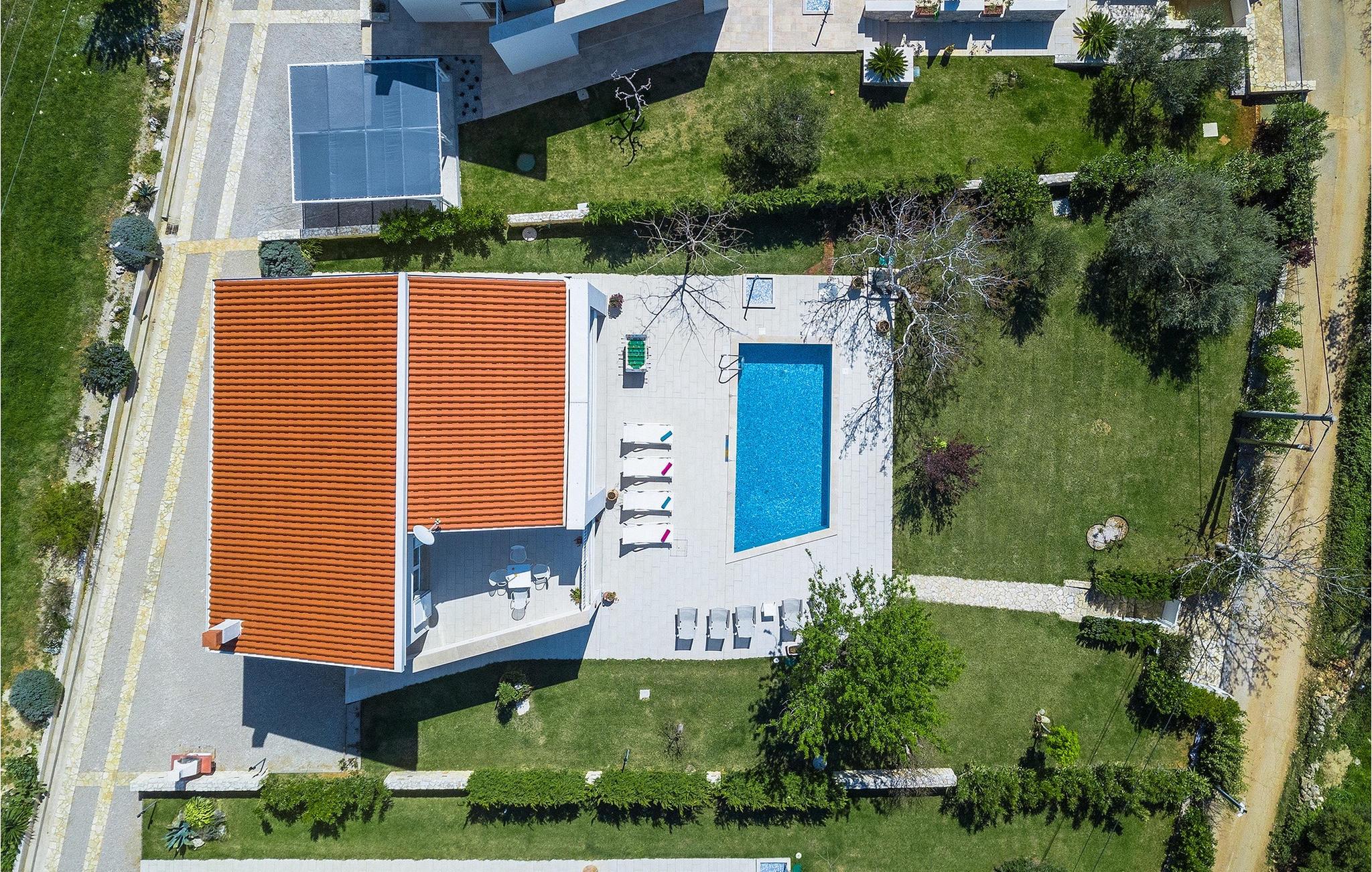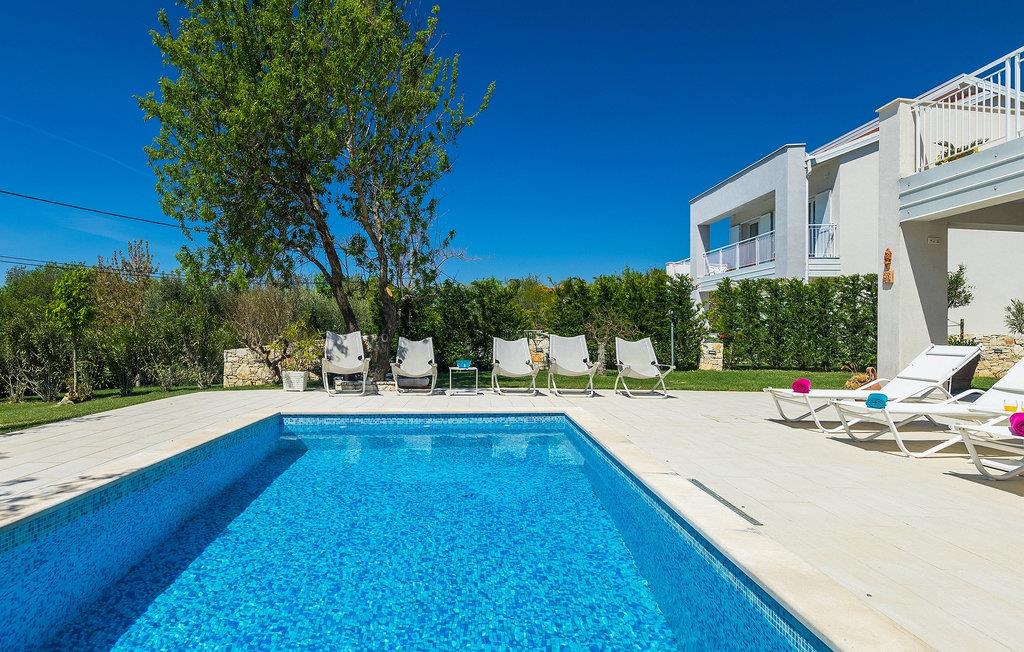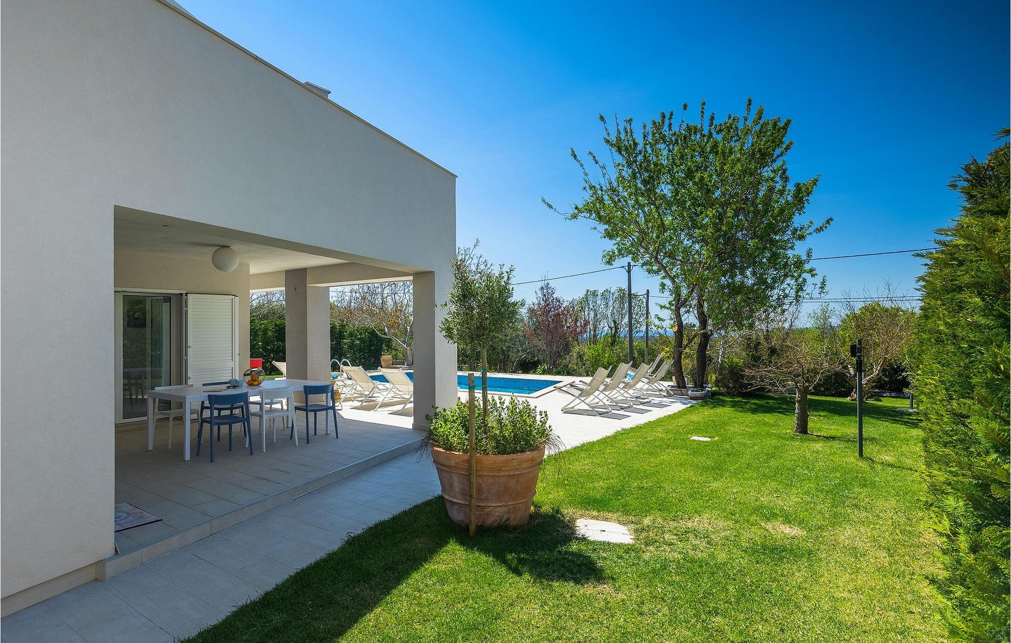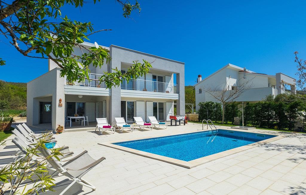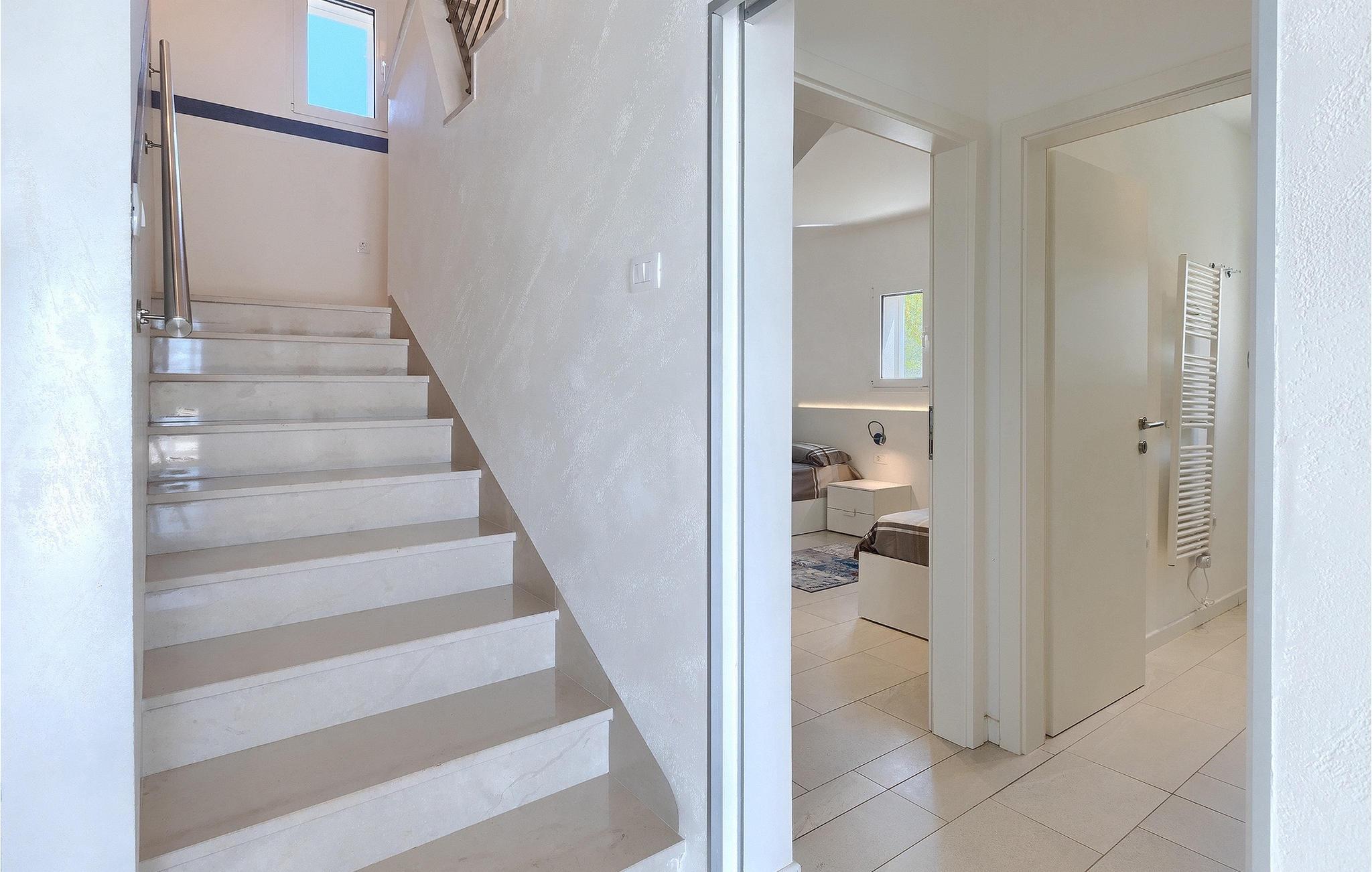 Villa Chiara ist eine herrliche Ferienvilla mit 4 Schlafzimmern, die sich im östlichen Teil der Halbinsel Istrien befindet und ist nur etwa 4 km vom Meer entfernt. Die Villa mit ihrem gepflegten Garten und privatem Pool liegt in einem ruhigen Dorf und ist von idyllischer Natur umgeben. Der private Pool, gemütliche Sonnenliegen und eine Außenterrasse, auf der Sie Ihre Mahlzeiten zubereiten und genießen können, warten nur darauf, dass Sie hier Ihren Urlaub beginnen! Die Villa bietet perfekten Komfort für bis zu 9 Gäste in 4 Schlafzimmern mit jeweils eigenem Badezimmer. Das Erdgeschoss dieser stilvollen Villa besteht aus einer völlig ausgestatteten Küche, einem gemütlichen Wohnzimmer und einem Schlafzimmer mit Badezimmer. In der oberen Etage befinden sich die anderen 3 Schlafzimmer mit Bäder. Die schönen sonnigen Balkone mit herrlichem Blick auf die Natur und das Meer werden sicherlich einer Ihrer Lieblingsorte zum Frühstücken oder für Ihren Morgenkaffee sein. Das Interieur der Villa ist mit Stil und Liebe zum Detail eingerichtet, während zugleich sicher gestellt wird, dass Sie alles haben, was Sie für einen erholsamen Urlaub benötigen. Tischfußball auf der Terrasse neben dem Pool steht Ihnen für mehr Spaß während Ihres Aufenthaltes zur Verfügung, ebenso ein kleiner Fußballplatz und ein Kinderspielplatz, die mit der benachbarten Villa geteilt werden.Sveti Lovrec Labinski ist ein kleines Dorf im östlichen Teil Istriens, nur wenige Fahrminuten von der Küste entfernt. Es ist der perfekte Ausgangspunkt für Tagesausflüge zu den berühmten Städte Pula, Opatija und Labin-Rabac. Labin ist das historische und administrative Zentrum von Ost-Istrien. Das Gebiet ist ein Paradies für Geschichts- und Kunstliebhaber mit seinem reichen kulturellen und architektonischen Erbe. In den steilen, gewundenen Gassen der Altstadt befinden sich gut erhaltene historische Paläste, zahlreiche Kunstgalerien und Ateliers. In den Sommermonaten finden verschiedene Jazz- und Klassikfestivals statt. Die Stadt bietet mehrere ausgezeichnete Fischrestaurants, mit vielen lokalen Produkten im Angebot, sowie viele gemütliche Cafés, ideal zum Genießen der entspannten Atmosphäre. Labins Badeort ist Rabac, einst ein Fischerdorf und heute ein beliebtes Touristenziel, umgeben von himmlischen Kiesstränden. Die Ostküste Istriens bietet eine Vielfalt von Stränden und kristallklarem Meer. Die unberührte Küste enthüllt ruhige Buchten mit sanften Kieselsteinen und Felsen, umgeben von immergrünen Wäldern. Mit seinen zahlreichen Küsten- und Waldwegen, ist dieses Gebiet ideal für Mountainbiking, lange entspannende Wanderungen, Reiten, aber auch als Ausgangspunkt für Ausflüge, um das magische Istrien zu entdecken.