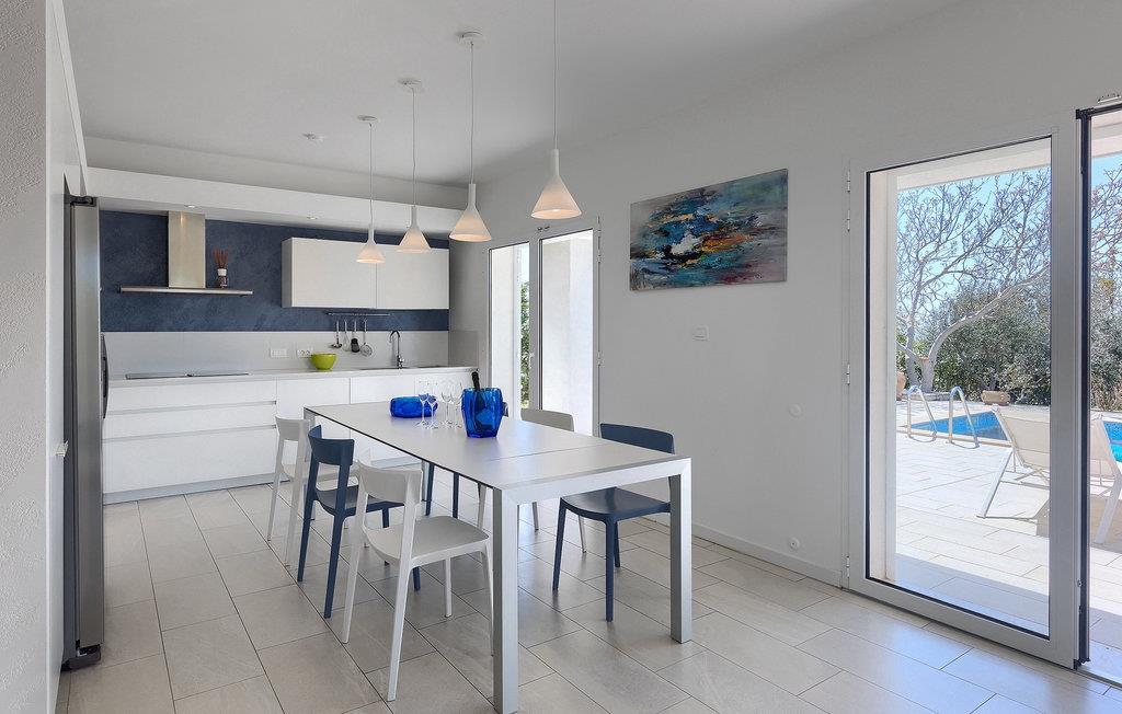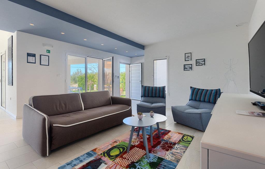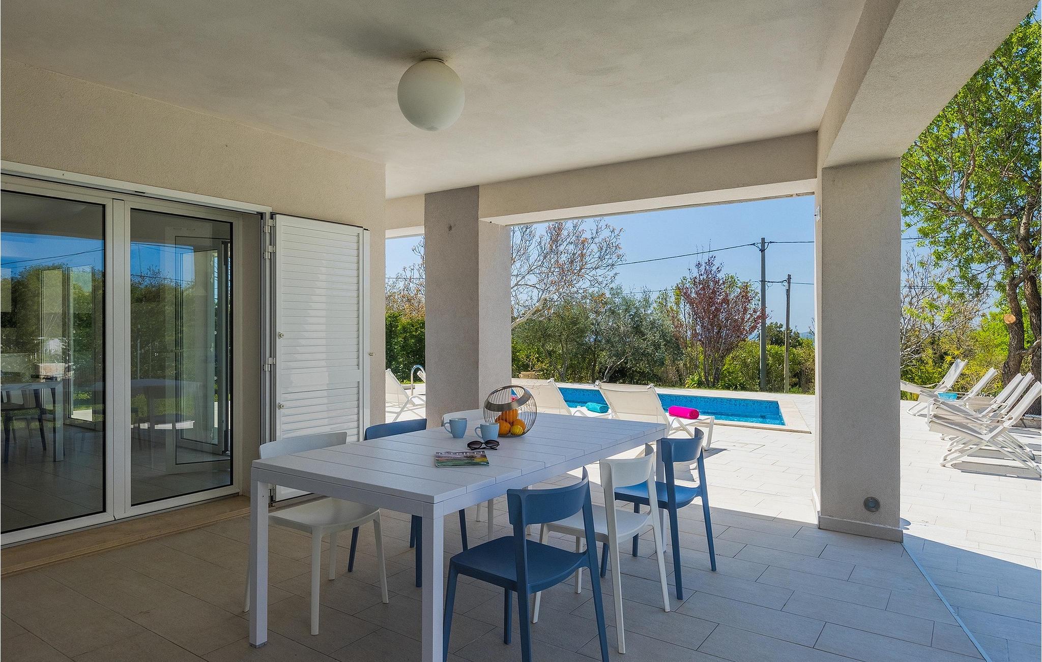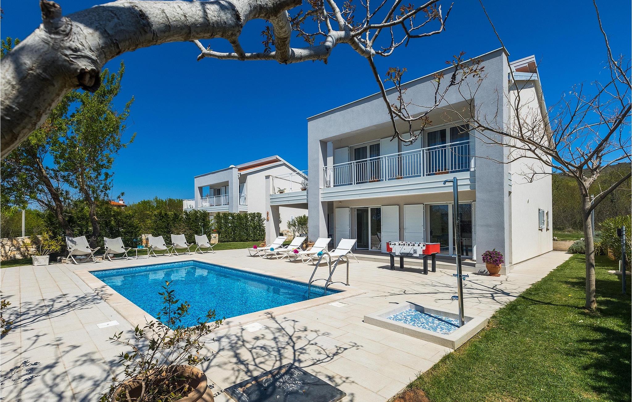 Villa Chiara ist eine herrliche Ferienvilla mit 4 Schlafzimmern, die sich im östlichen Teil der Halbinsel Istrien befindet und ist nur etwa 4 km vom Meer entfernt. Die Villa mit ihrem gepflegten Garten und privatem Pool liegt in einem ruhigen Dorf und ist von idyllischer Natur umgeben. Der private Pool, gemütliche Sonnenliegen und eine Außenterrasse, auf der Sie Ihre Mahlzeiten zubereiten und genießen können, warten nur darauf, dass Sie hier Ihren Urlaub beginnen! Die Villa bietet perfekten Komfort für bis zu 9 Gäste in 4 Schlafzimmern mit jeweils eigenem Badezimmer. Das Erdgeschoss dieser stilvollen Villa besteht aus einer völlig ausgestatteten Küche, einem gemütlichen Wohnzimmer und einem Schlafzimmer mit Badezimmer. In der oberen Etage befinden sich die anderen 3 Schlafzimmer mit Bäder. Die schönen sonnigen Balkone mit herrlichem Blick auf die Natur und das Meer werden sicherlich einer Ihrer Lieblingsorte zum Frühstücken oder für Ihren Morgenkaffee sein. Das Interieur der Villa ist mit Stil und Liebe zum Detail eingerichtet, während zugleich sicher gestellt wird, dass Sie alles haben, was Sie für einen erholsamen Urlaub benötigen. Tischfußball auf der Terrasse neben dem Pool steht Ihnen für mehr Spaß während Ihres Aufenthaltes zur Verfügung, ebenso ein kleiner Fußballplatz und ein Kinderspielplatz, die mit der benachbarten Villa geteilt werden.Sveti Lovrec Labinski ist ein kleines Dorf im östlichen Teil Istriens, nur wenige Fahrminuten von der Küste entfernt. Es ist der perfekte Ausgangspunkt für Tagesausflüge zu den berühmten Städte Pula, Opatija und Labin-Rabac. Labin ist das historische und administrative Zentrum von Ost-Istrien. Das Gebiet ist ein Paradies für Geschichts- und Kunstliebhaber mit seinem reichen kulturellen und architektonischen Erbe. In den steilen, gewundenen Gassen der Altstadt befinden sich gut erhaltene historische Paläste, zahlreiche Kunstgalerien und Ateliers. In den Sommermonaten finden verschiedene Jazz- und Klassikfestivals statt. Die Stadt bietet mehrere ausgezeichnete Fischrestaurants, mit vielen lokalen Produkten im Angebot, sowie viele gemütliche Cafés, ideal zum Genießen der entspannten Atmosphäre. Labins Badeort ist Rabac, einst ein Fischerdorf und heute ein beliebtes Touristenziel, umgeben von himmlischen Kiesstränden. Die Ostküste Istriens bietet eine Vielfalt von Stränden und kristallklarem Meer. Die unberührte Küste enthüllt ruhige Buchten mit sanften Kieselsteinen und Felsen, umgeben von immergrünen Wäldern. Mit seinen zahlreichen Küsten- und Waldwegen, ist dieses Gebiet ideal für Mountainbiking, lange entspannende Wanderungen, Reiten, aber auch als Ausgangspunkt für Ausflüge, um das magische Istrien zu entdecken.
