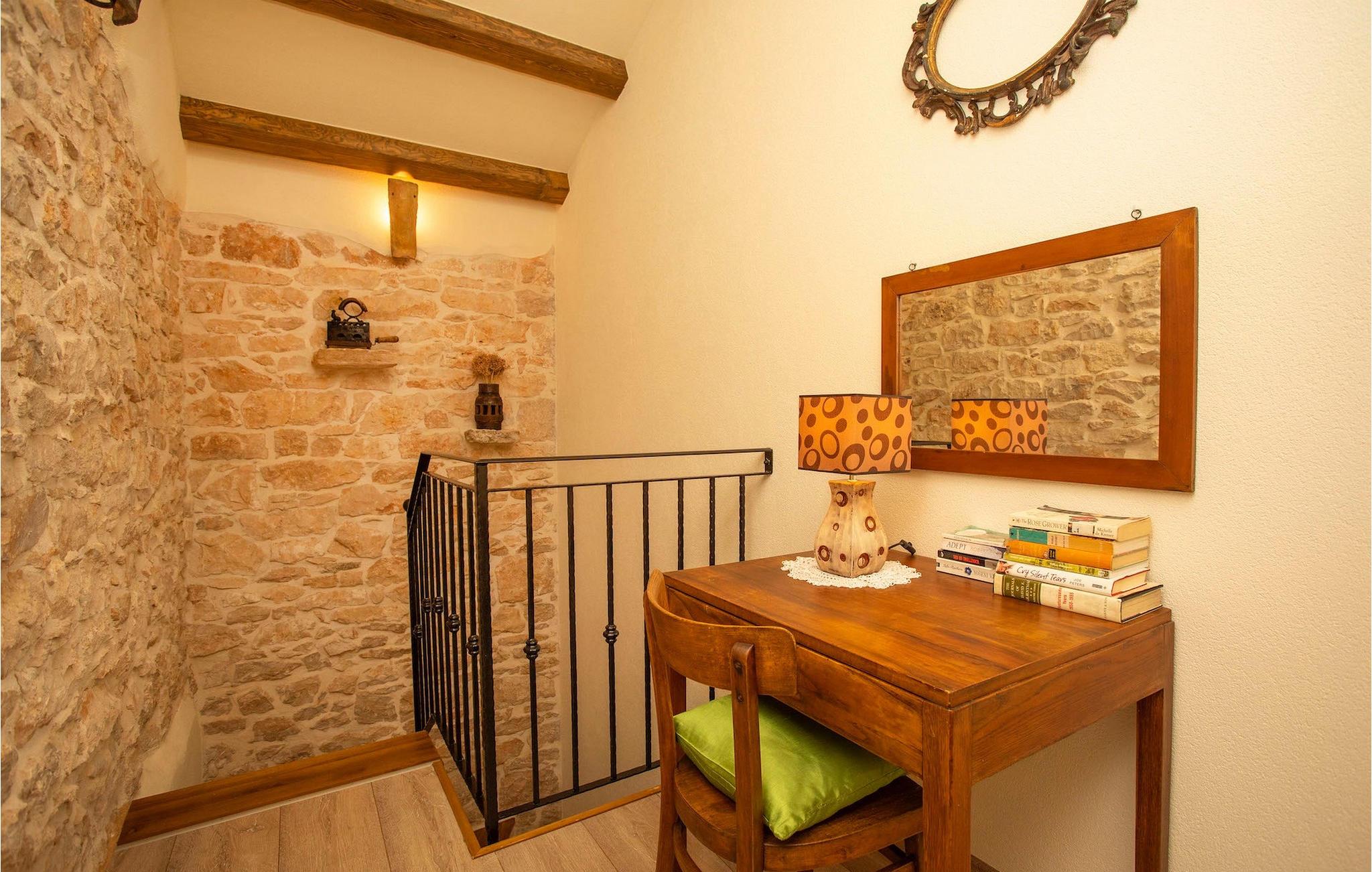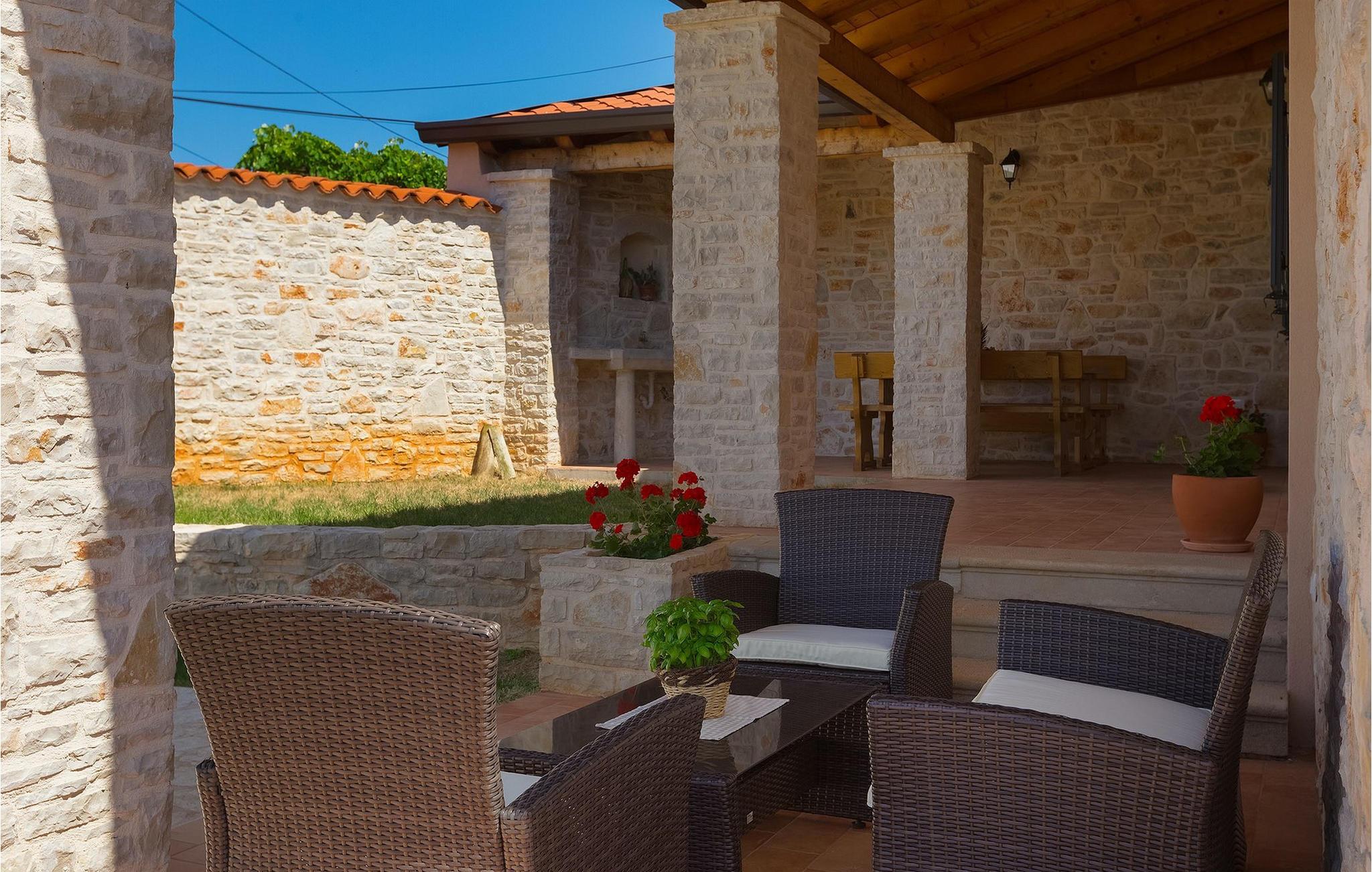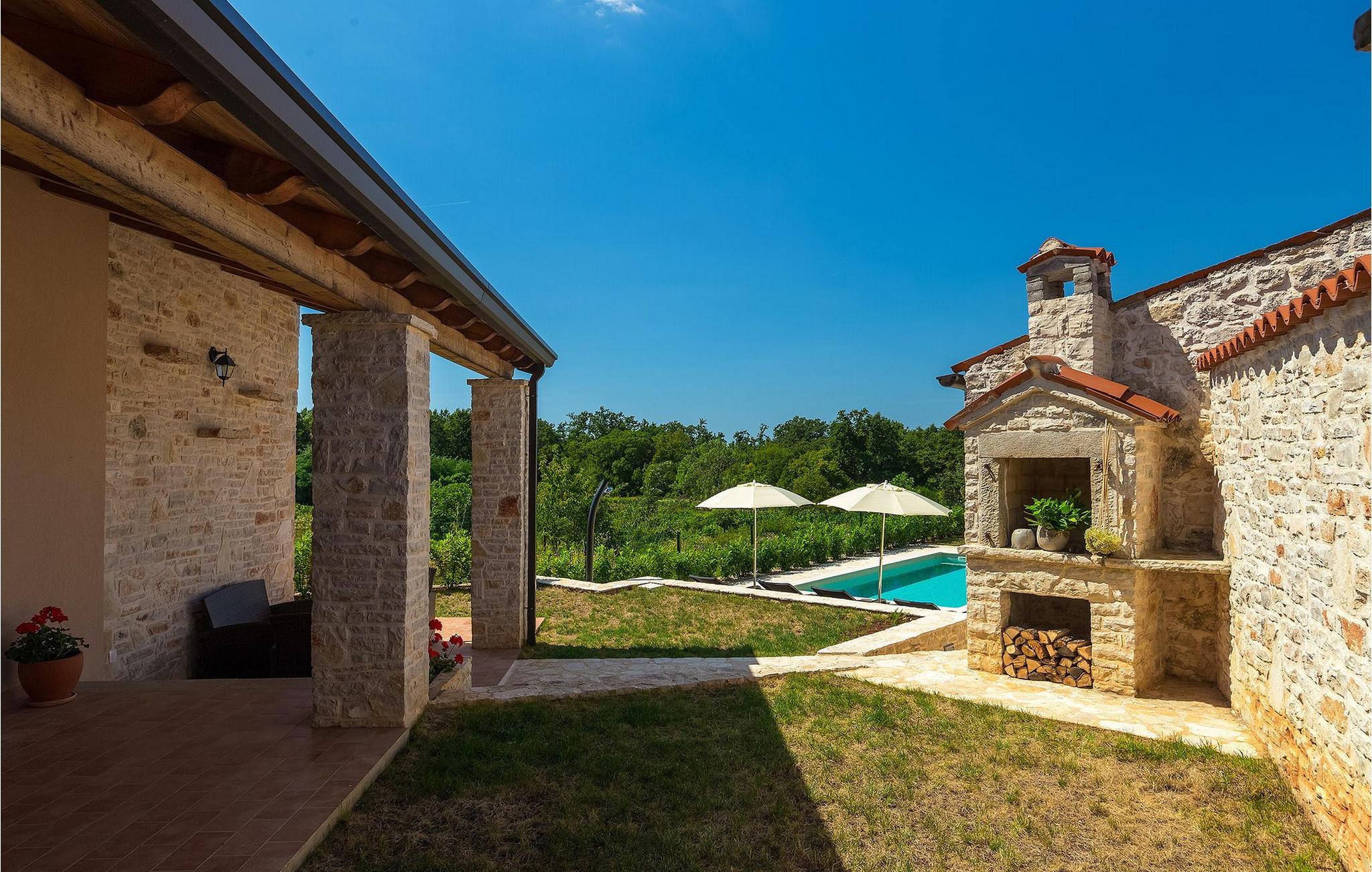 Den smukke Villa Milka er et nyrenoveret (i 2019) stenhus, indrettet i typisk istrisk stil, beliggende ved siden af en lille olivenlund i den østlige del af det centrale Istrien, over dalen ved floden Rasa. Bygget ved siden af vinmarker og de nærliggende skove, kan gæsterne nyde lange gåture eller blot nyde udsigten fra balkonen, terrassen eller poolen. I villaen finder du et udvalg af lokale lokale varianter, som du også kan nyde ved siden af den smukke udsigt og solnedgange. Villa Milka kan rumme i alt 4 + 2 gæster. Villaen består af 2 soveværelser med dobbeltsenge, mens de 2 sovesofaer i opholdsområdet giver ekstra soveplads. Stueetagen består af et traditionelt og fuldt udstyret køkken, en spise- og opholdsstue og et badeværelse. De to soveværelser og et balkon område på første sal. Udenfor villaen finder du en overdækket terrasse med spiseplads og grill, hvor du kan tilberede traditionelle retter og nyde dem med et glas Malvazija - gode priser er garanteret! :)