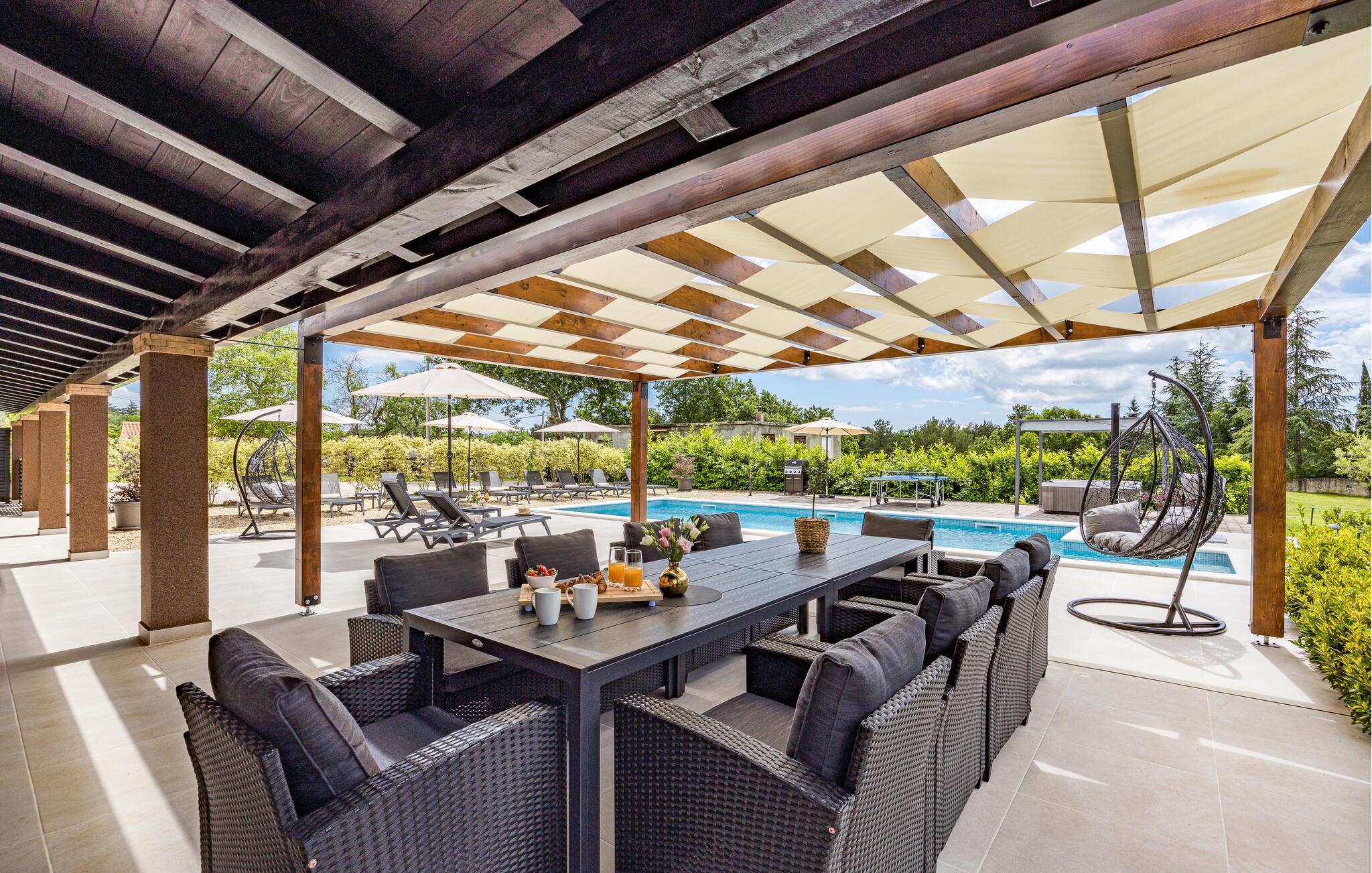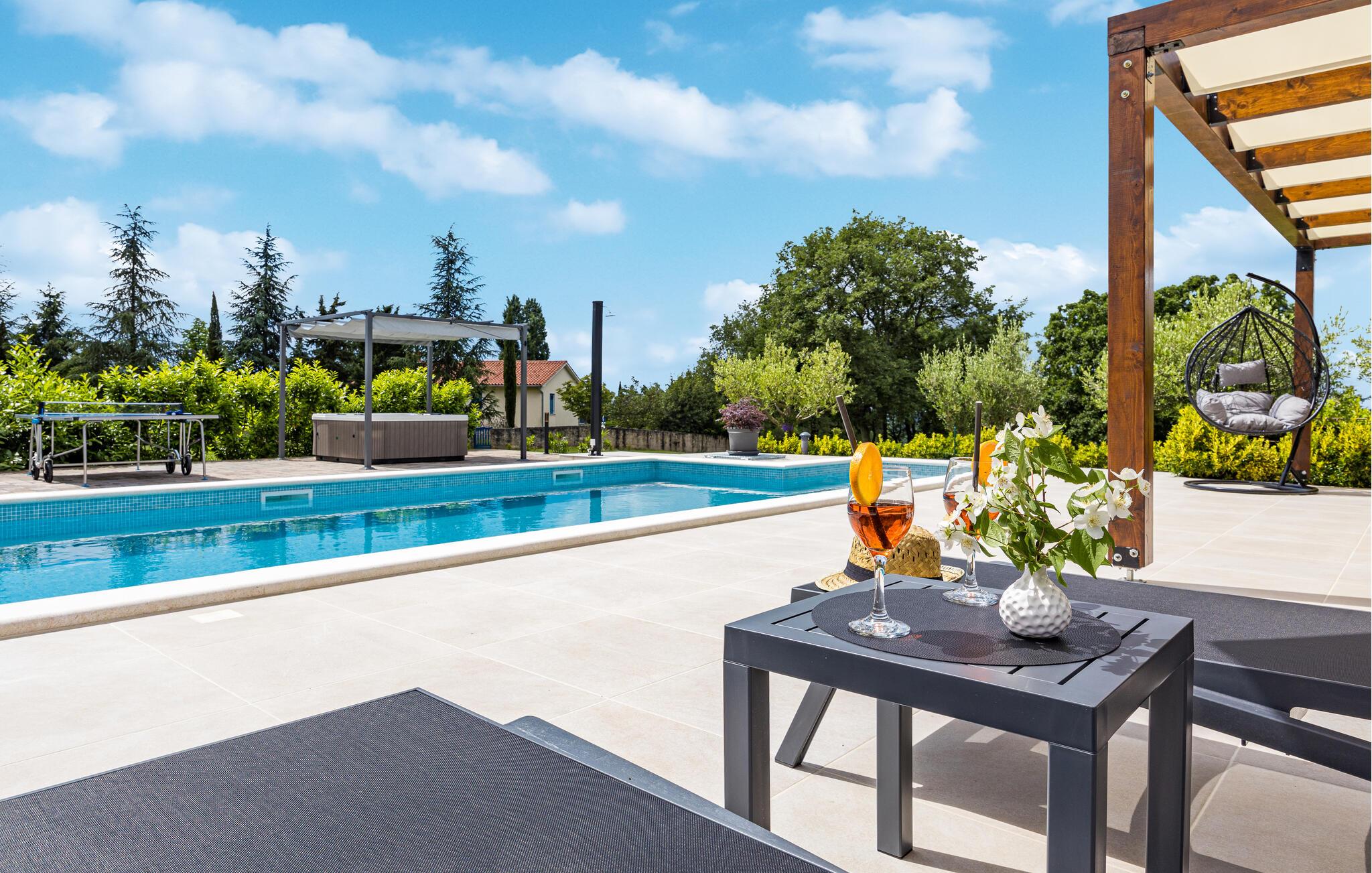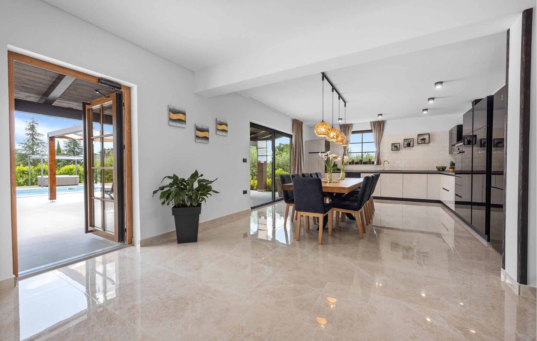 Forkæl jer selv med en pause og oplev en afslappende ferie i dette skønne feriehus. I Markoci, ikke langt fra Labin, vil I opleve en uforglemmelig ferie i denne luksuriøse villa. Det rummelige hus med en rummelig, grøn have tilbyder jer alt, hvad I skal bruge til en afslappende pause. Nyd den rolige beliggenhed, langt væk fra byens stress og jag, og lad hverdagens stress bag jer. Slap af i det elegante og komfortable interiør, som tilbyder jer masser af plads og komfort. Værelset med åben pejs og ekstra køkken lover selskabelige timer og kulinariske aftener. Udnyt de varme sommerdage til at snuppe en frisk dukkert i den private udendørs pool eller slap af i det udendørs spabad. Tilbered jeres yndlingsretter på grillen på den store terrasse og nyd de varme aftener med jeres kære. Prøv de fritidsaktiviteter, der tilbydes, herunder golf i den specielt forberedte del af haven. Udforsk den historiske gamle bydel i Labin, som fryder sig med sine maleriske gader og betagende udsigt. Lad jer blive forkælet af den lokale gastronomi og nyd istriske specialiteter i restauranterne og pizzeriaerne. I kan også besøge det nærliggende Rabac med sine smukke stenstrande og krystalklare hav, eller tage en bådtur til de omkringliggende øer om sommeren.