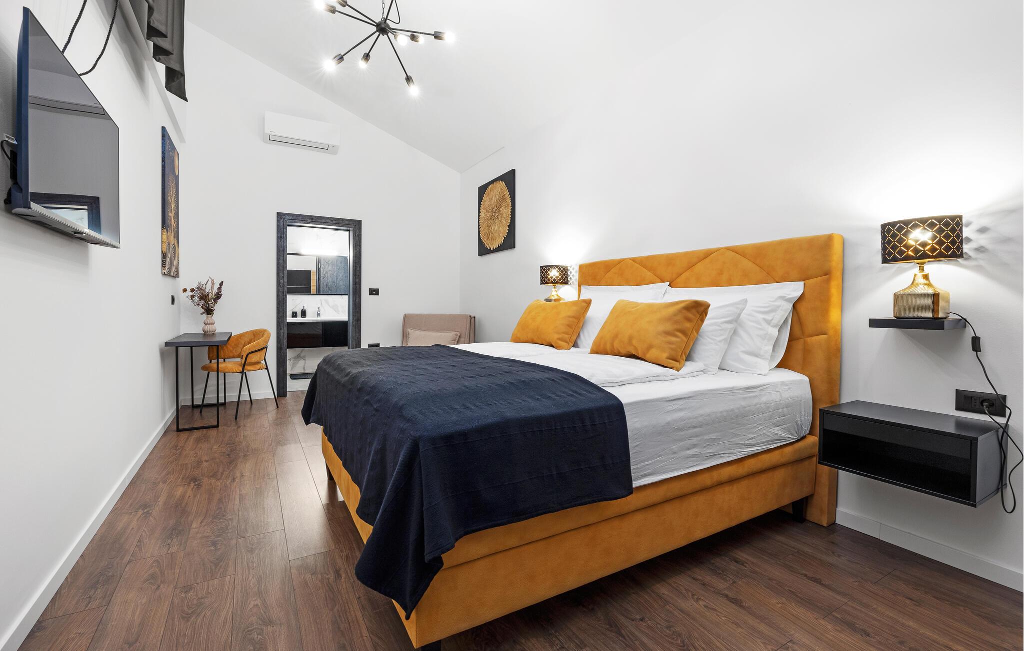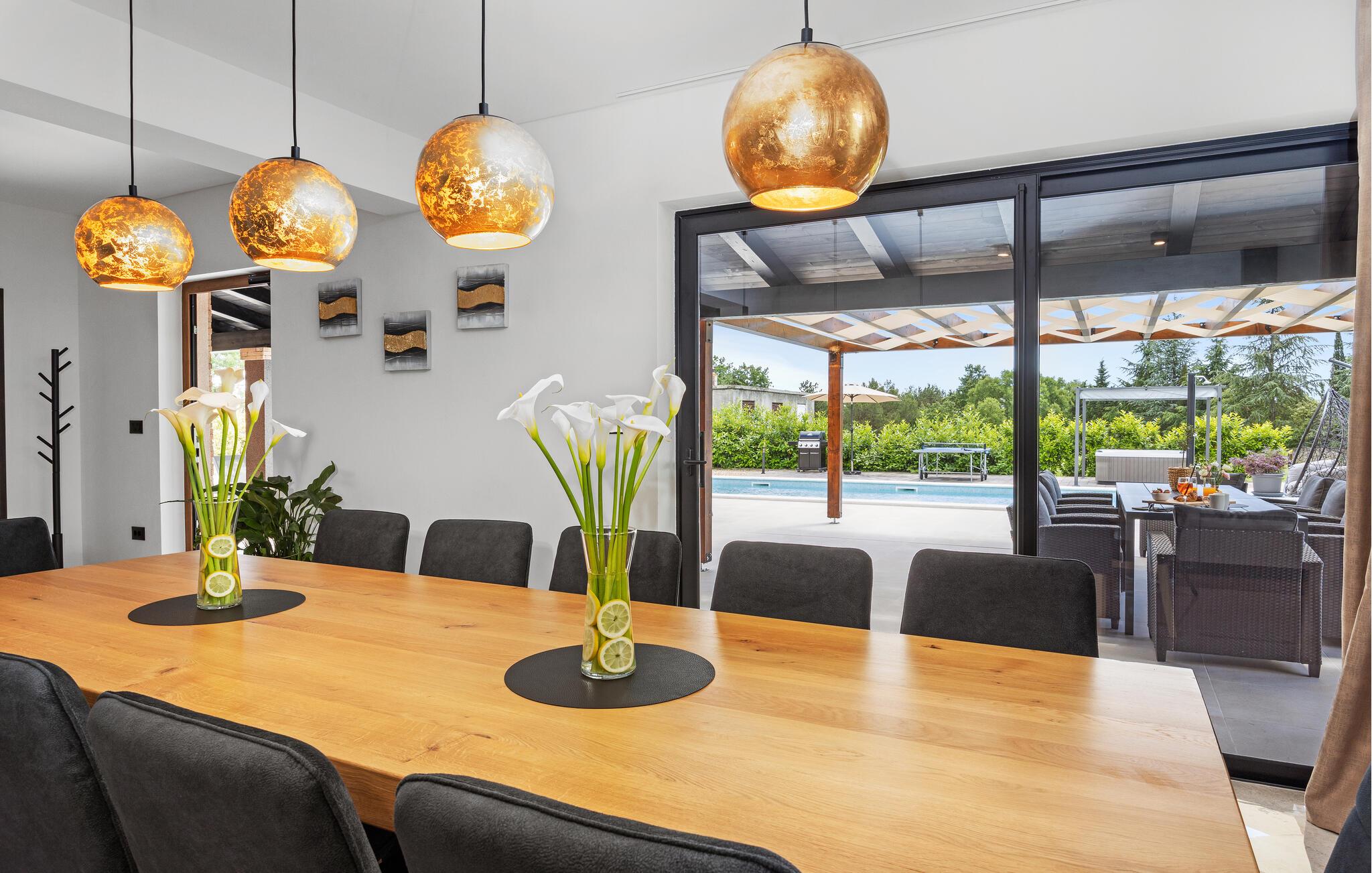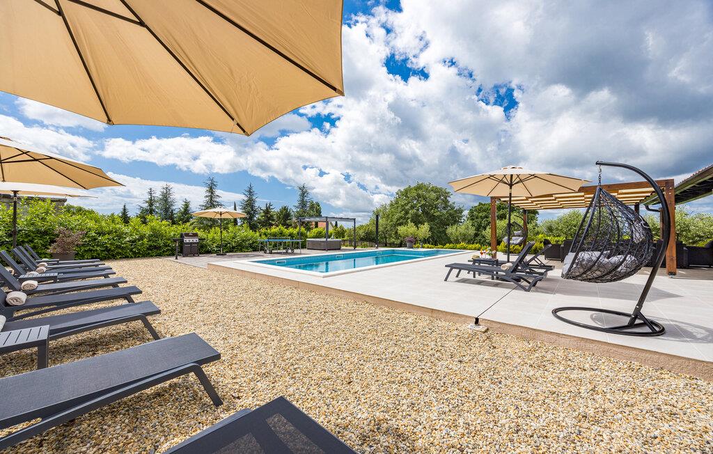 Forkæl jer selv med en pause og oplev en afslappende ferie i dette skønne feriehus. I Markoci, ikke langt fra Labin, vil I opleve en uforglemmelig ferie i denne luksuriøse villa. Det rummelige hus med en rummelig, grøn have tilbyder jer alt, hvad I skal bruge til en afslappende pause. Nyd den rolige beliggenhed, langt væk fra byens stress og jag, og lad hverdagens stress bag jer. Slap af i det elegante og komfortable interiør, som tilbyder jer masser af plads og komfort. Værelset med åben pejs og ekstra køkken lover selskabelige timer og kulinariske aftener. Udnyt de varme sommerdage til at snuppe en frisk dukkert i den private udendørs pool eller slap af i det udendørs spabad. Tilbered jeres yndlingsretter på grillen på den store terrasse og nyd de varme aftener med jeres kære. Prøv de fritidsaktiviteter, der tilbydes, herunder golf i den specielt forberedte del af haven. Udforsk den historiske gamle bydel i Labin, som fryder sig med sine maleriske gader og betagende udsigt. Lad jer blive forkælet af den lokale gastronomi og nyd istriske specialiteter i restauranterne og pizzeriaerne. I kan også besøge det nærliggende Rabac med sine smukke stenstrande og krystalklare hav, eller tage en bådtur til de omkringliggende øer om sommeren.