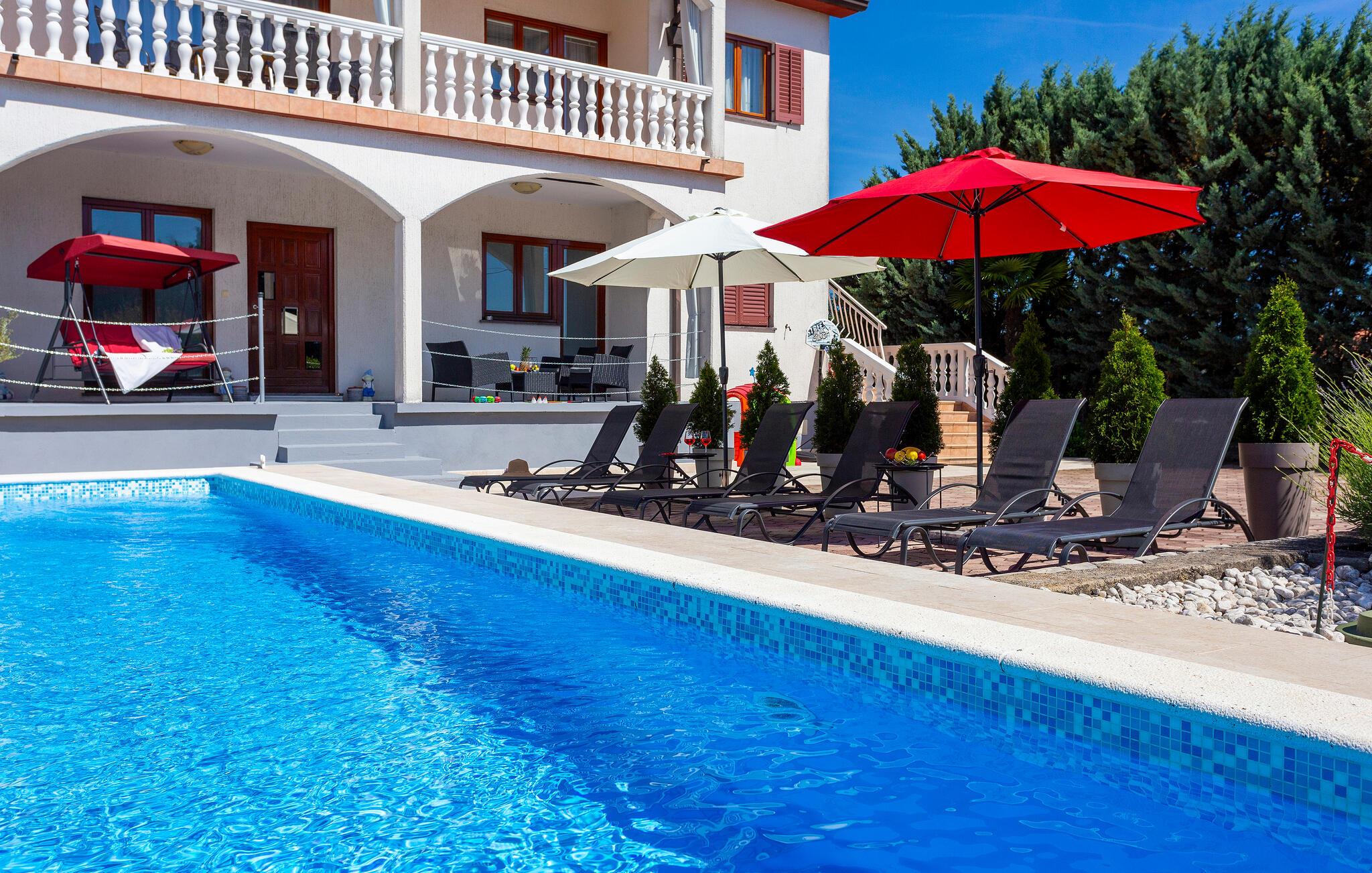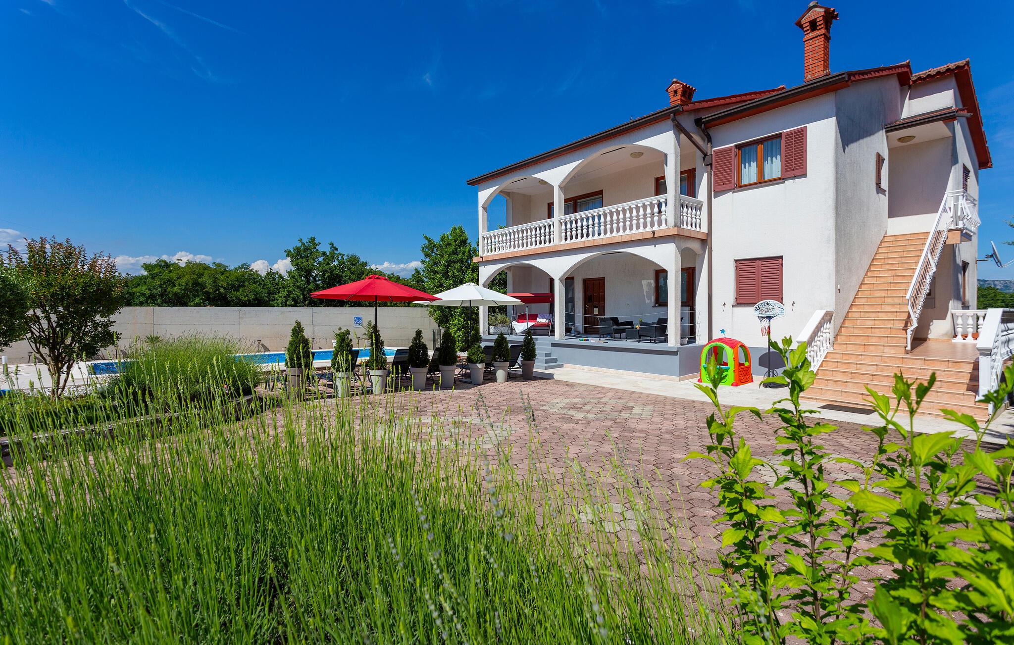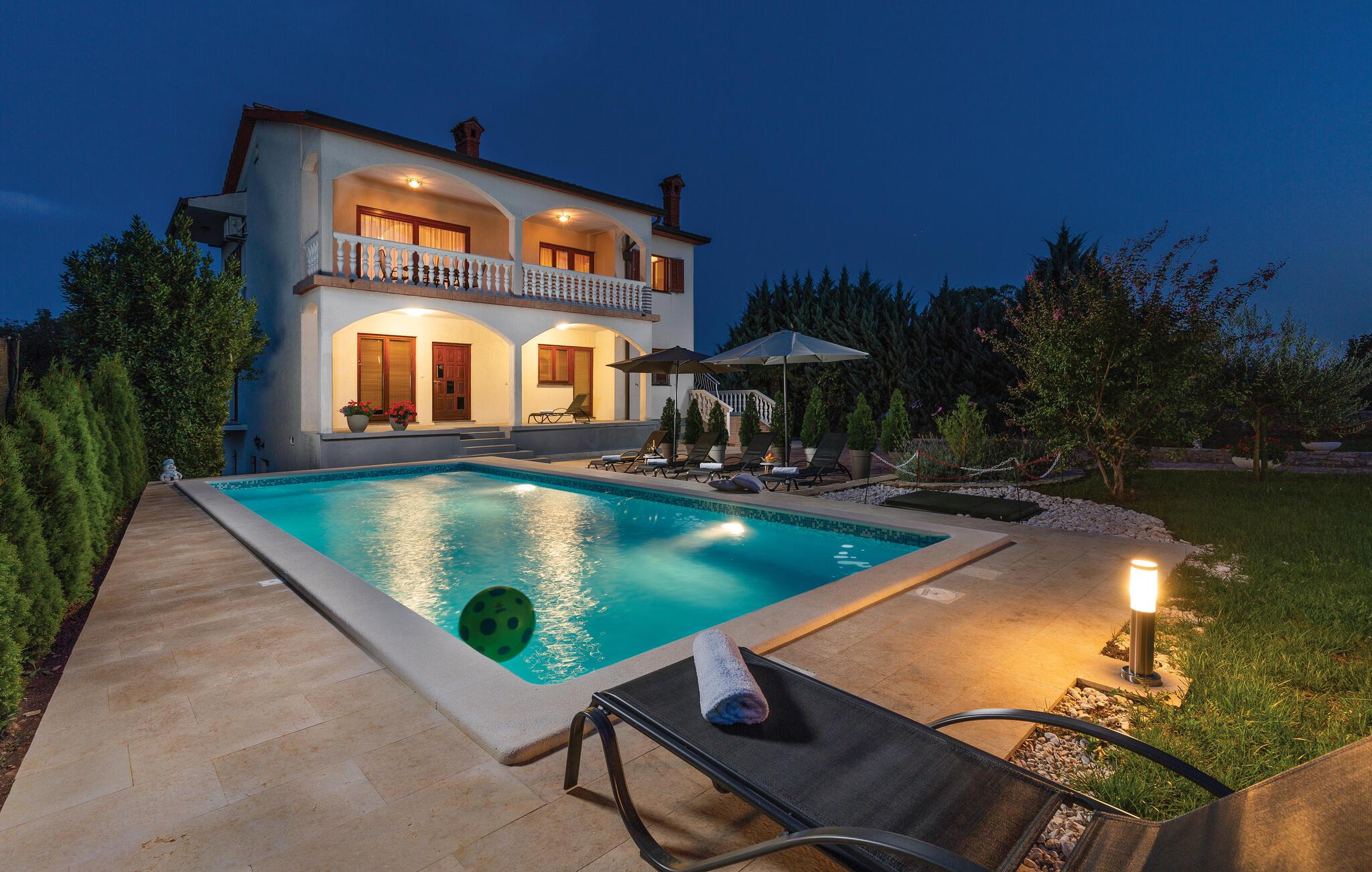 Bo i den lille by Nedescina i dette skønne og hyggeligt indrettede feriehus i to etager. På første sal ligger de tre soveværelser, to badeværelser og et køkken der er åbent mod stuen. I stueplan er der et køkken i praktisk åben forbindelse med stuen, hvor det er hyggeligt at sidde sammen, mens underetagen ikke er beboet og blot lukket af. I har jeres helt private pool, som er dejlig at hoppe i når det er varmt, ligesom I kan nyde det afslappede ferieliv på terrassen med noget koldt i glasset. Besøg Labins gamle bydel hvor der altid sker noget. Slap af på de skønne kieselstrande der ligger ud til det blå have i feriebyen Rabac.