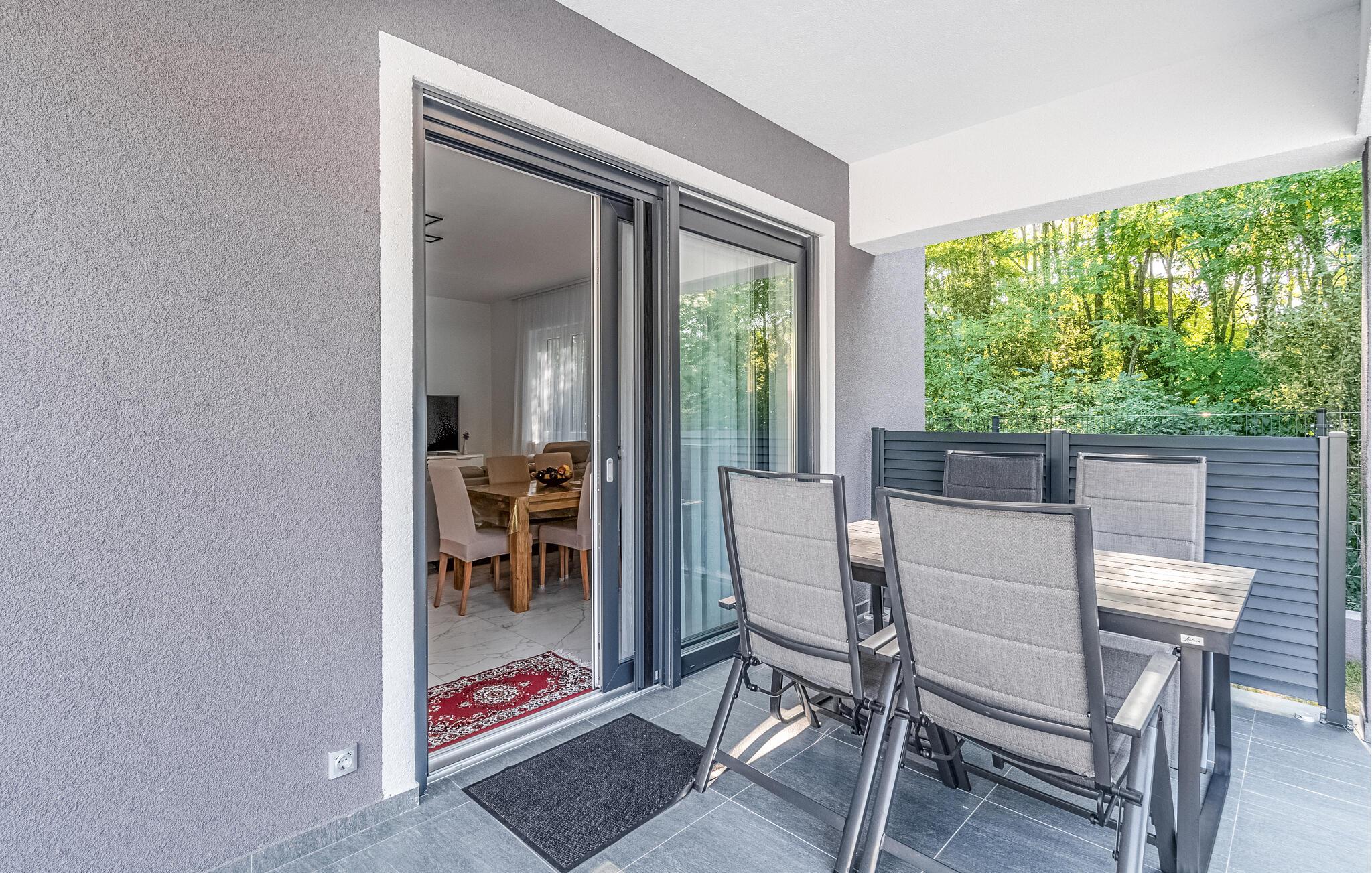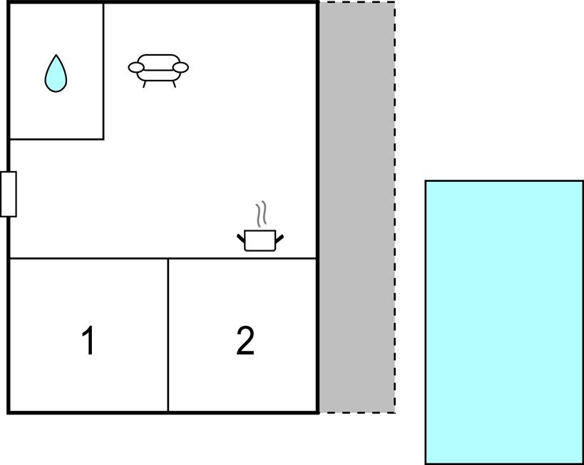 På den overdækkede terrasse kan I nyde den friske luft og den smukke udsigt. Fællespoolen er perfekt til afslappende dage i solen. Tag en forfriskende dukkert, og kom i snak med gæsterne fra nabolejligheden.