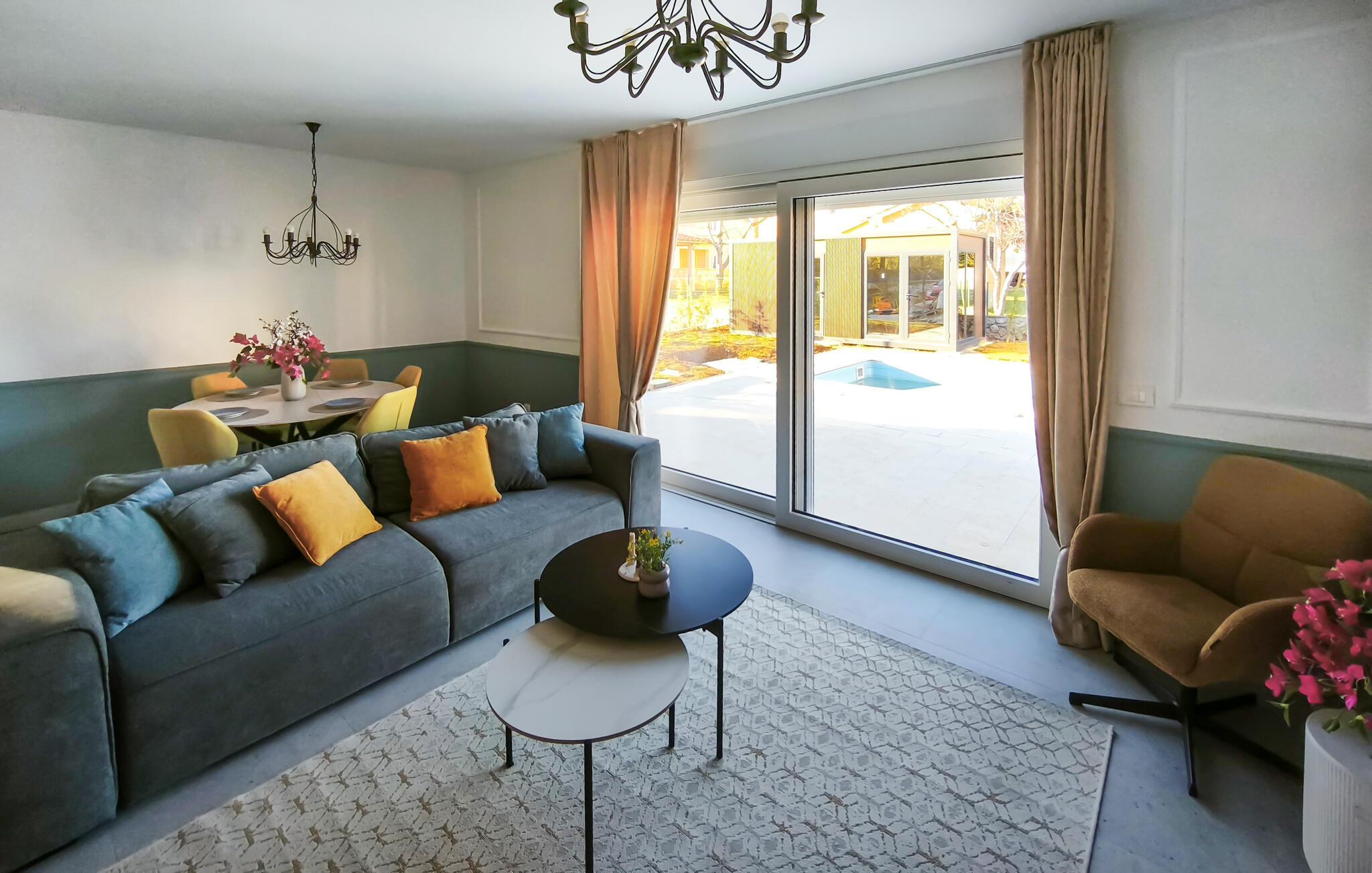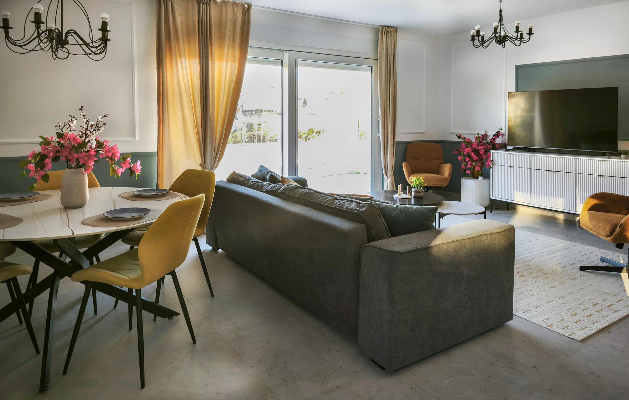Dette komfortabelt og smagfuldt indrettede feriehus lægger op til afslappende og varierede dage med venner eller familie. Nyd den indbydende atmosfære, mens I nyder stilfulde måltider, forkæl jer selv med afslappende øjeblikke i spabadet eller den infrarøde sauna og læn jer tilbage i sofaen om aftenen for at streame en god serie.