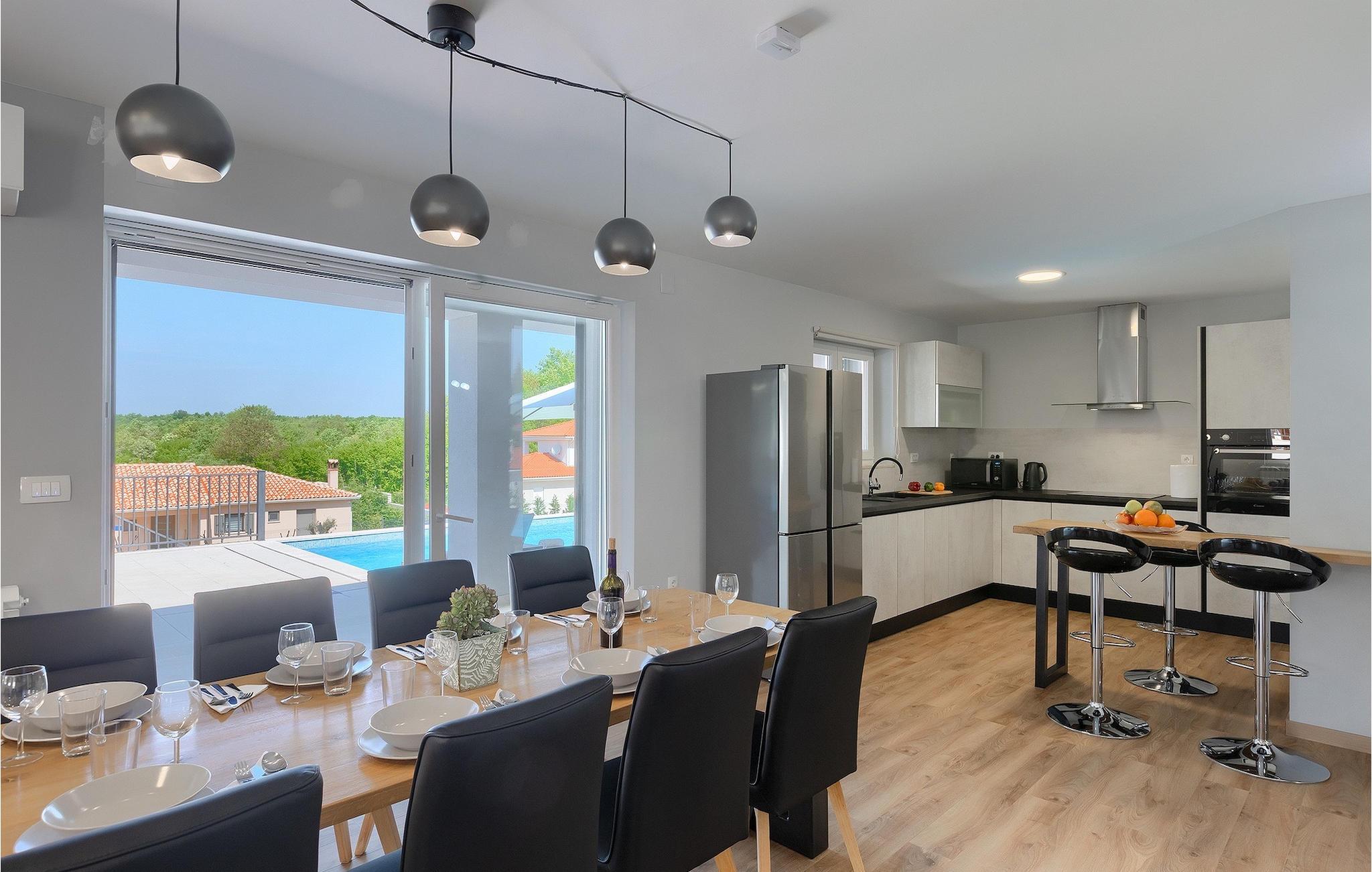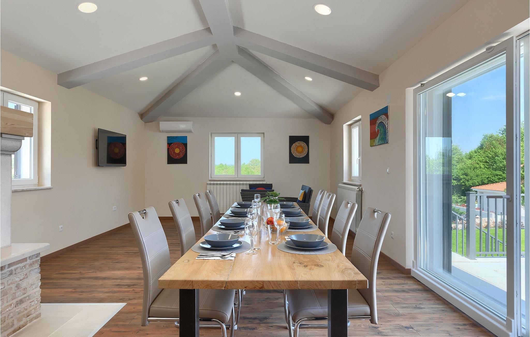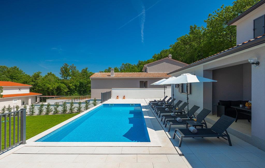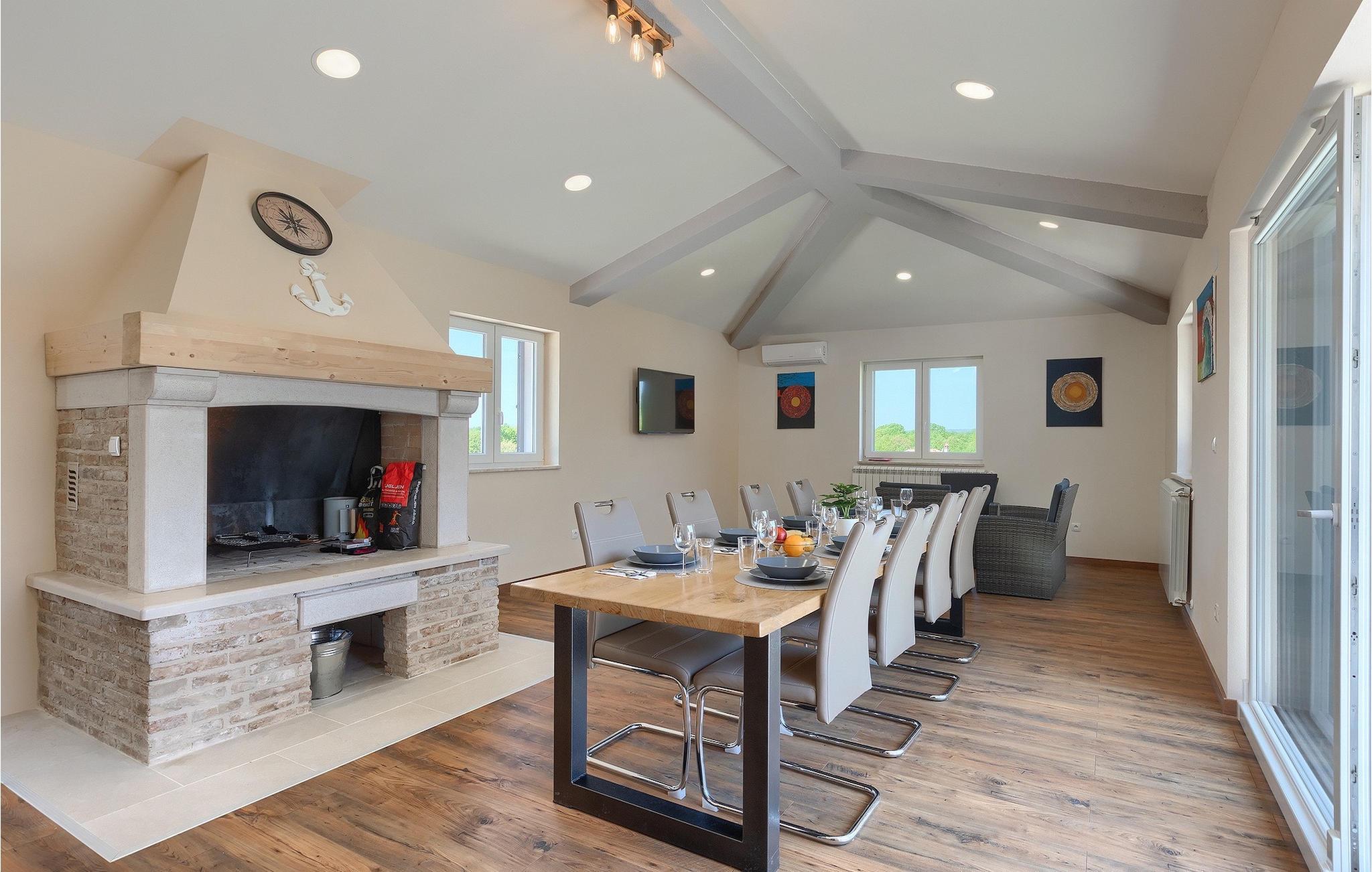 Villa Aurora Labin er beliggende i en rolig beliggenhed kun en kort køretur fra kystbyen Rabac. Denne smukke villa er omgivet af en stor have, som byder på et bordtennisbord samt en indbydende pool. Forfrisk dig selv med en dukkert i poolen eller slap af på de omkringliggende liggestole. Også til din rådighed er et separat rum med grill, spiseplads og fuldt udstyret køkken til at samles med dine kære og tilbringe uforglemmelige aftener. Benyt lejligheden til at tilberede lækre måltider ved grillen. Værelset har direkte adgang til poolområdet. Med sine 4 soveværelser kan den rumme i alt 10 personer, hvilket gør den ideel til en familieferie. Boligarealet er fordelt på to etager. På første sal er der et fuldt udstyret køkken, som er forbundet med stue og spisestue. Fra opholdsområdet er der direkte adgang til den overdækkede terrasse - det perfekte sted at få din morgenkaffe, mens du nyder udsigten over poolen. Her er også placeret to soveværelser. På anden sal er der yderligere to hyggelige soveværelser. Alle værelser har eget badeværelse, tv og aircondition. Bestil nu Villa Aurora Labin og tilbring en afslappende ferie, du fortjener!Villa Aurora Labin er beliggende i en rolig beliggenhed tæt på de små, men charmerende byer Labin og Rabac. Rabac er en lille fiskerby og en af de mest populære destinationer i Istrien. Stedet byder på mange smukke stenstrande med krystalklart hav. Udbuddet af udendørs sportsaktiviteter og vandsport er bredt. Gå langs strandpromenaden og smag istriske specialiteter i en af de mange restauranter. Labin er en lille bakkeby i den østlige del af Istrien. Denne charmerende middelalderby er kendt som en kunstnerby og byder på mange kunstgallerier langs de gamle stengader. Fra den gamle bydel i Labin kan du se Rabac og nyde havudsigten over Kvarnerbugten.